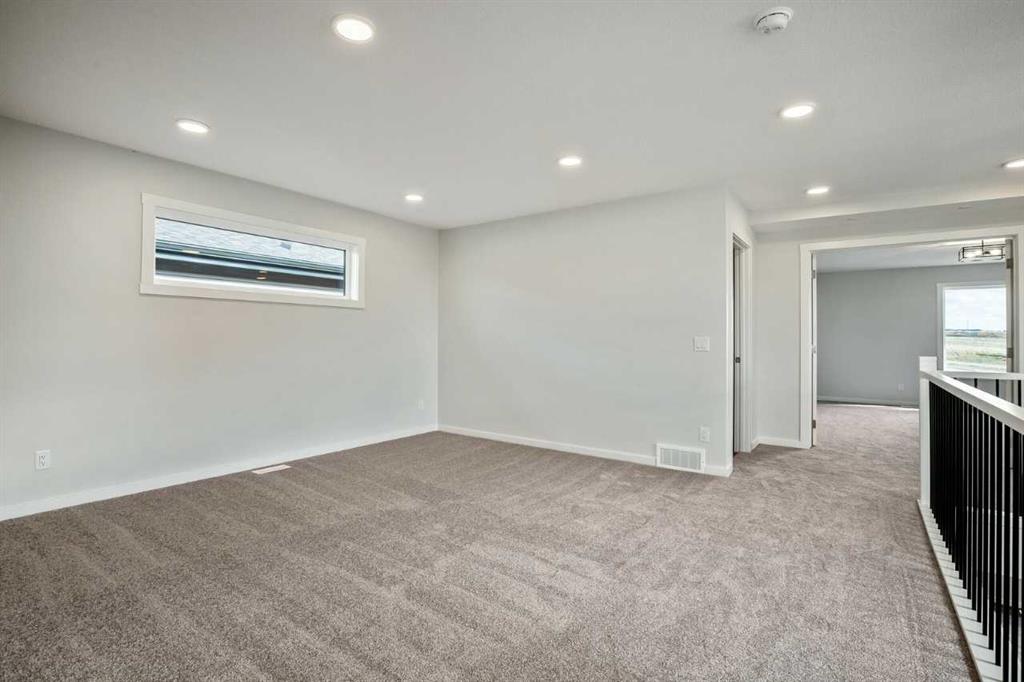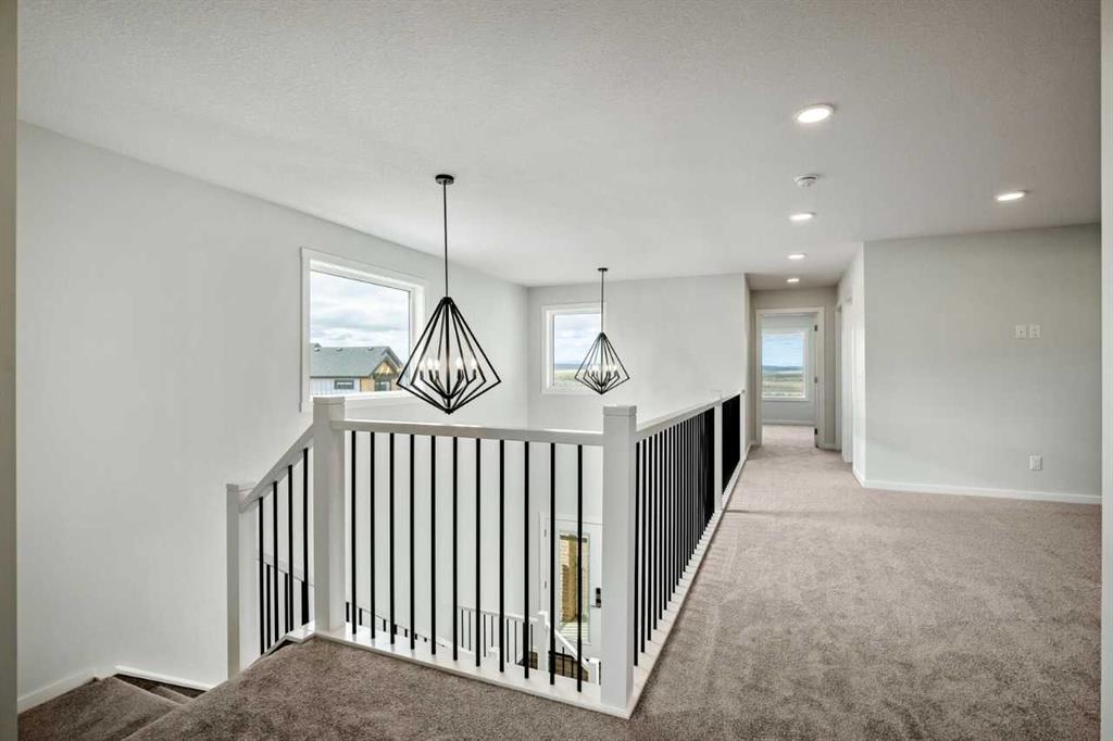 This Remi Model by Bedrock homes is situated on a beautiful corner lot with Mountain views! This model features a welcoming front foyer with open to above, a central flex room on the main floor, and a walk-through mudroom and pantry leading straight to the designer kitchen. The kitchen features coffered ceilings for an elegant feeling with a large island that opens up to the dining area and great room, great for a gathering space! The open to above staircase will lead you upstairs to find two secondary bedrooms with a full bathroom at the front of the home, a central bonus room, laundry, and a large primary bedroom. Last but not least primary bedroom features a spacious four-piece ensuite with a water closet, dual vanities, and a soaker tub, and conveniently leads straight to the large walk-in closet. Photos are representative.