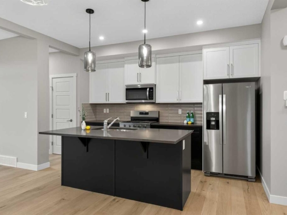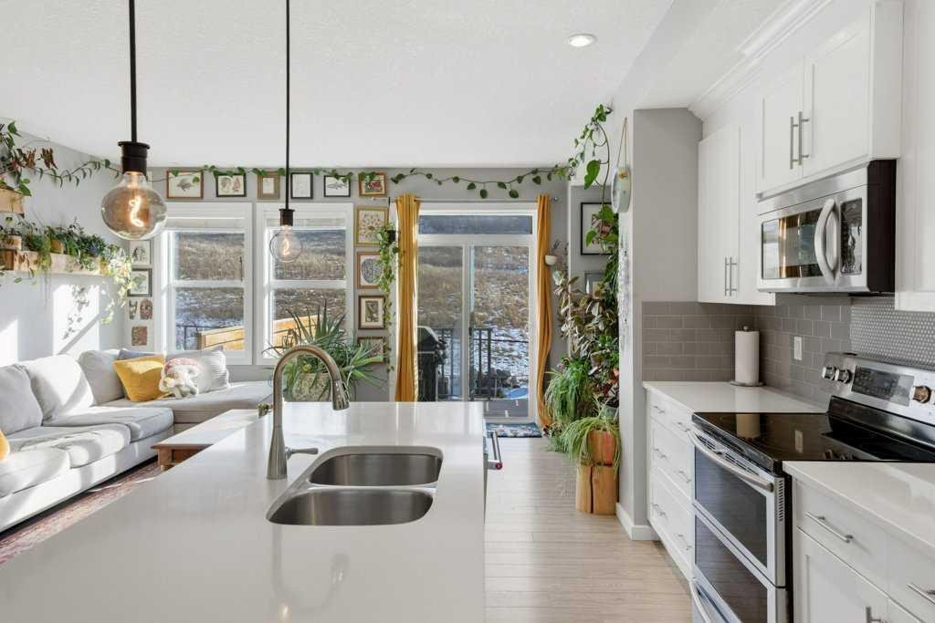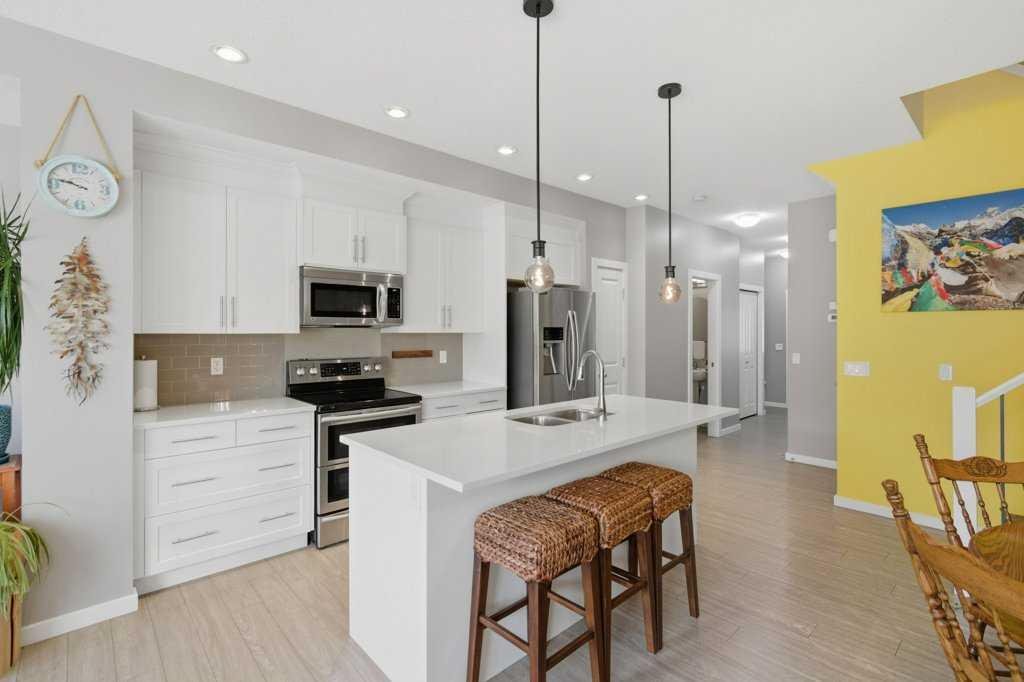 Introducing a stunning 2-storey townhome in the highly coveted community of Heritage Hills. This home exemplifies modern sophistication, convenience, thoughtful design, and a superb location, making it an extraordinary opportunity for discerning homeowners. Step inside and experience the elegance of this open-concept floor plan, featuring soaring 9-foot ceilings on the main level, complemented by luxury vinyl plank floors. The upgraded chef’s kitchen boasts premium stainless-steel appliances, quartz countertops, and striking cabinets, creating an inviting space for culinary creativity. The spacious family room seamlessly opens to the back yard which backs directly onto a green space, perfect for relaxation and entertaining. These sellers tell endless stories about all the mule deer that visit on a consistent basis – what an incredible location. On the upper level, you will find two children’s rooms, the main four piece bathroom, the upper laundry and the upper loft which is an absolutely perfect homework station for the kids. The oversized primary suite is nothing short of a retreat, offering a walk-in closet and a fully equipped ensuite featuring quartz counters and a huge shower for ultimate comfort. The unfinished basement could be easily developed and is ready to go with the large egress window and roughed in plumbing. This home also includes a fully drywalled single detached garage adding practicality and value. The front and back yards are designed for low-maintenance living with gorgeous landscaping out front and an entertainers dream deck off the back. Heritage Hills is renowned for its accessibility and vibrant community life. Residents enjoy a pathway system that not only surrounds this cul-de-sac but also weaves through Heritage Hills. This neighborhood offers everything you need within reach, including shopping, education, recreation and being on the west side you are way ahead of the traffic when headed to the mountains for a family getaway. Don’t miss the chance to make this spectacular home your own. Schedule your viewing today and discover the perfect blend of an Unbeatable Location, Contemporary Design and Move in Ready Convenience.