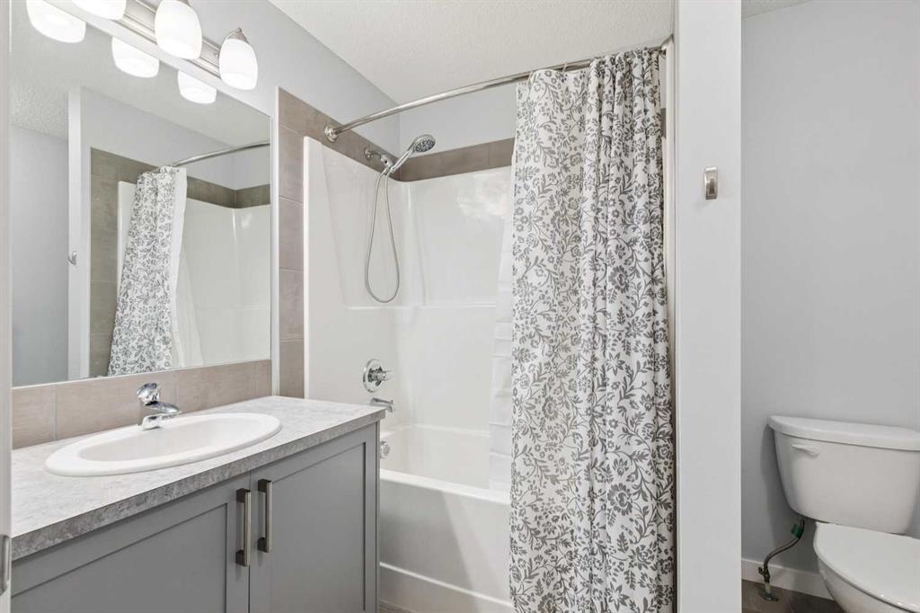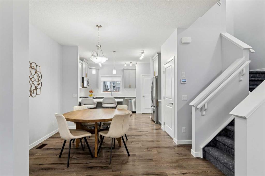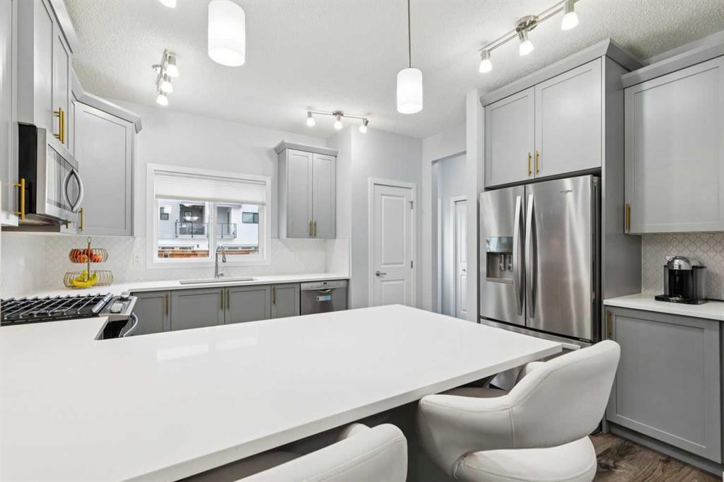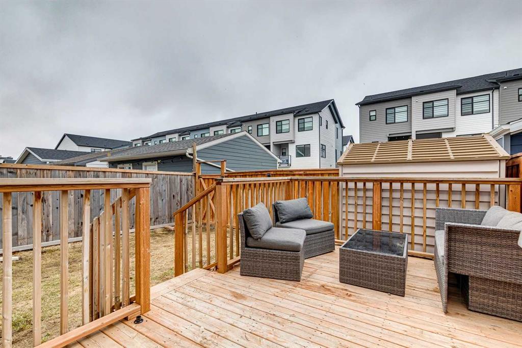 This unique two-and-a-half storey home in the heart of Mahogany offers the perfect blend of space, function, and style. A large, welcoming front porch sets the tone, leading into a spacious foyer with a practical pony wall that keeps everyday clutter tucked away from the main living space. The living room is warm and inviting with a gas fireplace, large windows that fill the home with natural light, and tasteful floating shelves that add character. The open-concept layout continues into a generous dining area, ideal for family meals or entertaining, and flows seamlessly into a bright kitchen featuring a large U-shaped counter, full-size appliances, pantry storage, and modern cabinetry accented with stylish gold details. Just around the corner, a convenient half bath and access to the fully fenced backyard make daily living easy, while the large deck and rear parking pad for two vehicles add even more functionality. Upstairs, the first upper level offers three bedrooms, including a primary retreat with a walk-in closet and private ensuite, while the other two bedrooms share a 4pc guest bath. Laundry on this floor also adds utmost convenience for families. The top floor creates a standout private space with an additional bedroom, full bathroom, and a versatile den—perfect for a playroom, home office, or quiet retreat. Recent upgrades, including new EVP flooring on the second and third floors (2025) and new carpet on the stairs (2025), bring a fresh, modern feel throughout. The unfinished basement is ready for your future vision. Living in Mahogany means access to one of Calgary’s most sought-after lake communities, known for its beautiful pathways, vibrant amenities, and year-round recreation. Residents enjoy exclusive lake access, nearby schools, shopping, dining, and an active, welcoming neighbourhood atmosphere that makes it easy to feel at home.