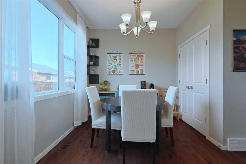 Tucked away in this quiet cul-de-sac across from a ravine & stormwater pond is this wonderful home in the popular family community of Nolan Hill. Built by Homes By Avi, this fully finished two storey enjoys hardwood & vinyl plank floors, total of 4 bedrooms & 3.5 bathrooms, maple kitchen with granite counters & low-maintenance West backyard…plus a new roof & central air to keep you cool on those hot summer days & nights! Complemented by 9ft ceilings, you’ll love the open concept flow of the main floor with its spacious living room with built-in cabinets & shelving, West-facing dining room with large pantry & sleek kitchen with rich maple cabinets, granite countertops & KitchenAid/Whirlpool stainless steel appliances. Upstairs there are 3 lovely bedrooms & 2 full baths…which includes the primary bedroom with views of the ravine, walk-in closet & ensuite with shower. Between the bedrooms is the family bathroom with barn door & tile floors. The lower level – with vinyl plank floors, is finished with a 4th bedroom, bathroom with walk-in shower, large rec room area & laundry with stacking Whirlpool Duet washer & dryer. The backyard is fully fenced & landscaped, & features both a terrific deck & patio…the perfect space for outdoor entertaining, for the kids to play in or for just relaxing & enjoying the fresh open air. Rear parking pad for 2 & loads of street parking. In addition to the new roof in 2025, the central air is new in 2022/2023 & new siding (West side) in 2025. A truly dynamite home ready & waiting for a new family to call it their own, only minutes to area shopping (Sage Hill Quarter, Beacon Hill & Sage Hill Crossing), walking distance to playgrounds & quick easy access to Shaganappi/Sarcee/Stoney Trails to take you to the airport, Cross Iron Mills, downtown & beyond!
