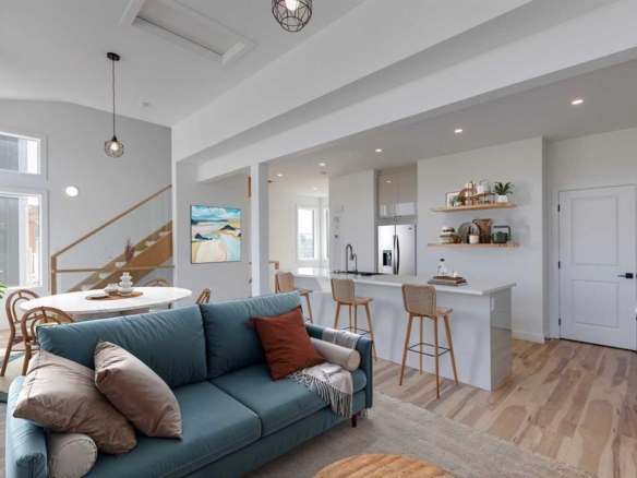 This exceptional, one-of-a-kind property offers the best of Springbank living — privacy, tranquillity, and breathtaking Rocky Mountain views. Set on a picturesque 2.17-acre lot in the heart of Pinnacle Ridge, this walkout bungalow sits high on the ridge, surrounded by beautifully landscaped grounds that provide seclusion from the street and neighbours. Tucked away from main roads, the property features its own private ravine, approximately one acre of mature trees and natural landscape, offering beauty and privacy while minimizing yard maintenance. A circular driveway flanked by mature trees sets the tone from the moment you arrive — this is truly something special. Inside, you’re greeted by stunning mountain vistas and an open layout. The beautifully renovated kitchen features a large island, granite countertops, and high-end appliances, including a Sub-Zero refrigerator, wine fridge, microwave, and 48” Wolf gas range. It opens to a bright dining space and sitting area with access to the large main deck (23′ x 22′). The spacious living room, complete with a fireplace, perfectly frames the magnificent mountain backdrop. The main-floor primary suite offers a luxurious six-piece ensuite and a generous walk-in closet. The main level also includes a home office, two powder rooms, a walk-in pantry, and a mudroom that connects to an oversized four-car garage. The 54′ x 26′ garage (1,279 sq. ft.) is insulated, drywalled, painted, and finished with epoxy flooring, with half the space offering a 12’3” ceiling that is ideal for large trucks or lifts. The walkout lower level features a large recreation room, a wet bar that seats up to ten, a dedicated theatre room, three additional bedrooms, and two full baths. Cherry hardwood and tile flooring flow throughout the home, with wool carpet in the lower-level bedrooms for added comfort. The exterior showcases stucco and stone, complemented by a newer asphalt shingle roof (2020, 50-year warranty). An enclosed under-deck storage room is ideal for garden tools or a ride-on mower. This immaculate property has been meticulously maintained by its current owners, with recent mechanical upgrades including two new furnaces with humidifiers (2019) and two new air-conditioning units (2024). A truly remarkable estate combining privacy, panoramic views, and refined living in one of Springbank’s most sought-after locations.