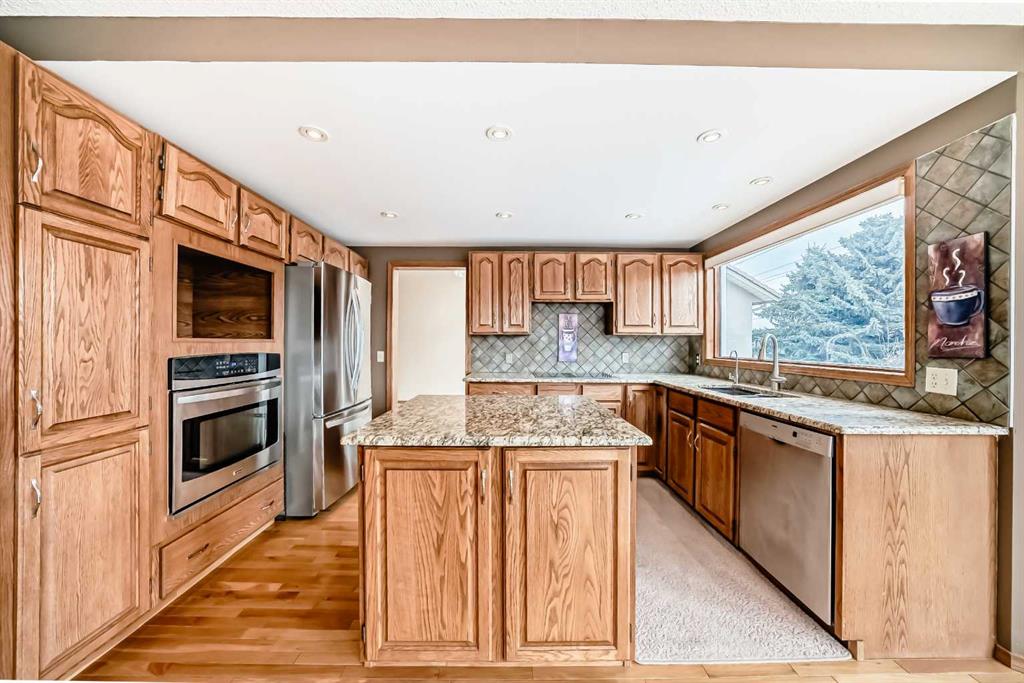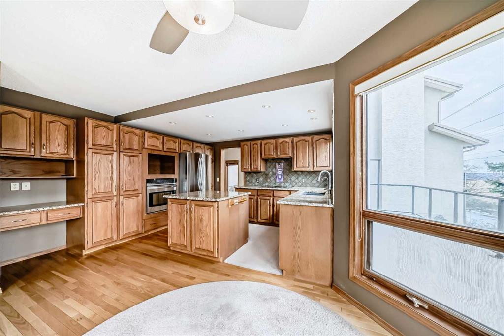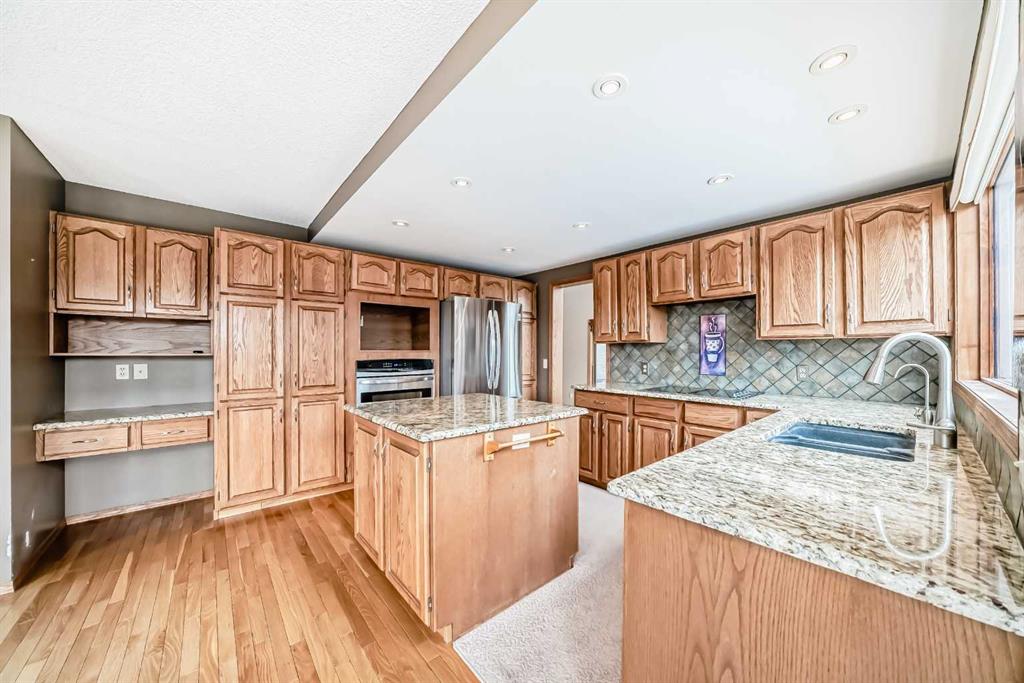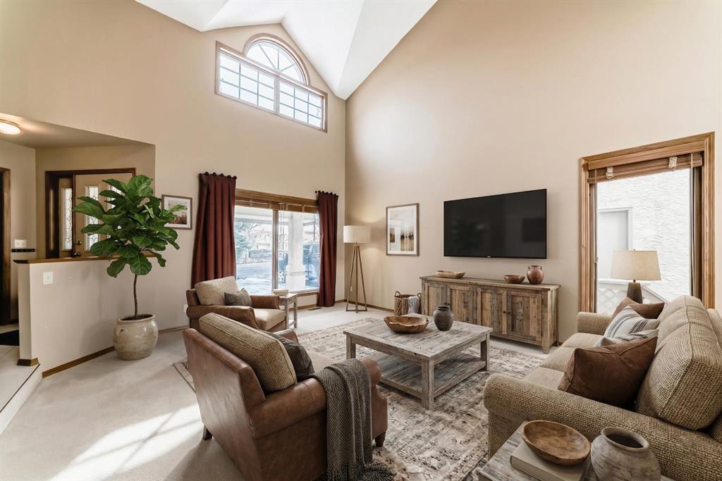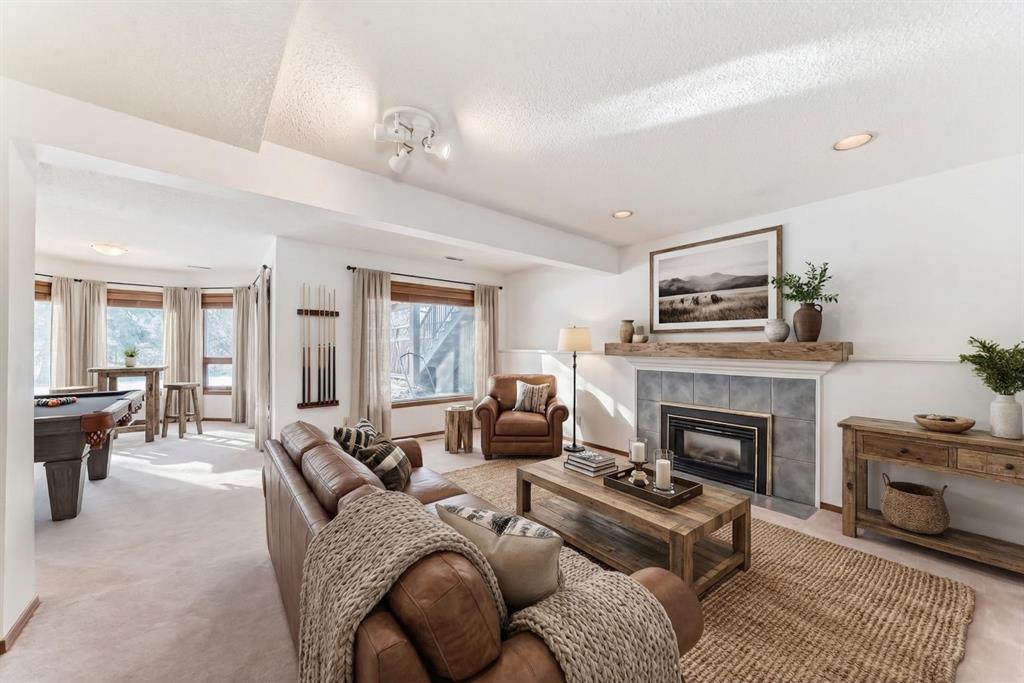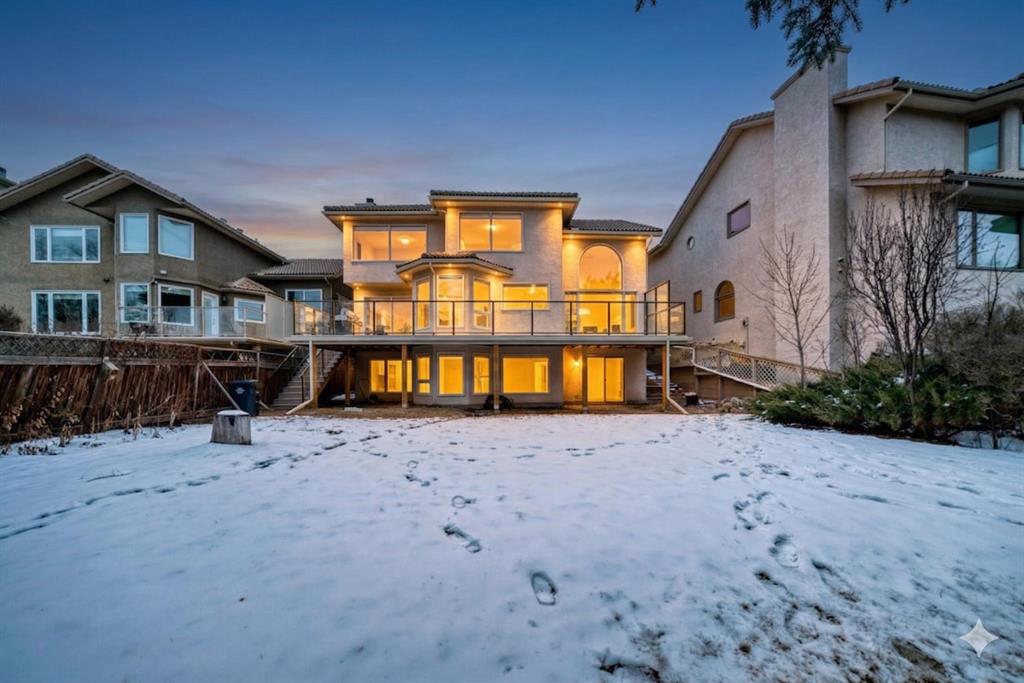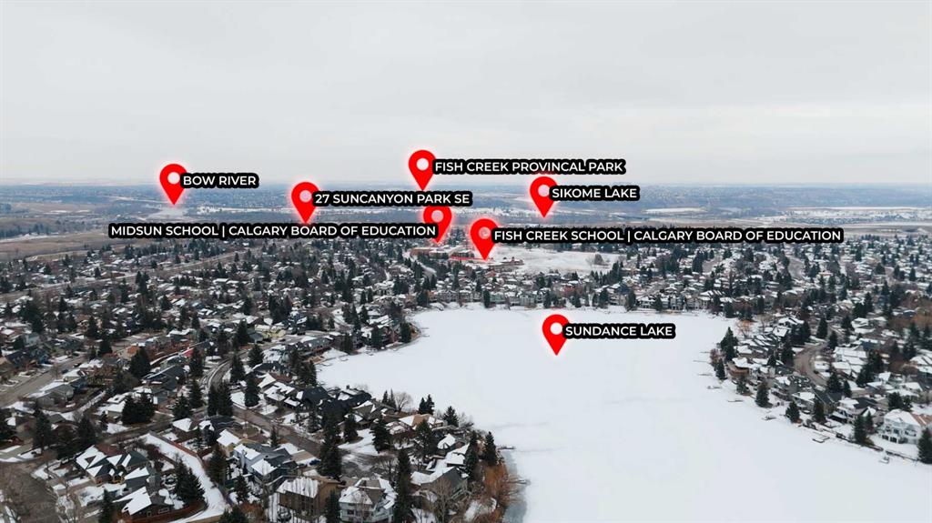 Incredible 4 bedroom 3 bathroom home with walk out basement and prime cul-de-sac location in prestigious estates area of Sundance – Welcome home to 27 Sun Canyon Park SW! The main level showcases a front living room with dramatic vaulted ceilings, formal dining room, & family room with custom built-ins and classic wood-burning fireplace – perfect for everyday living & entertaining! The bright & spacious kitchen features granite countertops, stainless steel appliances, and breakfast nook with direct access to the upper deck, flowing effortlessly into the casual dining area. Located just off the garage, the practical laundry and mudroom includes a dedicated dog door leading to a small, private fenced run. A two piece bathroom completes the main level. Upstairs, the primary suite is built for relaxation, offering a spacious walk-in closet with premium custom built-ins and 5-piece ensuite complete with dual vanities, jetted tub, & a glass-enclosed slate-tiled shower. Three additional bedrooms—one with a convenient 5-piece dual access ensuite—complete this level, providing plenty of space for a growing family. The fully developed walk-out basement provides versatile extra living space, featuring a family room with gas fireplace and a dedicated recreation area, all with easy access to the yard through the sliding doors. Step outside to find the expansive, sunny south-facing yard which offers total privacy with no neighbors behind. Enjoy the view from the newer upper composite deck with glass railings, or head out the back gate for direct access to the vast trail system of Fish Creek Provincial Park. Recent property upgrades include dual furnaces, dual hot water tanks, and a water softener all replaced in 2021, along with central air conditioning for year-round comfort. For those with multiple vehicles or hobbies, the oversized triple attached garage is a major standout. This prime location is just a short walk to schools, Sikome Lake, and the historic Bow Valley Ranche, while providing full Sundance Lake privileges for year round recreation. It’s more than a house; it’s a rare lifestyle opportunity in a premier lake community. Book your viewing today!