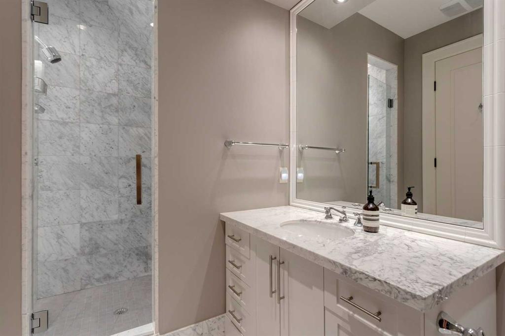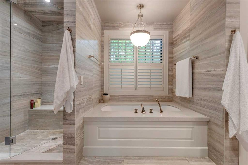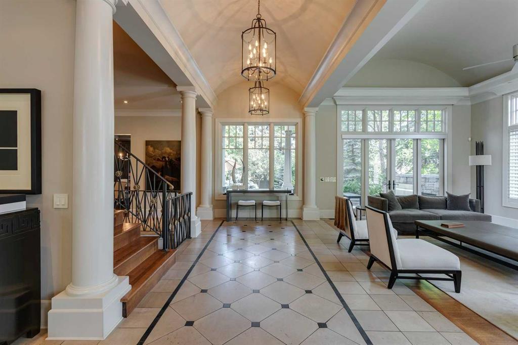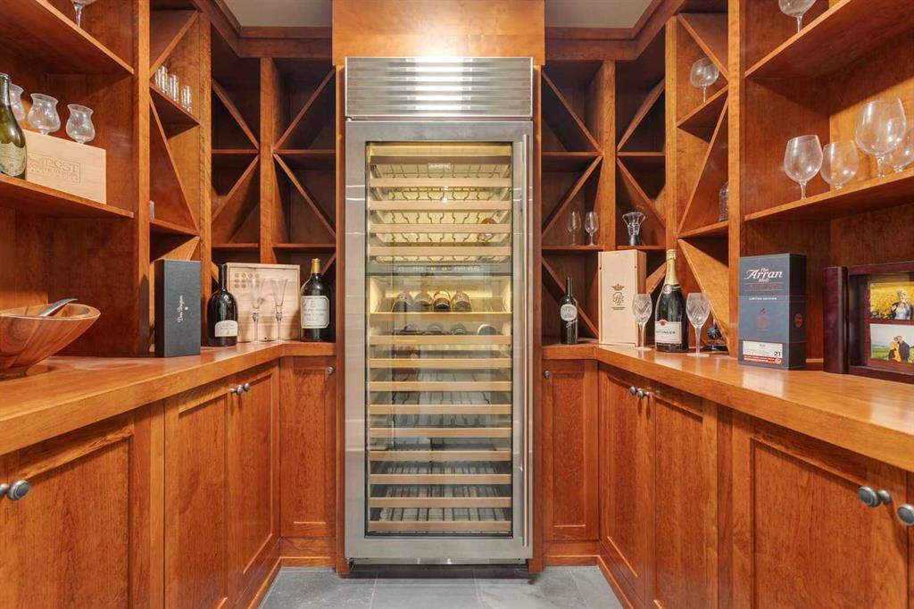 A residence of rare distinction in the prestigious community of Mount Royal. Designed by McDowell & Associates, this extraordinary estate embodies timeless architecture, enduring craftsmanship, & refined sophistication at every turn. Situated on an 80×161 ft (10,764 sq. ft.) professionally landscaped lot, this stately property offers over 5,822 sq. ft. of impeccably finished living space across three levels, featuring five bedrooms (note: basement bedroom has been converted to a large executive office) & six beautifully appointed bathrooms. From the moment you step through the grand foyer, the home reveals its pedigree – barrel vaulted ceilings through the foyer & living room, exquisite millwork, Loewen triple-pane windows & a harmonious blend of oak hardwood & honed limestone flooring. The formal living room is anchored by a gas fireplace with a marble surround, while the dining room exudes elegance beneath a statement chandelier. At the heart of the home lies the Empire-designed kitchen, outfitted with Sub-Zero, Wolf & Miele appliances, this culinary space offers inset cabinetry, granite counters, a large center island & countertop seating overlooking the private gardens. A mudroom leading from the garage & executive main-floor office with built-ins complete this level. The upper floor is a retreat of calm sophistication. The primary suite is an indulgent sanctuary, featuring a six-piece marble ensuite with steam shower, deep soaker tub, dual vanities & heated floors, alongside two custom dressing rooms. Three additional bedrooms, each with private marble ensuites, offer comfort & privacy for family & guests. The lower level continues the theme of understated luxury with a fifth bedroom (presently converted to an executive office with custom oak shelving & rolling ladder) & full spa bath with steam shower, a temperature-controlled wine room, private fitness studio (could be converted into a large family room). A spacious laundry along with ample storage provides functionality without compromise. The triple attached garage is as impeccably finished as the home itself – featuring epoxy flooring, built-in cabinetry, a slat wall organization system & hot/cold water lines for car washing or equipment care. Every element reflects the same meticulous attention to quality & design found throughout the residence. Outdoors, the professionally landscaped gardens form a private sanctuary of greenery & light, with limestone pathways, gas lanterns & multiple seating areas ideal for elegant entertaining with an intimate seating area in the garden surrounding a stone firepit. With in-floor heating, advanced mechanical systems & curated designer lighting throughout, this home offers enduring comfort & sophistication. Perfectly positioned within walking distance to The Glencoe Club, premier schools & the boutiques and restaurants of 17th Avenue & 4th Street SW, this distinguished Mount Royal residence represents the pinnacle of luxury living in Calgary’s most coveted neighbourhood.