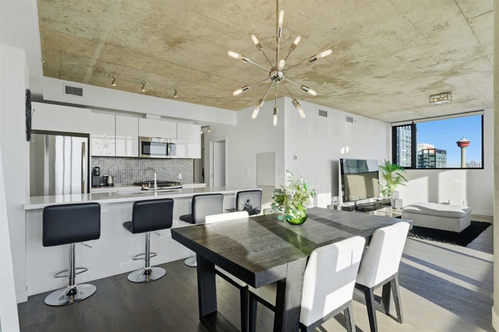 Welcome to elevated inner-city living in the heart of Calgary’s vibrant Beltline. This stunning 2-bedroom, 2-bathroom residence offers the perfect blend of breathtaking views, modern design, unbeatable urban convenience and over 1100 Sqft of interior living space.