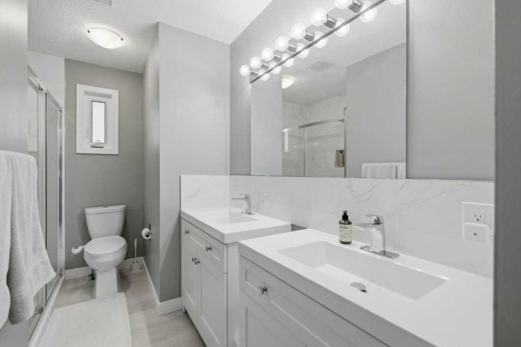 The rear door provides direct access to the basement stairwell, enhancing privacy and functionality. Downstairs, you’ll find a versatile lower level complete with a flexible recreation and family room, and an impressively large fourth bedroom with its own upgraded 4-piece ensuite bathroom. The large laundry/utility room offers an excellent space for all your laundry and storage needs.