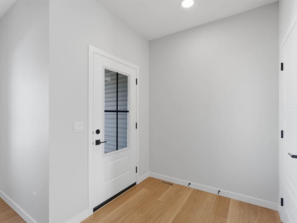 The “Ava” by Genesis Builders Group is a beautifully designed 2300 sq ft home offering 3 bedrooms, 2.5 bathrooms, a main-floor office, a triple parking pad with the opportunity to build a carriage suite garage (Subject to city approval). Step inside to an expansive main floor featuring an open-concept layout with a large living room with a striking focal-point fireplace, a generous dining area perfect for hosting family gatherings, and a well-appointed kitchen with ample cabinetry, sleek stainless steel appliances, and a spacious island that will please the home’s chef. A convenient mudroom keeps all your odds and ends organized, and a front flex space is the perfect place for a home office. Upstairs, you’ll find a spacious primary retreat with a walk-in closet and a private 5-piece ensuite with a soaker tub. Two well-sized additional bedrooms are perfect for the kids or guests, and a full bathroom and a convenient upper-floor laundry complete the upper level. The unfinished basement offers 9′ ceilings and is ready for your design ideas. Outside, the property features a triple garage pad, providing the opportunity to build a detached triple garage with a future carriage suite (subject to municipal/city approval). Located in the community of Bayside, residents enjoy scenic canal pathways, parks, playgrounds, and schools. This is a rare opportunity to own a spacious home with future carriage suite potential in one of Airdrie’s most desirable neighbourhoods. *RMS has been applied to blueprints provided by the builder. Taxes have not been assessed. Estimated completion date is September 2026.