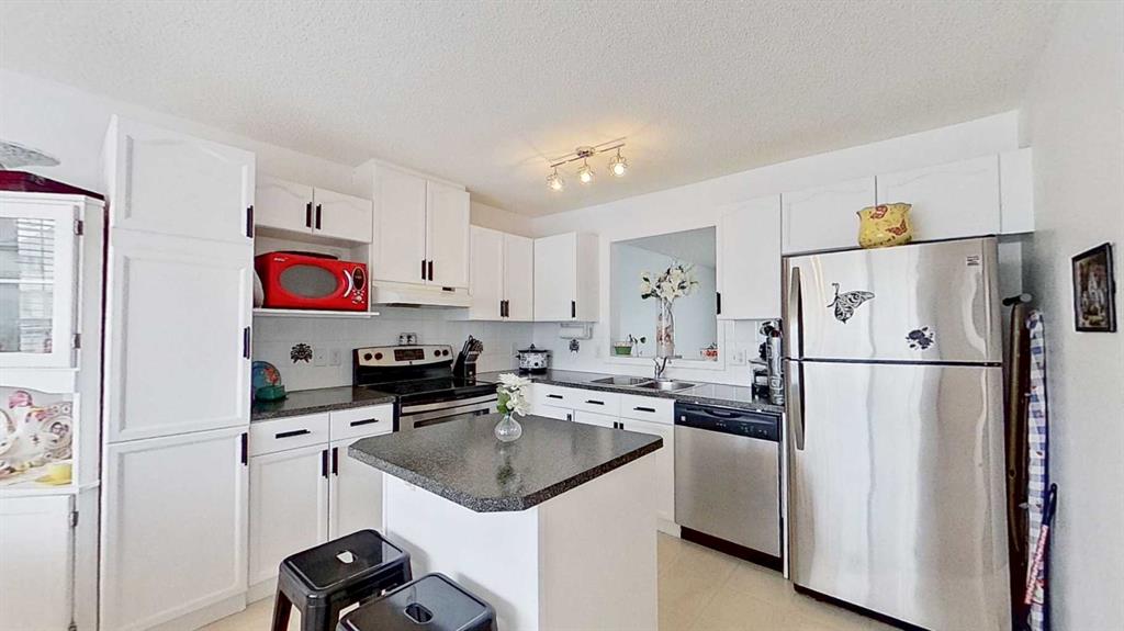 Spacious 4-level split townhouse offering a functional layout and modern updates throughout. This home features 3 bedrooms on the upper level along with a full bathroom, ideal for families. The main floor includes a bright, open kitchen with new countertops and a convenient 2-piece bathroom. Just a few steps down, the lower level boasts a large living room with impressive 10-ft ceilings and direct access to a private deck—perfect for relaxing or entertaining. The basement level, located off the front entrance, includes a laundry area with washer and dryer, a utility sink, and plenty of additional storage space. Recent upgrades include a new furnace, new appliances, and brand-new toilets, offering peace of mind and added value. The home also features an attached garage with direct interior access, providing both convenience and functionality. A well-designed home with multiple living levels, ideal for comfortable everyday living.