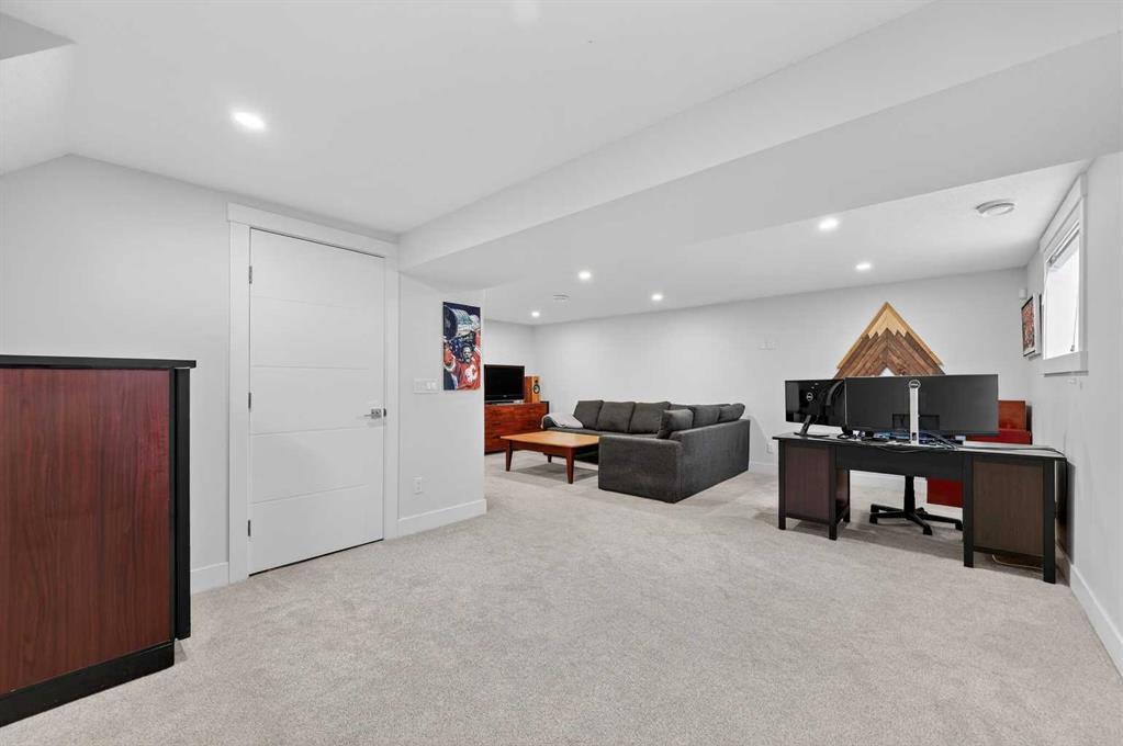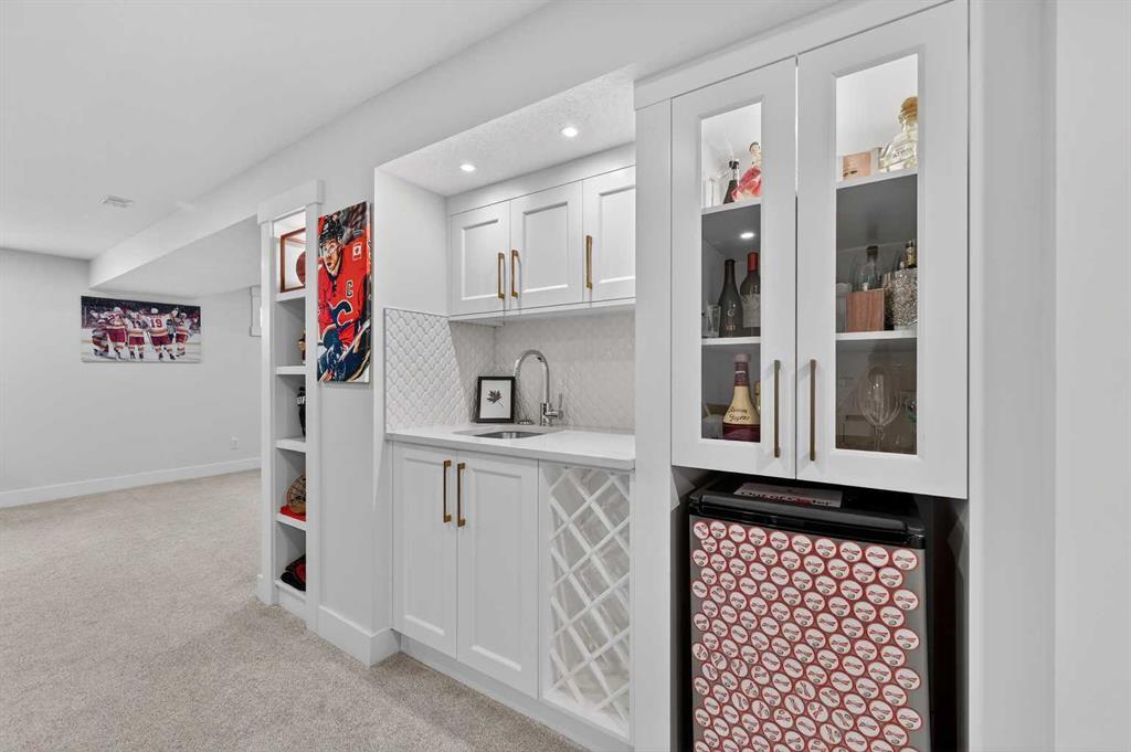 *** OPEN HOUSE Saturday, January 31, 2026 2pm – 4pm *** Tucked along a quiet, tree-lined street in the heart of Glendale, this beautifully renovated bungalow tells a story of thoughtful design, comfort, and effortless inner-city living,just minutes from Downtown, yet surrounded by one of Calgary’s most established and long-standing communities. From the moment you arrive, the modern farmhouse exterior, aggregate walkways and welcoming covered front porch set the tone. This is a home where neighbours stay, families grow, and downsizers rediscover how easy life can be in a walkable, park-filled inner-city neighbourhood. Inside, the home unfolds into bright, open living spaces framed by large triple-pane windows and finished with durable, scratch- and waterproof LVT flooring perfect for busy family life and everyday comfort. The heart of the home is a stunning, custom-designed kitchen, anchored by a statement island, feature walls and thoughtfully built-in storage, creating a space that feels equally suited for morning coffee, family dinners and entertaining friends. The main level offers two generous bedrooms, including an oversized and private primary retreat. Here, a feature wall, patio door leading to the backyard and a spa-inspired five-piece ensuite with heated floors and a steam shower create a peaceful escape at the end of the day. Downstairs, the story continues with a fully developed lower level designed for connection and flexibility. A spacious recreation room with rough-ins for a home theatre, a stylish wet bar complete with wine cooler and wine rack, two additional bedrooms, a full bathroom and abundant storage make this level ideal for growing families, guests or multi-generational living. Every chapter of this renovation was carefully considered, with major upgrades already complete, including a new roof, furnace, hot water tank, electrical and landscaping, along with countless additional improvements throughout. And then there is the backyard, your own quiet retreat, backing onto green space and located next to a park and within a playground zone. Mature trees, a large patio with gas BBQ hookup, and a double oversized detached garage create the perfect setting for summer evenings, family gatherings and relaxed weekends at home. In a community known for its long-term residents, easy access to Downtown and true inner-city convenience, this Glendale bungalow offers more than just a place to live; it offers a place to belong. Whether you are a young family putting down roots or looking to downsize without giving up space, style or location, this is a home where your next chapter can begin.