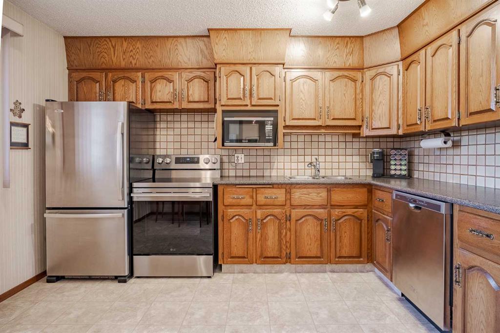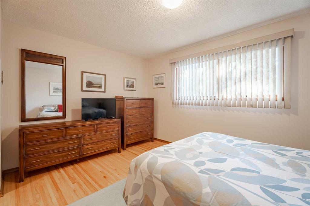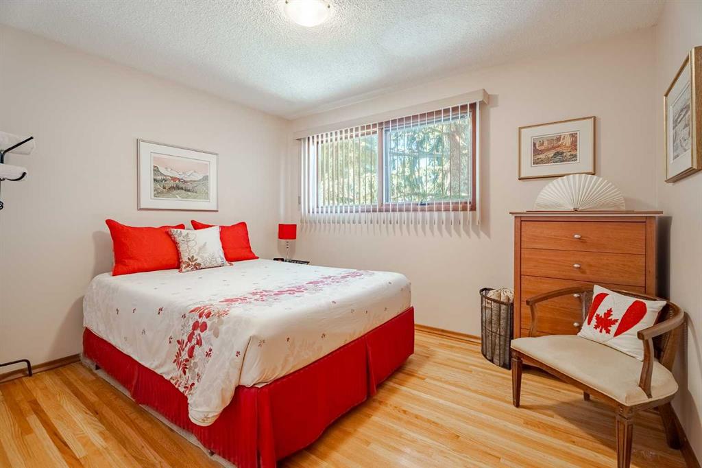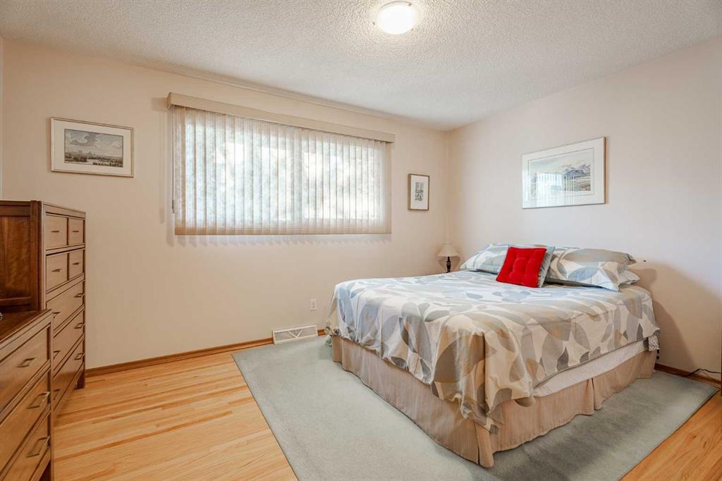 A custom-built hillside bungalow on a quiet, centrally located street in Charleswood Heights. This well-designed lovely house offers over 2500 sq ft of living space in 2 levels, with 5 bedrooms and 2.5 baths. The home’s reverse plan complements the southeast facing backyard with a walkout basement . It has an attractive brick/stucco exterior, large deck off the dining room and 2 wood burning fireplaces.The efficient floor plan provides large rooms while allowing for maximum use of overall space.Improvements in this well-maintained residence include an updated kitchen with oak cabinets,newer countertops and flooring, light fixtures and stainless-steel appliances. Additional recent upgrades include new stove, fridge , lower-level window coverings, washer/dryer, hot water tank and 5G cabling. Gleaming hardwood floors add character to the 3 upstairs bedrooms and extend under the carpeted living room and hallway. There is a 2-piece ensuite in the primary bedroom and a 4-piece main bath with expansive floating cabinetry for storage.The lower level is fully developed with a 4-piece bath, 2 bedrooms and entertainment area .A fireplace and wet bar, with fridge, enhance this open concept for social gathering. The laundry room also accommodates 2 furnaces, allowing for separate temperature control between levels. Perimeter in floor heating is a unique feature of the lower level. Some other bonus features to consider are the mature trees, detached double garage plus a large concrete pad for RV parking & the private brick patio, new garden shed and wire free views. The desirable neighborhood and proximity to amenities (schools, shopping, LRT, U of C, Nose Hill Park) make this property a must see!