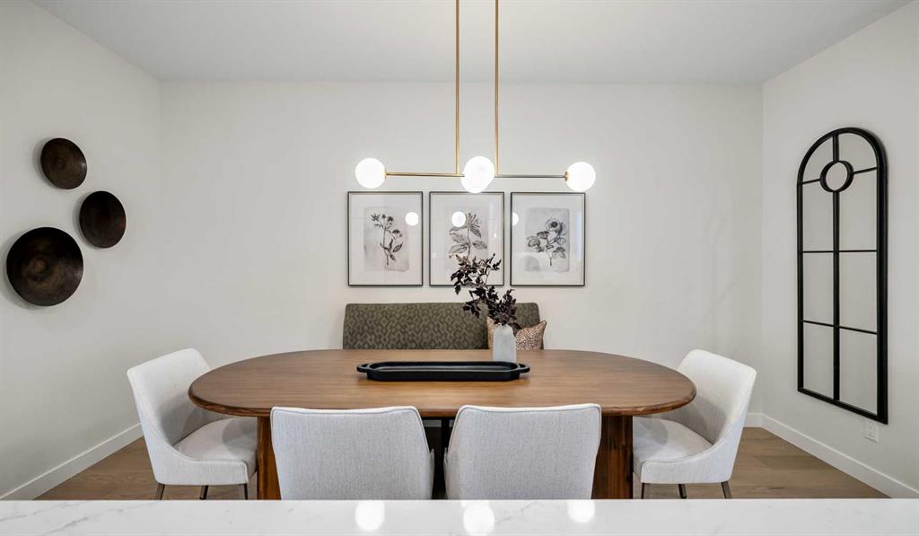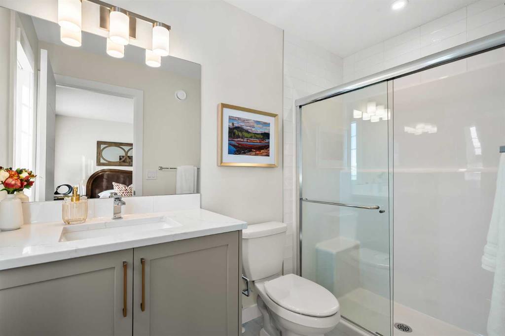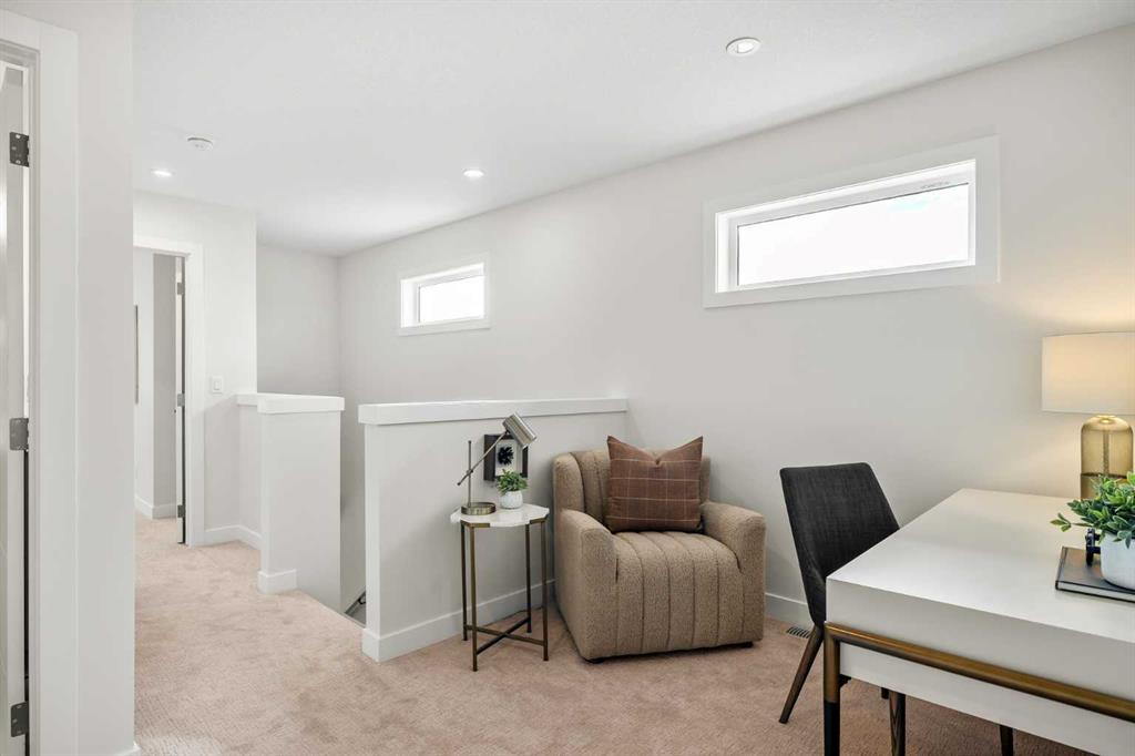 Welcome to the Sophie by Partners Homes in Keystone Creek, a brand new pre-construction duplex in NE Calgary offering a well designed open floor plan with 3 bedrooms, 2.5 bathrooms, and a side entrance. This home is thoughtfully designed to provide functional living, modern finishes, and everyday comfort in one of North Calgary’s growing communities. The main floor features 9 foot ceilings, knockdown ceiling texture, and a bright open concept layout centered around a spacious kitchen. Finished with full height cabinetry, quartz countertops, a tiled backsplash, and a large central island, the kitchen also includes a stainless steel appliance package and a chimney hood fan with built-in microwave. A gas line to the range adds flexibility for future upgrades. The dining and living areas flow seamlessly together, creating a comfortable space for both everyday living and entertaining. Upstairs, the primary bedroom offers a walk-in closet and a private ensuite featuring a tiled walk-in shower. Two additional bedrooms and a full bathroom complete the upper level, along with convenient upper floor laundry including washer and dryer. The basement features 9 foot ceilings and a side entrance, providing additional flexibility for future use. At the rear of the home, a 20’ x 21’ gravel parking pad with alley access offers off street parking and future garage potential. Front landscaping is included, allowing for a finished exterior once complete. Finished in a craftsman elevation, this home offers timeless curb appeal in Keystone Creek, a growing NE Calgary community with access to pathways, green spaces, and convenient routes to Stoney Trail, Deerfoot Trail, CrossIron Mills, and Calgary International Airport. A well designed pre-construction home offering a practical layout, upgraded features, and strong value in North Calgary.