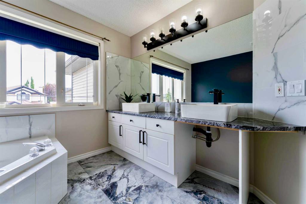 Welcome to 276 Fairways Bay NW, Airdrie!! This recently renovated 2-storey backs onto the GOLF COURSE, offering stunning views and a peaceful lifestyle, featuring a bright open layout with a CHEF’S KITCHEN, MAIN FLOOR OFFICE, and spacious living areas. Upstairs features a BONUS ROOM and three bedrooms, including a luxurious primary suite. The NEWLY FINISHED BASEMENT adds 2 bedrooms, a BAR, and a full bath. Enjoy an ATTACHED DOUBLE GARAGE, nearby schools, parks, and shopping — all in the sought-after Fairways community!