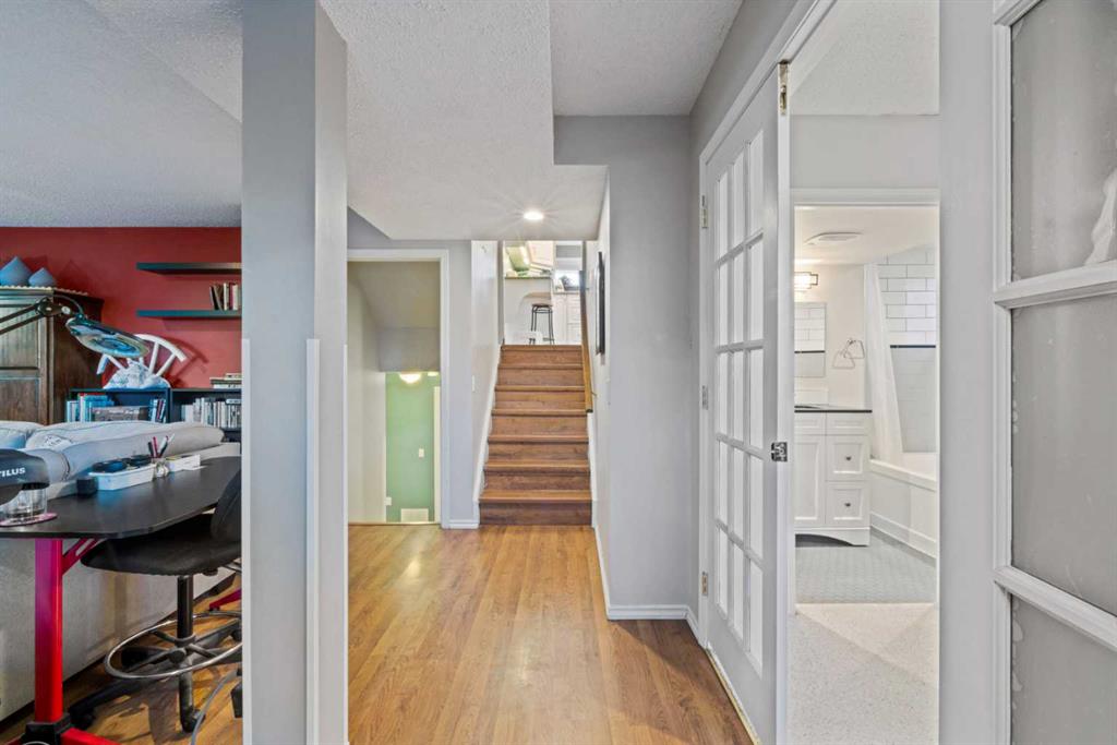Welcome to this spacious and updated 4-bedroom, 4-bathroom four-level split nestled in the established community of MacEwan — a home that offers exceptional versatility with many upgrades over the last 20 years.. Step inside to a bright and inviting main floor featuring durable laminate flooring throughout and a thoughtfully designed open-concept layout. The inviting living room flows seamlessly into the dining area and well-appointed kitchen, creating an ideal space for both everyday living and entertaining. The kitchen offers ample counter space, abundant cabinetry, and excellent functionality for busy households. The upper level is designed with comfort in mind, featuring three well-sized bedrooms including the primary retreat complete with its own private updated 3-piece ensuite. Two additional bedrooms share a spacious 4-piece bathroom, making this level perfect for families. On the lower level walk up you will find a warm and welcoming family room centered around a charming wood-burning fireplace — the perfect place to unwind on cooler evenings. This level also features a den (could be made into a bedroom) with a refreshed 4-piece ensuite highlighted by a deep soaker tub, offering flexibility for guests and extended family. The fully developed basement expands the home’s functionality even further with a fourth bedroom with a private 3-piece ensuite. A dedicated laundry room and generous storage areas complete this level, ensuring plenty of space to stay organized. Outside, enjoy a sunny southeast-facing backyard designed for relaxation and outdoor gatherings. The two-level patio with attractive patio stones provides multiple seating areas and easy access to the oversized single detached garage. Located in the desirable northwest community of MacEwan, this home offers outstanding access to amenities and recreation. You’re just minutes from the natural beauty of Nose Hill Park, providing endless walking and biking paths, while convenient routes via Shaganappi Trail and Country Hills Boulevard make commuting and daily errands effortless. Nearby schools, shopping, parks, and services further enhance the appeal of this exceptional location. Offering space, updates, and an unbeatable setting, this is a fantastic opportunity to own a versatile family home in one of Calgary’s most established communities