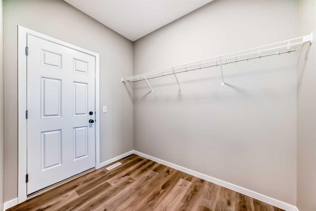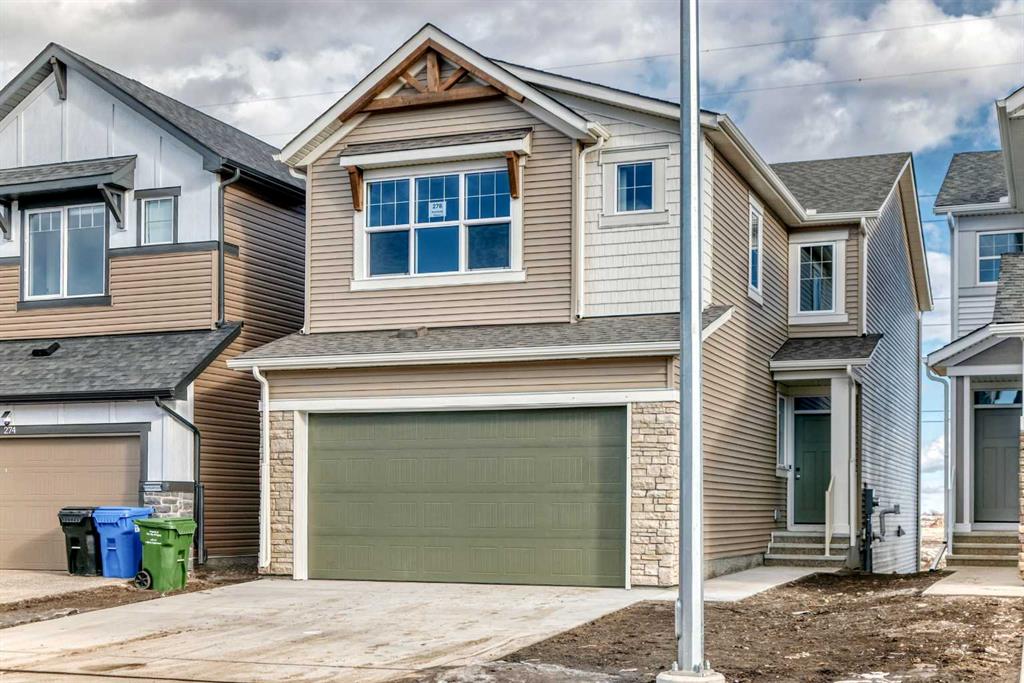 Welcome to the “Grada” by Hopewell Residential—where contemporary design meets family-friendly functionality in the vibrant community of Hotchkiss. This beautifully crafted home spans 2,112 sq. ft. and offers 3 spacious bedrooms with a layout designed to make everyday life feel easier, brighter, and more connected. Step inside and you’ll immediately feel how the main floor is built for real life. Just off the entry, a versatile flex space with a glass insert door is perfect for a home office, playroom, homework zone, or quiet retreat. The heart of the home opens up into an inviting dining area and lifestyle room that flow effortlessly for both daily routines and entertaining. The soaring open-to-above living room adds a wow factor with an airy, light-filled feel, and large windows keep the space feeling fresh from morning to evening. At the center of it all, the kitchen is designed to impress and perform. You’ll love the upgraded layout with a stylish chimney-style hood fan, built-in microwave, extra storage drawers, elegant quartz countertops, and a large island that anchors the space for casual meals, coffee catch-ups, or hosting friends. The two-tone cabinetry is a standout feature, with wood grain upper cabinets extended to the bulkhead and crisp white lower cabinets, paired with a classic subway tile backsplash for a clean, timeless look. Thoughtful upgrades continue with black interior hardware and knockdown ceiling textures, adding a modern edge throughout. The entertainment potential extends outdoors with a walkout lot and a generous 15’ x 10’ deck—perfect for summer dinners, morning coffee, or relaxing at the end of the day. An exterior gas line is already in place for a future BBQ, making it easy to enjoy Calgary’s long warm evenings. Upstairs, you’ll find three spacious bedrooms, including a luxurious primary suite featuring a step-in shower—your own private retreat. The additional bedrooms are the perfect size for the growing family and served by a beautiful full bathroom, while the upper-floor laundry room is perfectly placed to keep day-to-day life running smoothly. Downstairs, the walkout basement is ready for your future plans with a 9-foot foundation, offering the opportunity for added living space or a potential mortgage-helper suite (a secondary suite would be subject to approval and permitting by the city/municipality). Located in southeast Calgary, Hotchkiss offers stunning mountain views, 51 acres of park space, walking pathways, and a beautiful central wetland. Designed with families in mind, this community delivers the green space, connectivity, and lifestyle that make it easy to settle in and feel at home. Discover the next chapter of your life with The Grada.