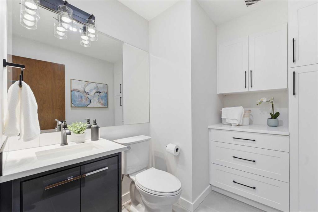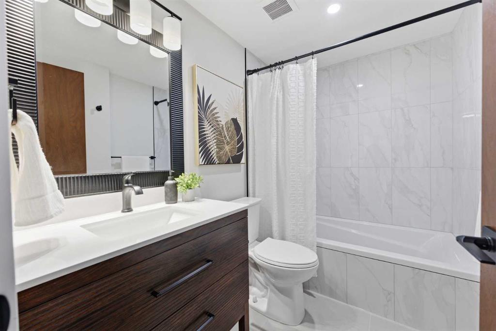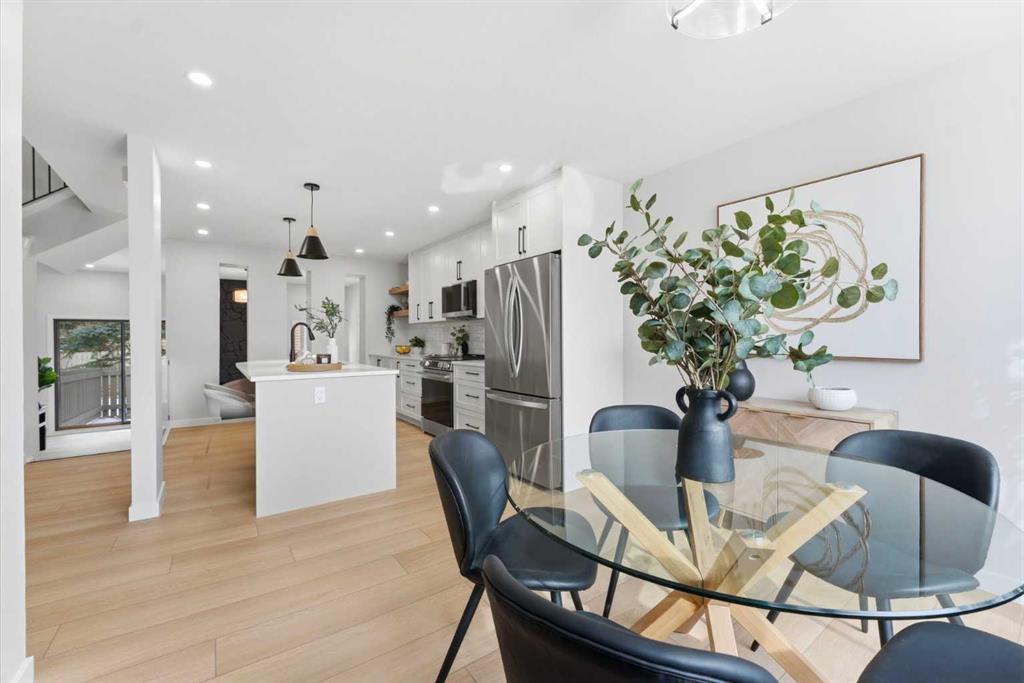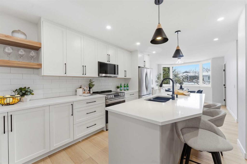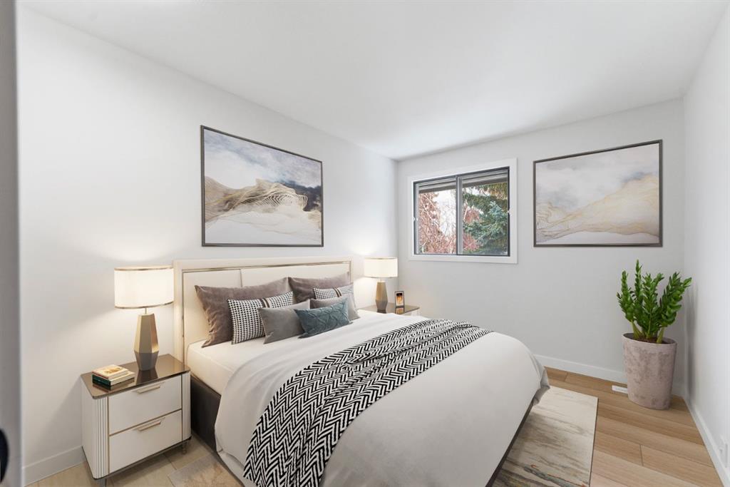 Infill luxury in a modern townhouse! Fully renovated and reimagined, this home stands out the moment you walk in. The main living space is elevated with vaulted ceilings, oversized windows, and a bold floor-to-ceiling stone fireplace that anchors the entire room. The expansive kitchen is bright, open and completely different from every other unit in this complex. It also has a full size island, a perfect gathering spot for guests & entertaining. The kitchen design features a modern look with two-toned organic colouring cabinetry, quartz countertops, new stainless steel appliances, tons of storage, and coffee nook with floating accent shelves. Flowing effortlessly into the dining area, it’s gives enough space for a 6-8 person table and is surrounded by windows and natural light. Upstairs offers 3 well-sized bedrooms, including a spacious master bedroom and large walk in closet with custom built-ins. The laundry has also been moved from the basement to the second level for added convenience. The bathrooms have also been updated with modern vanities, tiled bathtub, and custom cabinetry. The basement provides extra space for you to use your imagination with, workout space, rec room, lots of potential! The backyard is fully fenced, private, and usable. It’s the kind of space you’ll actually use: morning coffee, letting the dog out, and enjoying the summer evenings. An attached garage, quiet complex, and a location that puts you close to everything without feeling busy. Fully renovated, luxury townhouse living in this desirable lake community—this one hits different!