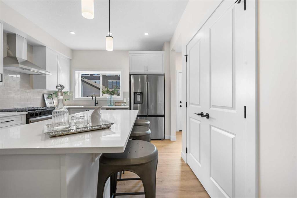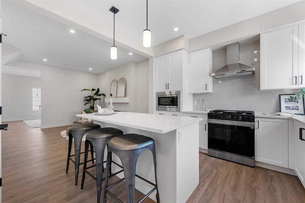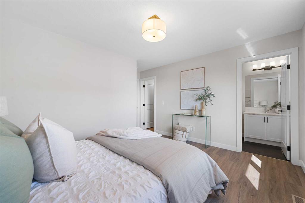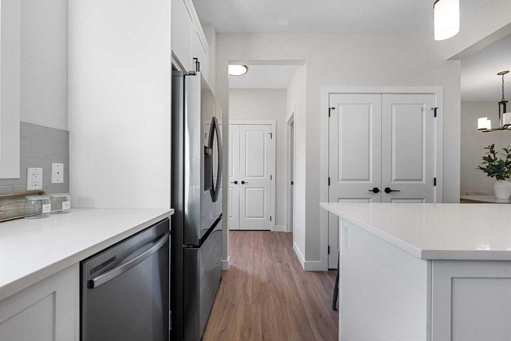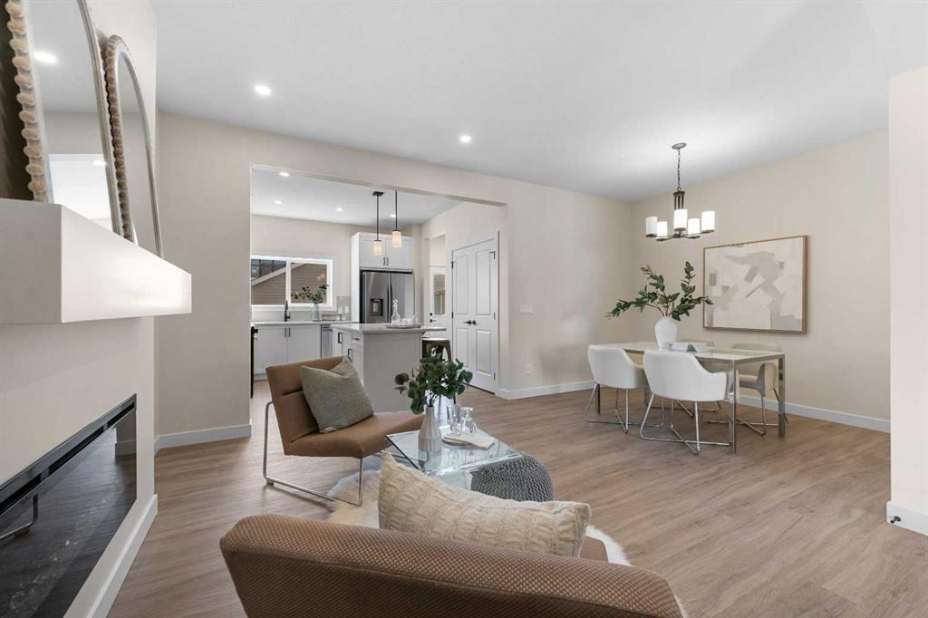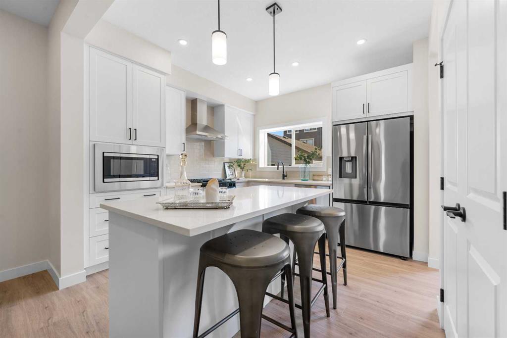 ** Brand New, Move in Ready Home built by Genesis Homes with a LEGAL 2 Bedroom Basement Suite ** The Amber | Stunning Open Floor Plan | Top of the Line Finishes | Sparkling Kitchen | Quartz Countertops | Stainless Steel Appliances | Kitchen Island | Barstool Seating | Pantry | 50″ Electric Fireplace | Wide Plank LVP Flooring | Recessed Lighting | Expansive Living Space | Main Level Flex Room | Upper Level Bonus Room | Upper Level Laundry | Totaling 5 Bedrooms & 3.5 Bathrooms | Legal 2 Bedroom Basement Suite | Separate Entry | Separate Laundry | 9Ft Basement Ceilings | Great Backyard | Double Detached Garage | Alley Access | Steps Away from the Future Park. Welcome to your brand new 2-storey family home boasting 1,610 SqFt throughout the main and upper levels with an additional 747SqFt legal 2 bedroom basement suite. Step inside to a foyer with open to below ceiling and views into the open floor plan main level. This home was designed with style and comfort at the forefront; wide plank LVP flooring, large windows, recessed lighting, high ceilings and more! The front flex room is ready for anyone with a work-from-home lifestyle or can easily be used as a day seating entertainment room. The great room is both spacious and comfortable plus has a stylish flare of a 50″ electric fireplace. Next are the kitchen, family and dining rooms. The kitchen is outfitted with a sparkling quartz countertop, stainless steel appliances, ample cabinet space and a centre island with barstool seating. The dedicated dining room is ready for you to enjoy all your family meals. At the rear of the home is a mud room with closet storage and a door to your back yard and rear double detached garage. The main level is complete with a 2pc bath. Upstairs you’ll find 3 sizeable bedrooms all with wide plank LVP flooring. The primary bedroom has its very own 3pc ensuite bath and a walk-in closet. Bedrooms 2 & 3 share the 4pc bath with a tub/shower combo. The upper level hall laundry is every home owner’s dream as its located steps away from all bedrooms! Downstairs, the LEGAL 2 bedroom basement suite has a separate entry and its own laundry facility making it a completely independent level to this home. This is great as a mortgage helper or for extended family. The basement has 2 sizeable bedrooms, each with great closet space. The open floor plan kitchen and rec room provide flexibility for living and dining. The kitchen is outfitted with quartz countertops, stainless steel appliances and full height cabinets. The 4pc bath on this level has a tub/shower combo and single vanity. Outside is a great backyard and rear double detached garage with alley access. Hurry and book a showing at this gorgeous brand new Genesis home today!