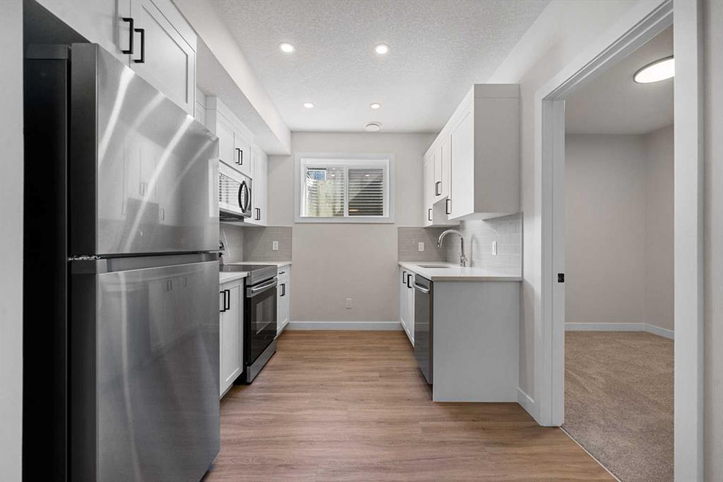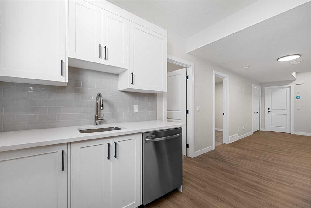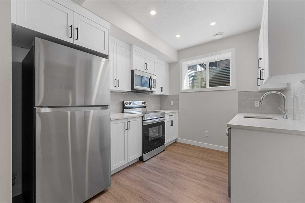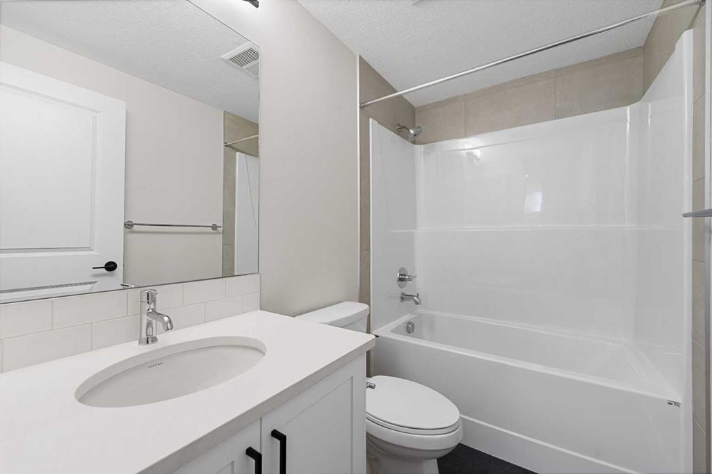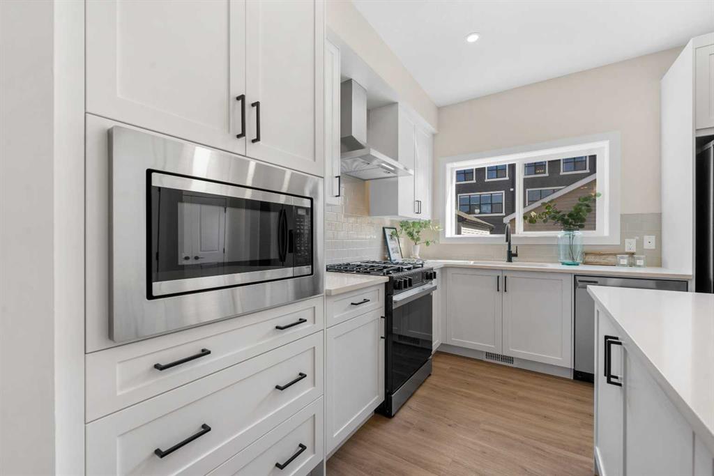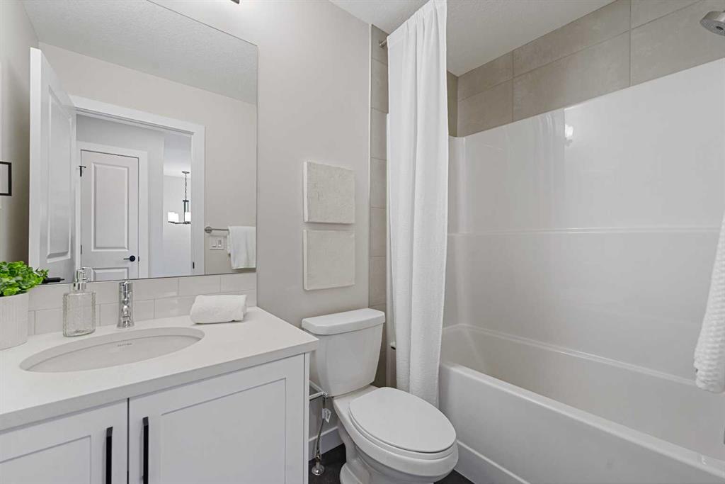 ** Brand New, Move in Ready Home built by Genesis Homes with a LEGAL 2 Bedroom Basement Suite ** The Amber | Stunning Open Floor Plan | Top of the Line Finishes | Sparkling Kitchen | Quartz Countertops | Stainless Steel Appliances | Kitchen Island | Barstool Seating | Pantry | 50″ Electric Fireplace | Wide Plank LVP Flooring | Recessed Lighting | Expansive Living Space | Main Level Flex Room | Upper Level Bonus Room | Upper Level Laundry | Totaling 5 Bedrooms & 3.5 Bathrooms | Legal 2 Bedroom Basement Suite | Separate Entry | Separate Laundry | 9Ft Basement Ceilings | Great Backyard | Double Detached Garage | Alley Access | Steps Away from the Future Park. Welcome to your brand new 2-storey family home boasting 1,610 SqFt throughout the main and upper levels with an additional 747SqFt legal 2 bedroom basement suite. Step inside to a foyer with open to below ceiling and views into the open floor plan main level. This home was designed with style and comfort at the forefront; wide plank LVP flooring, large windows, recessed lighting, high ceilings and more! The front flex room is ready for anyone with a work-from-home lifestyle or can easily be used as a day seating entertainment room. The great room is both spacious and comfortable plus has a stylish flare of a 50″ electric fireplace. Next are the kitchen, family and dining rooms. The kitchen is outfitted with a sparkling quartz countertop, stainless steel appliances, ample cabinet space and a centre island with barstool seating. The dedicated dining room is ready for you to enjoy all your family meals. At the rear of the home is a mud room with closet storage and a door to your back yard and rear double detached garage. The main level is complete with a 2pc bath. Upstairs you’ll find 3 sizeable bedrooms all with wide plank LVP flooring. The primary bedroom has its very own 3pc ensuite bath and a walk-in closet. Bedrooms 2 & 3 share the 4pc bath with a tub/shower combo. The upper level hall laundry is every home owner’s dream as its located steps away from all bedrooms! Downstairs, the LEGAL 2 bedroom basement suite has a separate entry and its own laundry facility making it a completely independent level to this home. This is great as a mortgage helper or for extended family. The basement has 2 sizeable bedrooms, each with great closet space. The open floor plan kitchen and rec room provide flexibility for living and dining. The kitchen is outfitted with quartz countertops, stainless steel appliances and full height cabinets. The 4pc bath on this level has a tub/shower combo and single vanity. Outside is a great backyard and rear double detached garage with alley access. Hurry and book a showing at this gorgeous brand new Genesis home today!