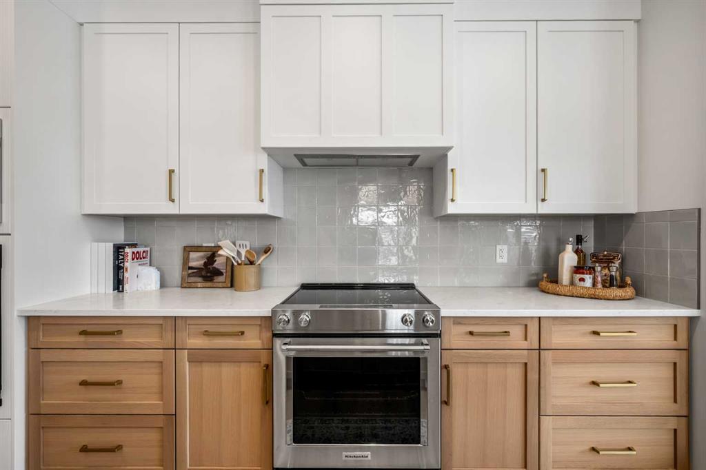 The staggered split design creates distinct yet connected living zones, enhancing both privacy and flow. The main living level presents an open-concept kitchen, dining area, and great room filled with natural light from expansive Energy Star rated Low-E windows. Quartz countertops, custom painted MDF cabinetry with soft-close doors and drawers, a full-height tile backsplash, and a Blanco Horizon sink paired with a Delta Trinsic faucet create a kitchen that is both functional and visually refined. Luxury vinyl plank flooring, 11 LED pot lights, and a contemporary Napoleon Element fireplace add warmth and modern character throughout the main living spaces.