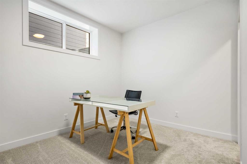 The upper levels are designed for comfort and flexibility, anchored by a spacious primary suite featuring a walk-in closet and a beautifully finished ensuite complete with a freestanding Maax Delsia soaker tub and full-height tile shower. Additional bedrooms, a full bathroom, upper laundry area, and a versatile central bonus room provide adaptable space for family living, work, or relaxation. Soft carpeting with quality underlay enhances comfort and quiet throughout the private living quarters.