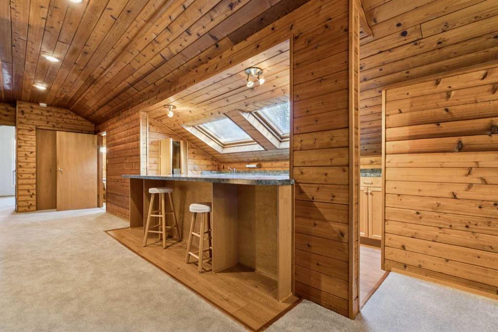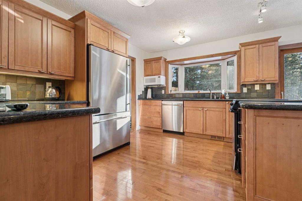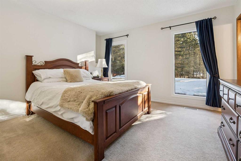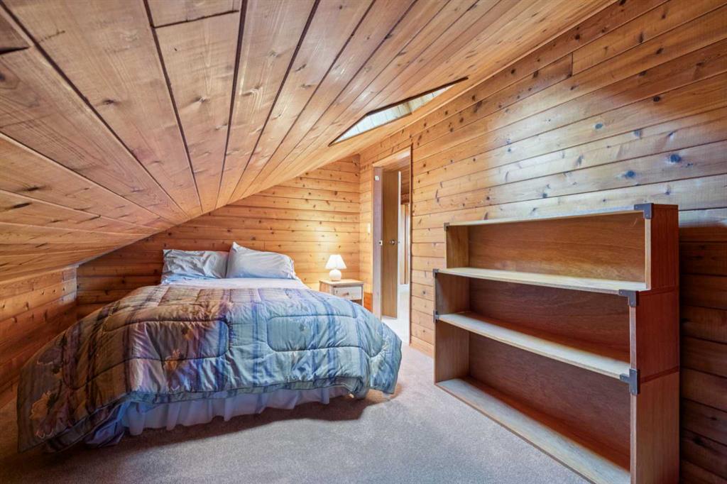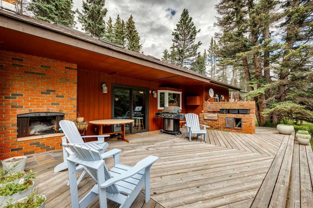 **OPEN HOUSES JAN 17 AND 18 1:00-4:30 PM** Deep in the woods of Redwood Meadows lies a house that is so much more than it seems. Set modestly away from the street into the trees, you might not notice it on a quick drive past- but there are many things that make it worth exploring! First of all is the pride of ownership- this house has been cared for and it shows in every room. The main floor features 3 bedrooms, 2.5 baths, a multitude of areas for entertaining and living, and a deck with outdoor fireplace that would be the envy of anyone who likes to spin a tale to friends under the stars. The kitchen has been updated with new appliances, lighting and gorgeous granite countertops. The primary bedroom has custom closet inserts and an ensuite with modern tile and fixtures. The main floor on its own would be a stunning bungalow, but there is more-the upstairs loft is where this home truly shines. The aura of the second floor brings to mind the quintessential cozy cabin with its wood paneling and new gas fireplace in a Rundlestone inglenook. It is another world upstairs, and has two snug bedrooms, a full bath, wet bar, and renovated balcony with glass balustrade. What could you do with this space? A home based business. A unique space for visiting family. Nanny quarters, art studio, or a bed and breakfast? The potential is endless and intriguing. The upgrades to this home are too numerous to list but include new windows, furnace, hot water heater, bathroom renovations, carpet, roof, insulation, electrical and exterior paint. Everything has been taken care of, all you have to do is move in and enjoy this incredible neighbourhood. Redwood Meadows features golf, fishing, hiking, mountain biking, x-country skiing, tennis, disc golf, and more…right outside your front door. Located only 30 minutes from Calgary, 8 minutes to the Bragg Creek hamlet, with access to great schools, shopping and restaurants, and right at the gateway to all the recreational opportunities of Kananaskis Country. Come see why everyone wants to live here!