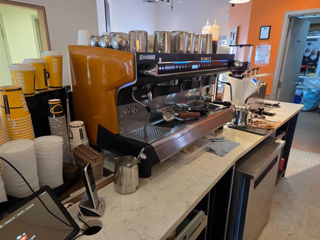A Rare opportunity to operate this beautifully set up Second Cup franchise coffee shop in the busy neighborhood. Excellent location with all newer equipment and lease improvements! The brand new lease is in placed and this beautiful coffee place has plenty of space to park to accommodate the customers in the parking area. All the assets and equipment are included in the sale, just need a new owner with great entrepreneurship ideas. The store is mainly operated by the staff, please respect the business. It is one of the best locations with plenty ideas to grow the business.