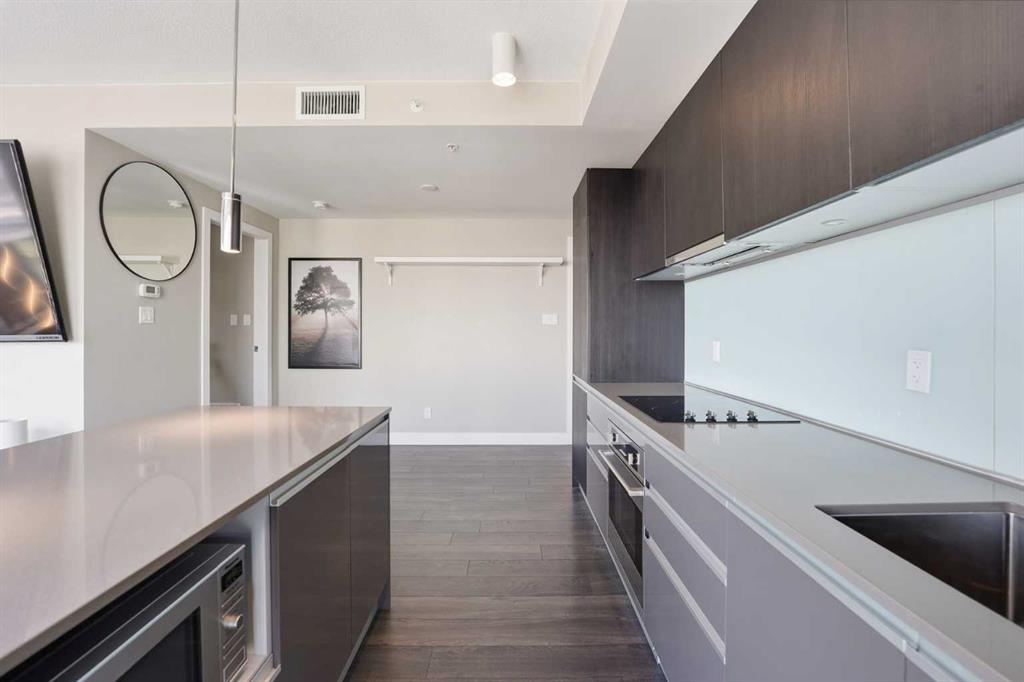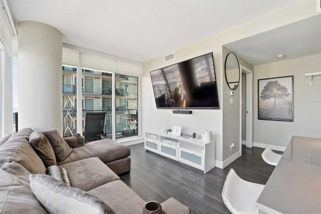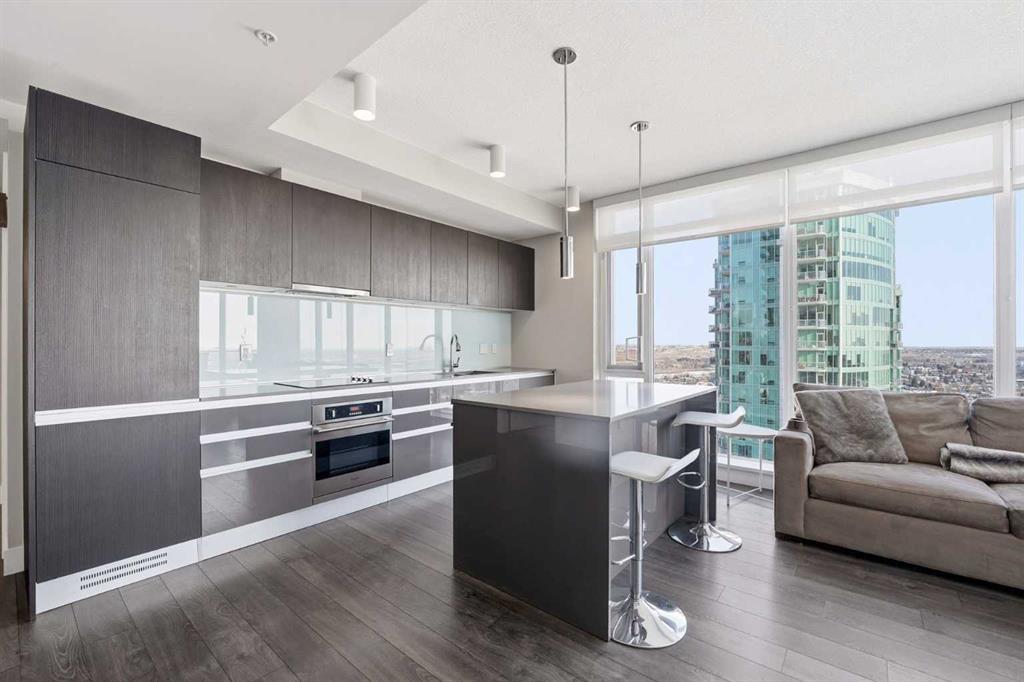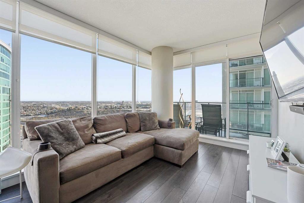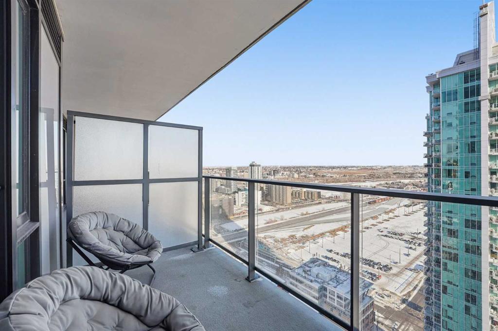 *OPEN HOUSE SUNDAY FEB 1ST 1:00PM-3:00PM* Welcome to elevated inner-city living on the 28th floor, where natural light and thoughtful design come together in this stunning 2-bedroom, 2-bathroom CORNER residence. A major value-add rarely found in this price point: TWO TITLED UNDERGROUND PARKING STALLS (double-long tandem), perfect for multiple vehicles or or if you have a large truck. Additional conveniences include in-suite laundry and walking distance to shopping, coffee shops, and restaurants. This home immediately stands out with its FLOOR-TO-CEILING windows on multiple exposures, flooding the space with sunlight throughout the day. Step onto your private balcony to take in unforgettable sunsets and enjoy front-row seats to Calgary’s iconic firework displays — all from the comfort of home. Inside, the open-concept layout is both functional and inviting, ideal for everyday living and entertaining alike. The modern kitchen features` quartz countertops, stainless steel appliances, and clean contemporary finishes that flow seamlessly into the living and dining areas. Both bedrooms are generously sized, offering PRIVACY and comfort, while the two full bathrooms provide flexibility for guests, roommates, or professionals working downtown. Residents enjoy access to an impressive lineup of amenities, including a fully equipped GYM, party/lounge space, garden terrace, workshop, and 24 HOUR SECURITY with CONCIERGE service for seamless package delivery. Located just steps from the Bow River pathways, East Village, Stampede Grounds, 17th Avenue, transit, dining, nightlife, and cultural attractions, this home offers unbeatable walkability and urban convenience. Priced exceptionally well for a high-floor corner unit, this property represents a rare opportunity to enter the downtown condo market without compromise — combining views, light, parking, amenities, and location in one complete package. This is city living done right.