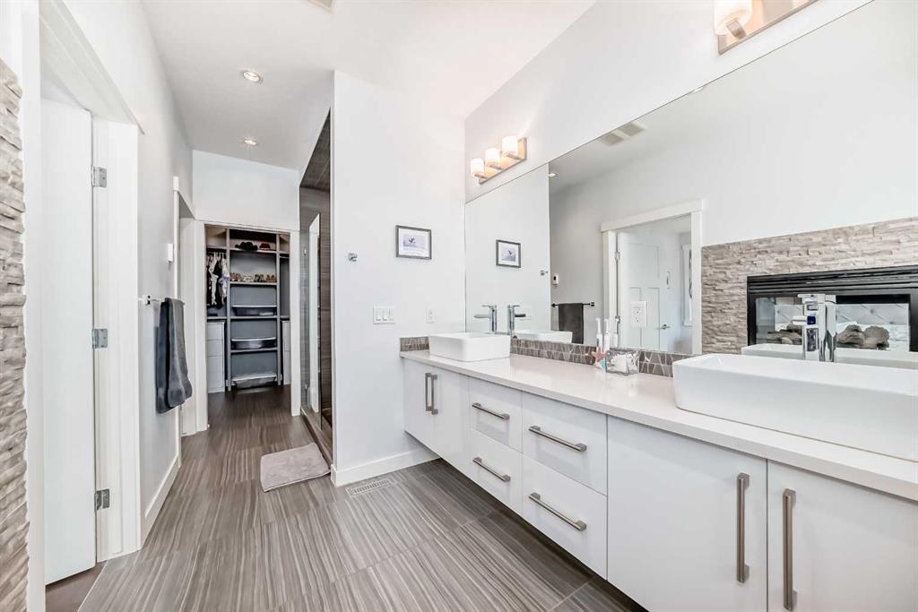 Upstairs, unwind in the luxurious primary retreat featuring a cozy two-way fireplace and spa-inspired ensuite with dual sinks, a deep soaker tub, fully tiled walk-in shower, and an oversized walk-in closet. Two additional bedrooms with large windows, a full 4-piece bathroom, and convenient upper-level laundry complete the second floor.