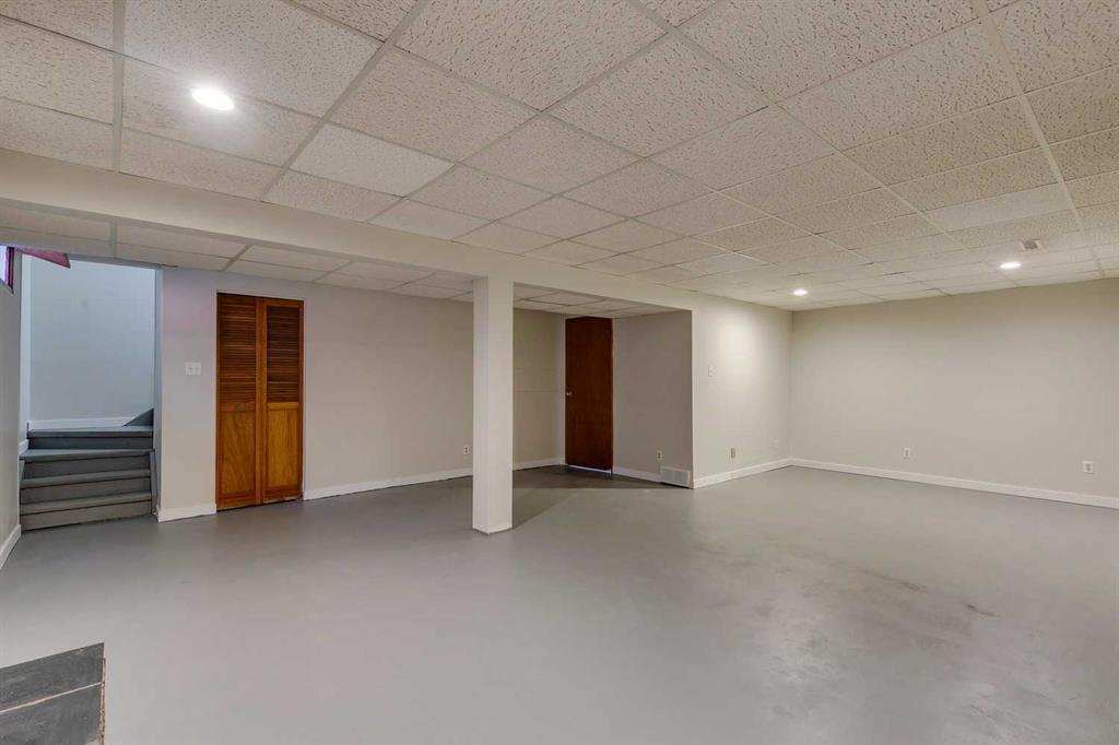 The basement is an open palette with a clean, painted conrete floor, one big open recreation room + the 4th bedroom and 3 piece bath. There is a cedar wood closet with leads to hidden cold room. The basement is fully finished.