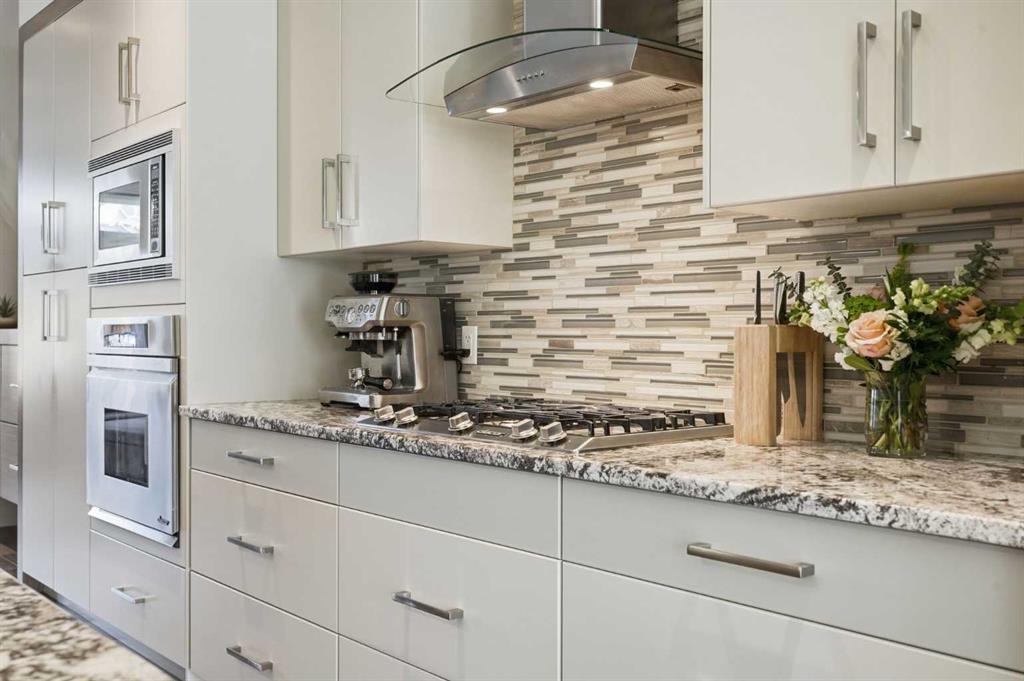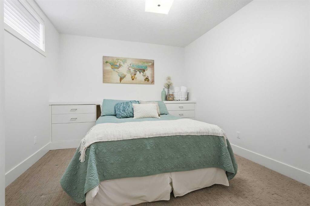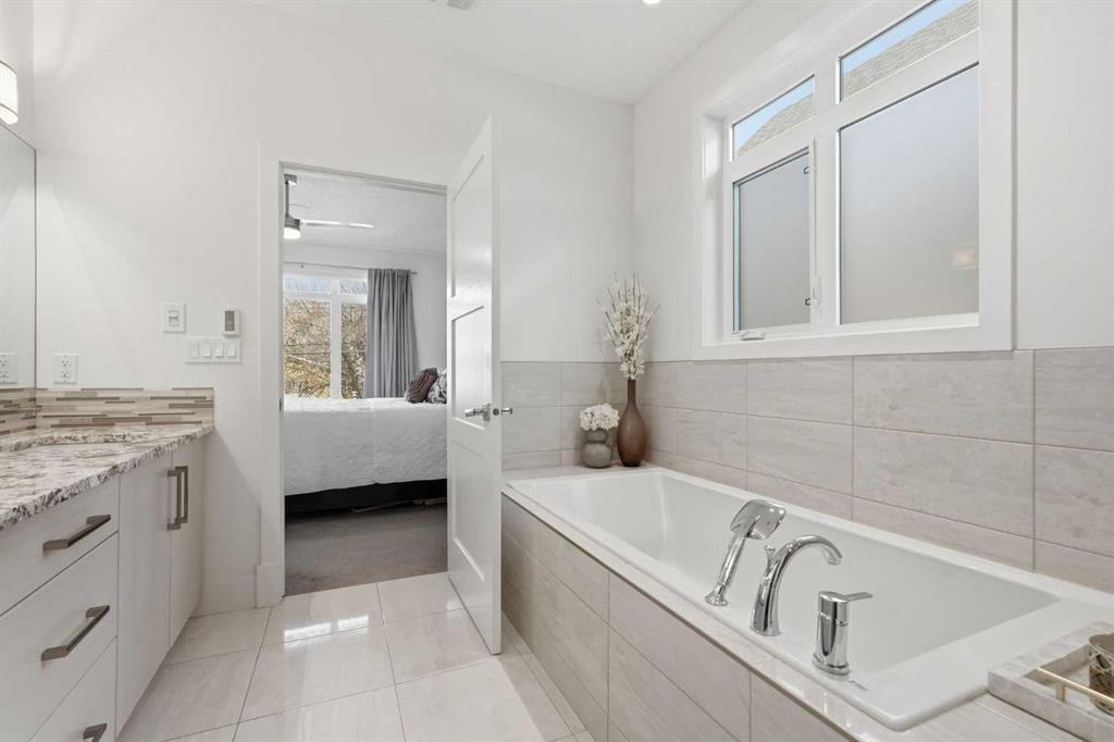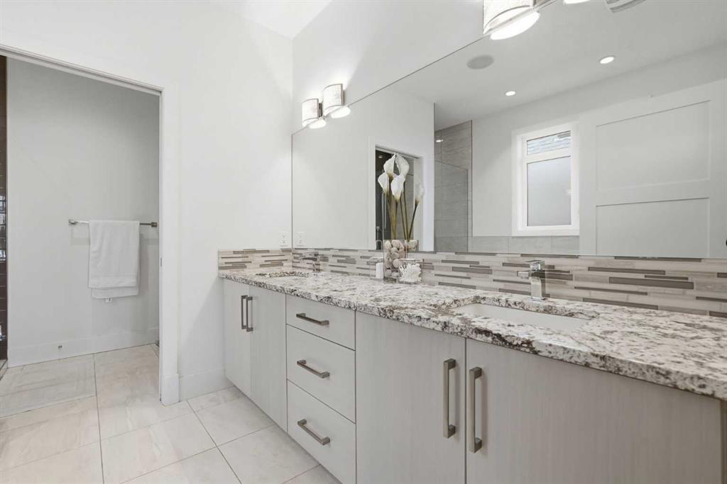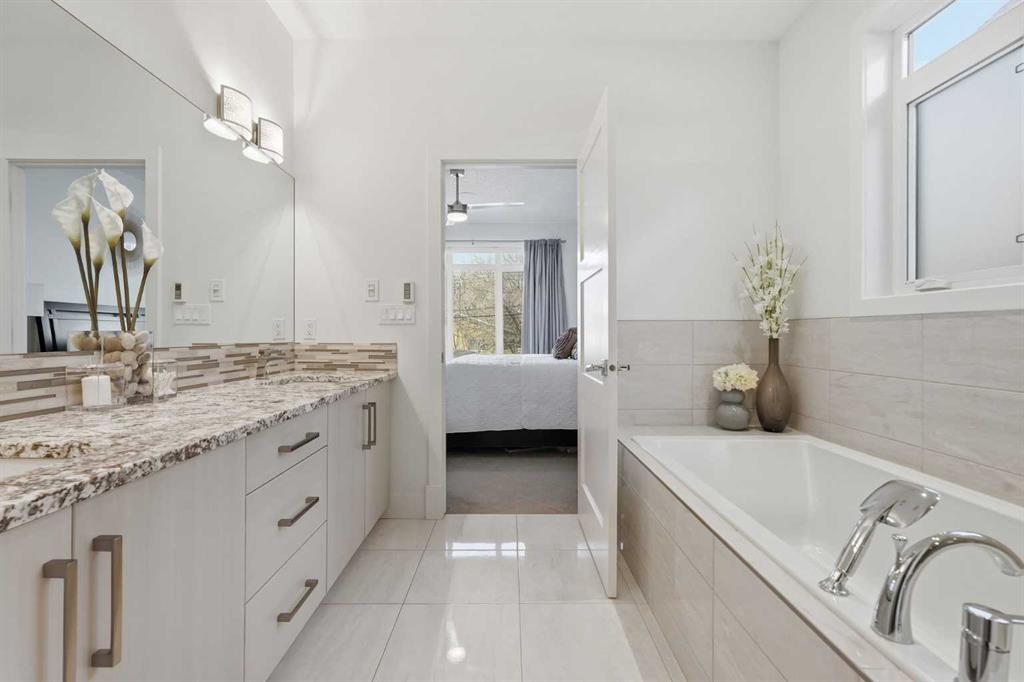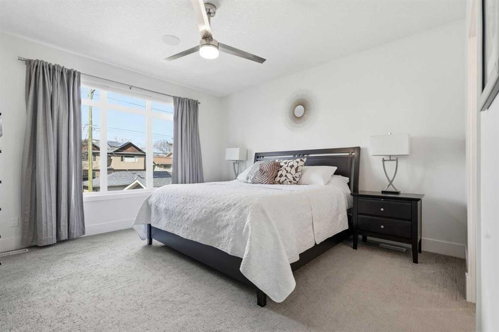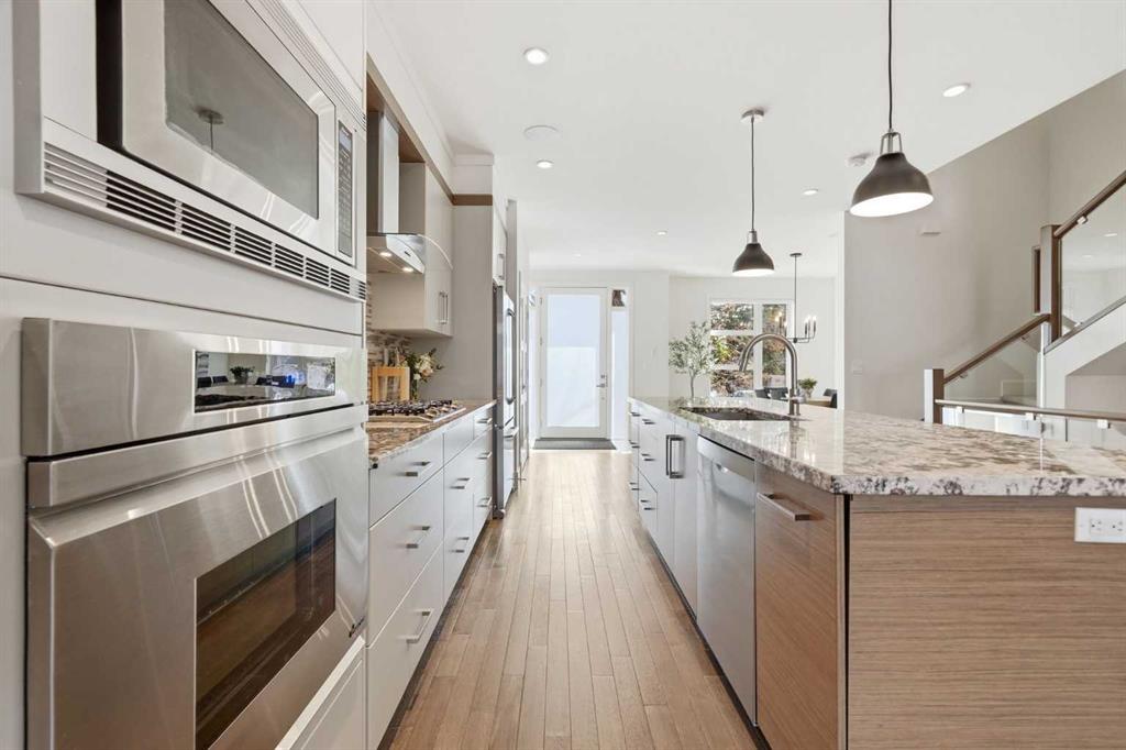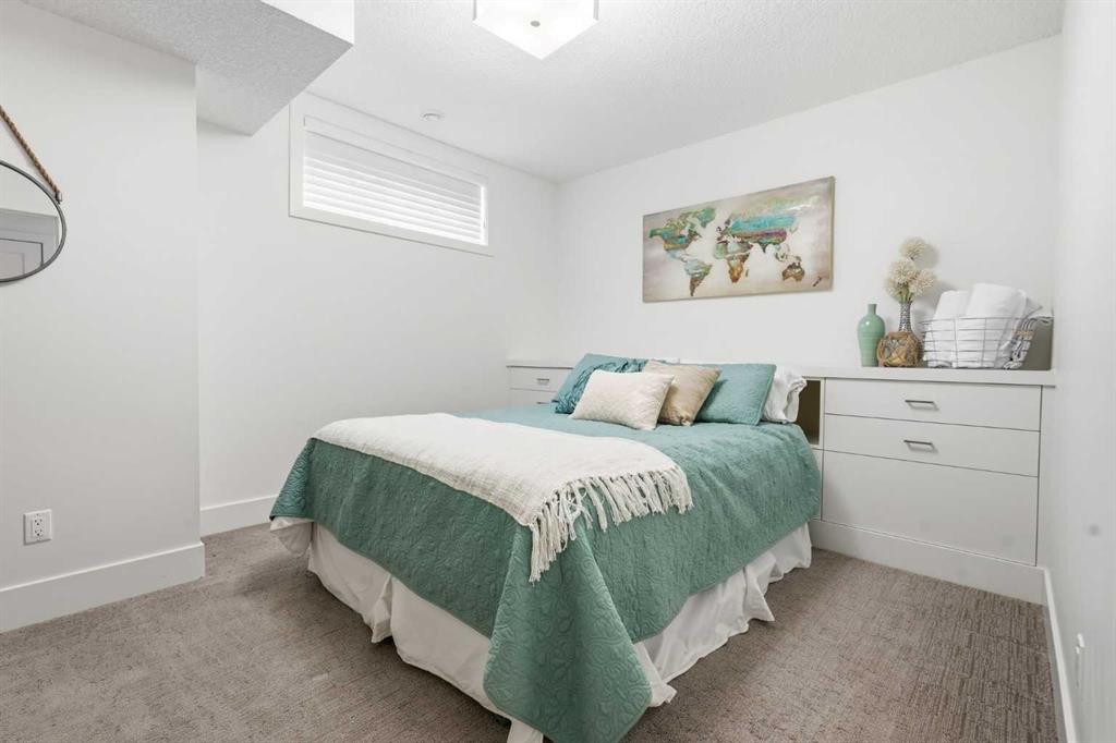 OPEN HOUSE SATURDAY, APRIL 18TH & SUNDAY, APRIL 19TH FROM 1-4 PM EACH DAY. Extreme pride of ownership is evident throughout this move in ready 3+1 bedroom home, offering over 2,700 sq ft of pristine, thoughtfully designed living space. The main level features hardwood floors and lofty ceilings, beginning with a spacious front dining room ideal for hosting family and friends. The dining area flows seamlessly into the beautifully appointed kitchen, complete with granite countertops, an island with eating bar, abundant cabinetry, and high end stainless steel appliances including a new Bosch dishwasher. The adjacent living room is anchored by a tiled feature fireplace and custom built ins. A stylish 2 piece powder room completes the main level. The upper level hosts three generous bedrooms and a 4 piece main bath. The primary retreat includes a walk in closet and a private 5 piece ensuite with in floor heat, dual sinks, a relaxing soaker tub, and a separate shower. A well appointed laundry room with sink and storage is also conveniently located on this level. The fully developed basement extends the living space with an office nook, large family/media room and a wet bar—perfect for movie nights or game day. A fourth bedroom, 3 piece bath, and dedicated storage room complete the lower level. Additional highlights include a guaranteed pet free home, central air conditioning, a 6 zone in home speaker system, custom sheer blinds on all windows, and TV mounts in both the living room and basement. Outside, enjoy a private west facing backyard designed for low maintenance living, featuring an extended deck, astro turf with a 3 hole putting green, an aggregate pathway to the garage, and an irrigated integrated planter. The double detached garage accessed from the paved back lane, is insulated, drywalled, and heated for year round comfort. This beautifully maintained home is ideally located close to schools, parks, shopping, public transit, and offers quick access to 26th Avenue, Richmond Road, and Crowchild Trail.