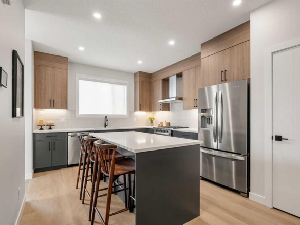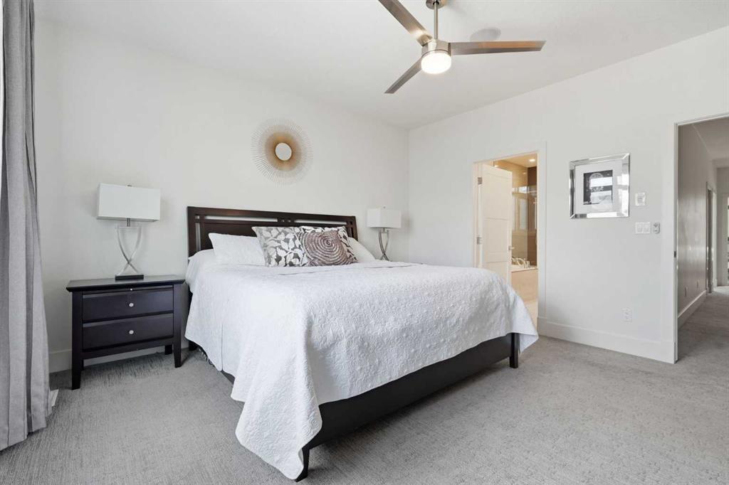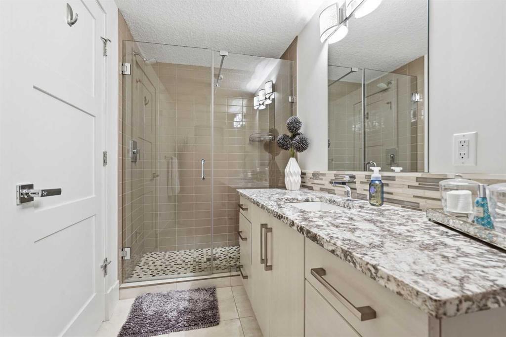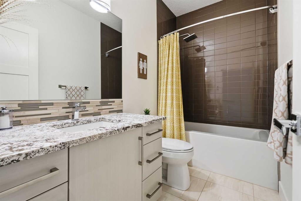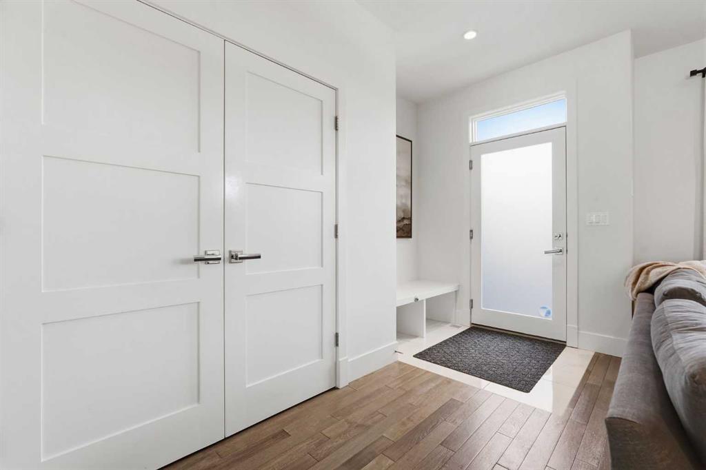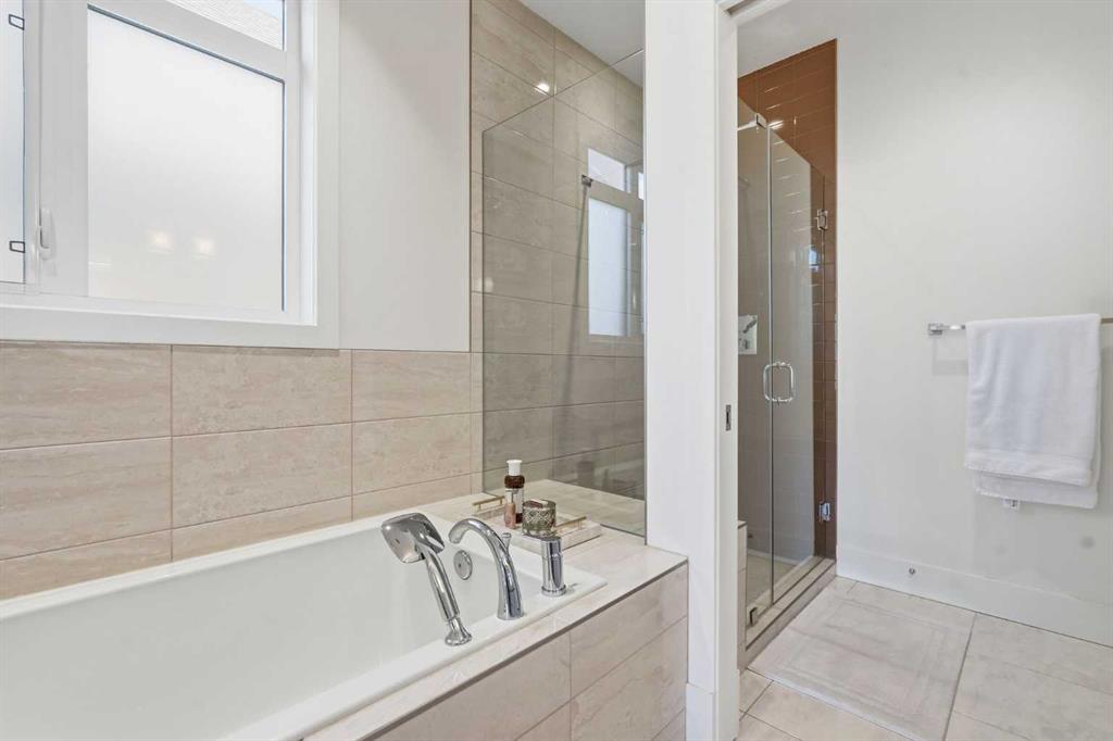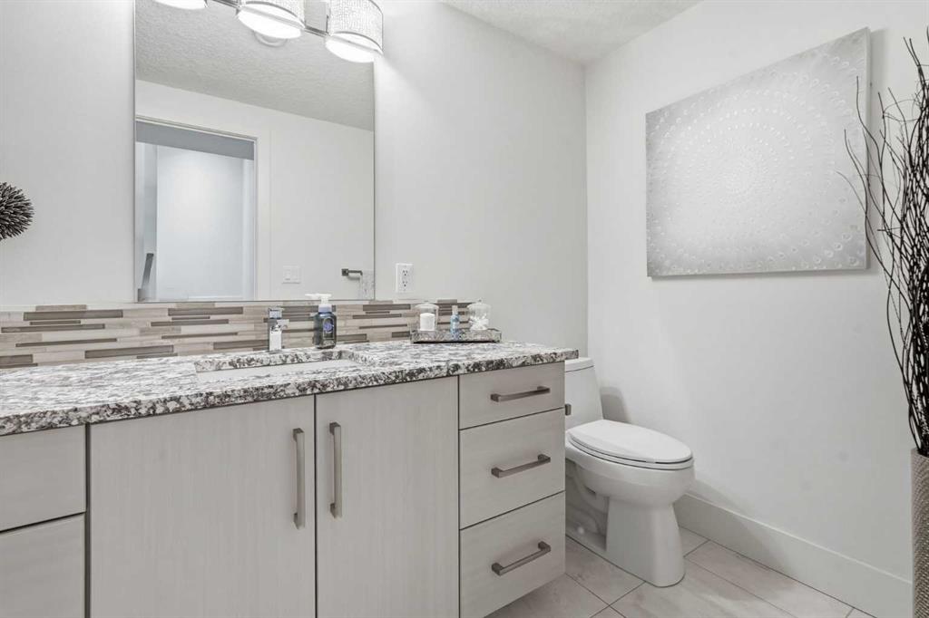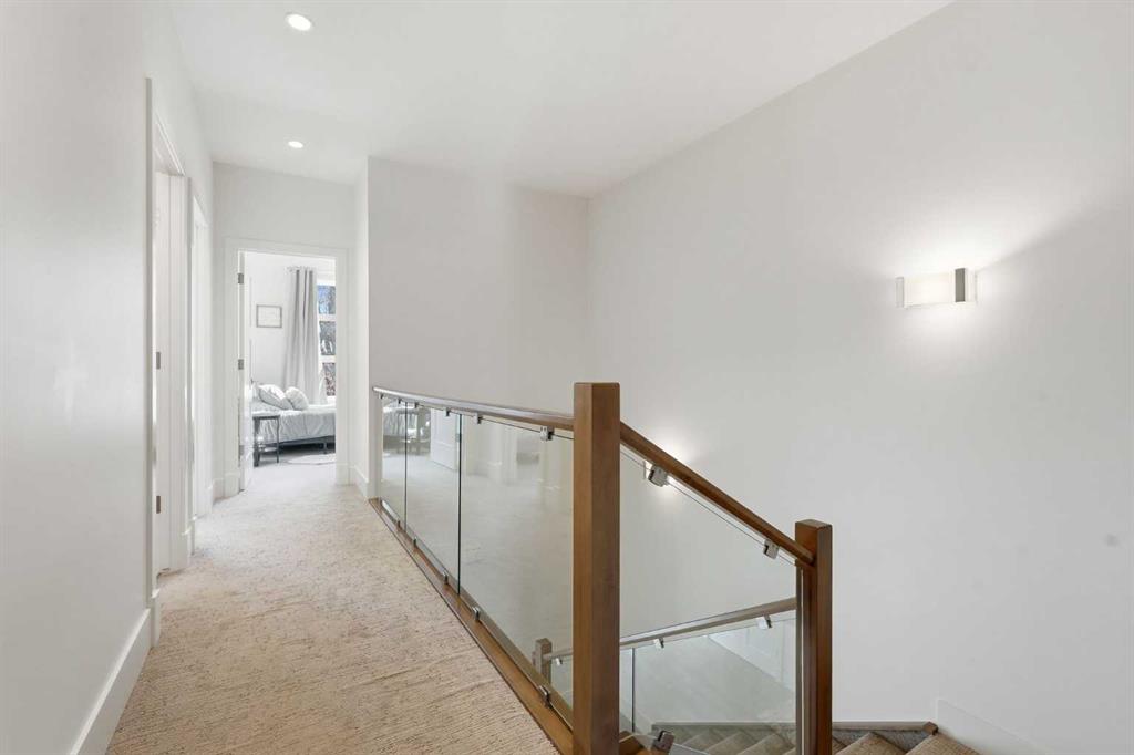 OPEN HOUSE SATURDAY, APRIL 18TH & SUNDAY, APRIL 19TH FROM 1-4 PM EACH DAY. Extreme pride of ownership is evident throughout this move in ready 3+1 bedroom home, offering over 2,700 sq ft of pristine, thoughtfully designed living space. The main level features hardwood floors and lofty ceilings, beginning with a spacious front dining room ideal for hosting family and friends. The dining area flows seamlessly into the beautifully appointed kitchen, complete with granite countertops, an island with eating bar, abundant cabinetry, and high end stainless steel appliances including a new Bosch dishwasher. The adjacent living room is anchored by a tiled feature fireplace and custom built ins. A stylish 2 piece powder room completes the main level. The upper level hosts three generous bedrooms and a 4 piece main bath. The primary retreat includes a walk in closet and a private 5 piece ensuite with in floor heat, dual sinks, a relaxing soaker tub, and a separate shower. A well appointed laundry room with sink and storage is also conveniently located on this level. The fully developed basement extends the living space with an office nook, large family/media room and a wet bar—perfect for movie nights or game day. A fourth bedroom, 3 piece bath, and dedicated storage room complete the lower level. Additional highlights include a guaranteed pet free home, central air conditioning, a 6 zone in home speaker system, custom sheer blinds on all windows, and TV mounts in both the living room and basement. Outside, enjoy a private west facing backyard designed for low maintenance living, featuring an extended deck, astro turf with a 3 hole putting green, an aggregate pathway to the garage, and an irrigated integrated planter. The double detached garage accessed from the paved back lane, is insulated, drywalled, and heated for year round comfort. This beautifully maintained home is ideally located close to schools, parks, shopping, public transit, and offers quick access to 26th Avenue, Richmond Road, and Crowchild Trail.