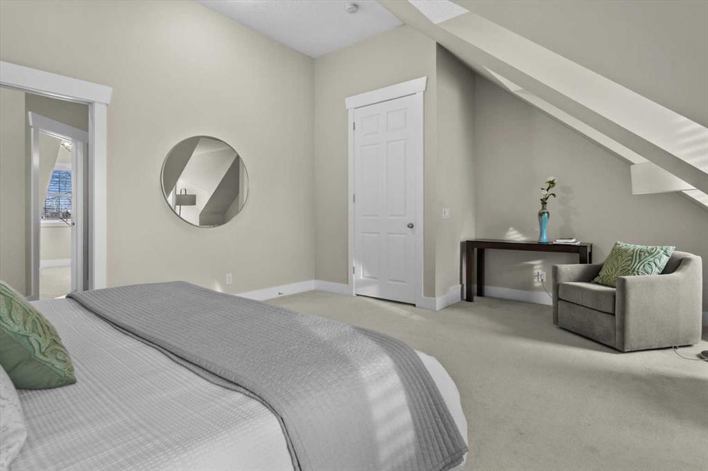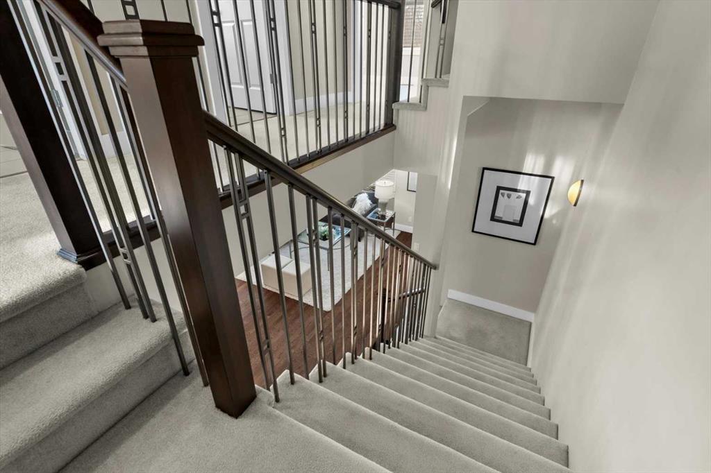 Architecturally refined and timelessly designed, this 3 storey END UNIT townhouse presents a commanding presence within the heart of Garrison Green, offering nearly 3,000 sq. ft. of thoughtfully developed living space and a layout designed to support both everyday life and elevated entertaining. A charming brick exterior creates an enduring first impression while the end unit positioning allows for additional windows and enhanced natural light throughout. Hardwood floors, high ceilings and a neutral colour palette set a calm and cohesive tone across the main level, where an open floor plan encourages effortless flow between living, dining and kitchen spaces. A 3 sided fireplace anchors the main floor, inviting relaxation in the living room while simultaneously creating a warm, intimate atmosphere in the dining area ideal for hosting gatherings. Culinary creativity is inspired in the beautifully appointed kitchen featuring quartz countertops, a gas stove for precise cooking control, stainless steel appliances, full height cabinetry for expanded storage, a wall pantry for organization and a centre island with breakfast bar seating that naturally becomes a social hub. A rear mudroom provides a functional transition from the outdoors, easily concealing daily clutter and offering convenient access to the powder room for quick cleanups after arrivals. Outdoor enjoyment continues on the rear deck equipped with a gas line, simplifying summer barbecues and casual evenings outside. An iron-railed staircase leads to the second level where a private bedroom layout places sleeping quarters on opposite sides, enhancing privacy and flexibility for families or guests. 2 extremely generously sized bedrooms each benefit from corner windows that draw in abundant daylight, while a centrally located laundry area eliminates the need to carry loads between floors. A full 4-piece bathroom completes this level with ease and practicality. The entire 3rd floor is dedicated to an exceptional primary retreat, creating a true owner’s sanctuary defined by privacy and scale. Vaulted ceilings and additional windows amplify the sense of space, while the indulgent ensuite offers dual vanities for streamlined mornings, a deep soaker tub for unwinding and a separate shower for spa-like comfort. A large walk-in closet provides ample room for wardrobe organization and seasonal storage. Additional living space is found in the professionally finished basement where a massive recreation room allows furniture-defined zones for media, play, fitness, work or hobbies without compromise. A full 4 piece bathroom on this level supports extended stays and flexible use. Outdoor living is complemented by a private rear deck with sunny south exposure and a paver stone patio that leads directly to the double detached garage, ensuring secure parking and added storage. Central vacuum simplifies cleaning routines for everyday convenience. Designed for everyday comfort with space, privacy and a walkable park-side setting!