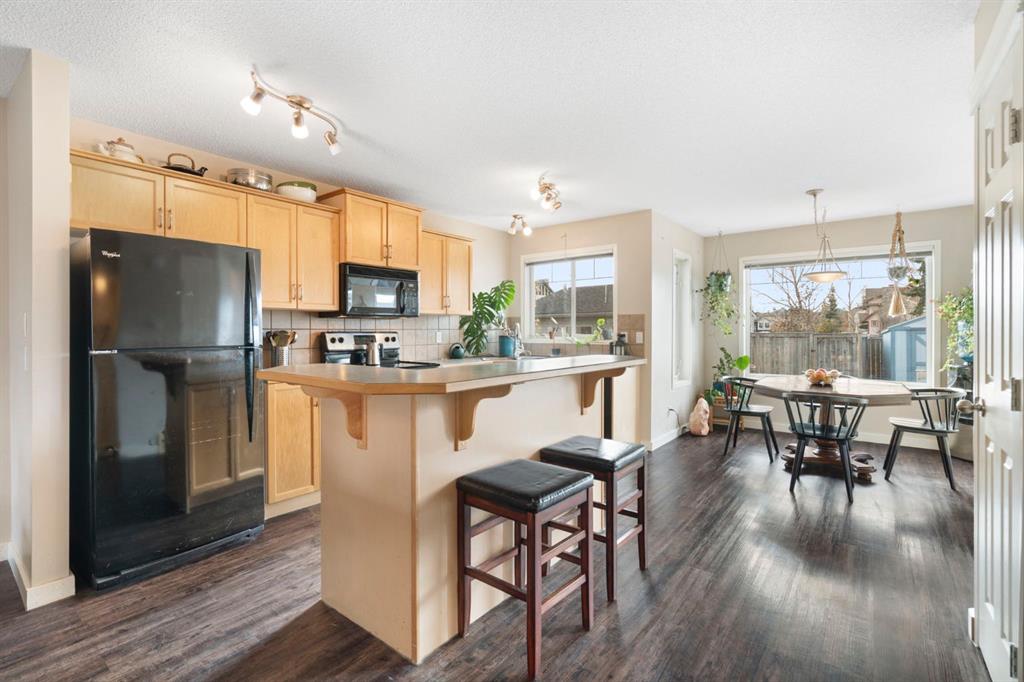 The heart of the home is the open-concept main floor, filled with natural light and an easy, grounded flow from living room to kitchen. Cozy evenings by the fireplace, slow mornings with coffee at the breakfast bar, and everyday moments that just feel calm and connected. From the kitchen sink, you can look out and watch your kids play, because this home backs onto a park, offering rare privacy and a peaceful green backdrop.