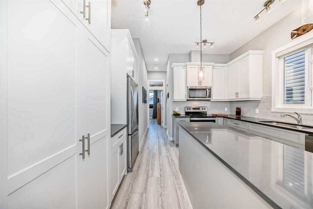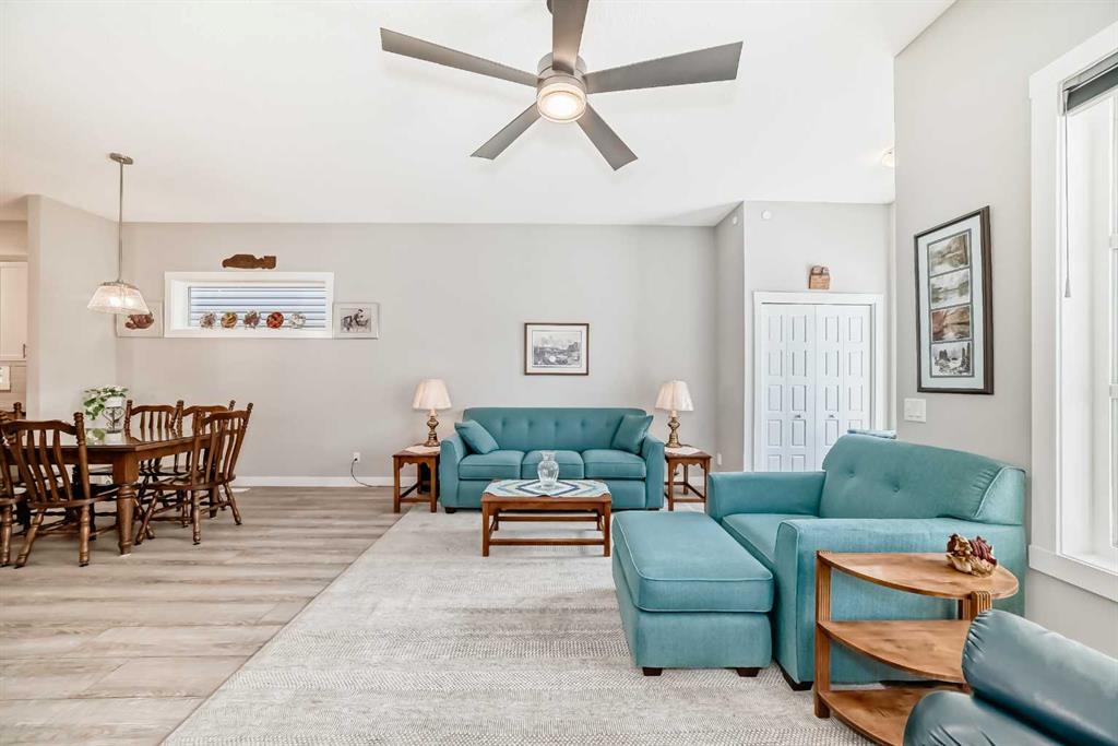 PRICE CORRECTION! DON’T MISS OUT. Step inside this beautifully upgraded and meticulously maintained bungalow, where pride of ownership is immediately evident. Nestled in the highly desirable NW Livingston community, this immaculate 3-bedroom, 2.5-bathroom home combines modern elegance with everyday functionality. The exterior boasts durable *Hardie Board Siding* and *Class 4 shingles*, offering extra protection against hailstorms. Triple-pane windows and custom *Hunter Douglas blinds* add both style and energy efficiency, ensuring year-round comfort. Inside, the main level features soaring 10’ ceilings, luxury vinyl plank flooring, and an open-concept design that effortlessly connects the living room, dining area, and kitchen—creating a bright, airy space perfect for both entertaining and day-to-day living. At the heart of the home is the chef-inspired kitchen, complete with sleek two-toned cabinetry, gleaming *quartz countertops*, and a large central island. It’s fully equipped with stainless steel appliances, a microwave/hood fan combo, abundant cabinetry, and top-notch lighting that makes meal prep and gathering a true pleasure. The spacious primary bedroom is a private retreat, featuring a luxurious 5-piece ensuite with dual vanities, a deep soaker tub, and a walk-in closet. Large windows flood the room with natural light, enhancing the peaceful ambiance. A back boot room and laundry area, as well as a stylish 2-piece powder room, complete the main floor. The professionally developed lower level offers two additional bedrooms—each with walk-in closets—along with a modern 4-piece bathroom. High 9’ ceilings and a cozy family room with a gas fireplace provide the perfect place to unwind. Thoughtful lighting and plenty of storage make this space both functional and inviting. You’ll also find a Heat Recovery Ventilator (HRV). A *double detached garage* (19’9″x19′) offers ample parking and storage, and the property enjoys the convenience of a paved back alley. Located just minutes from Stoney Trail and Deerfoot Trail, this home offers quick access to downtown, shopping, entertainment, and more. Don’t miss the chance to make this dream home your own! **Call your favorite REALTOR® today to book your private showing!**