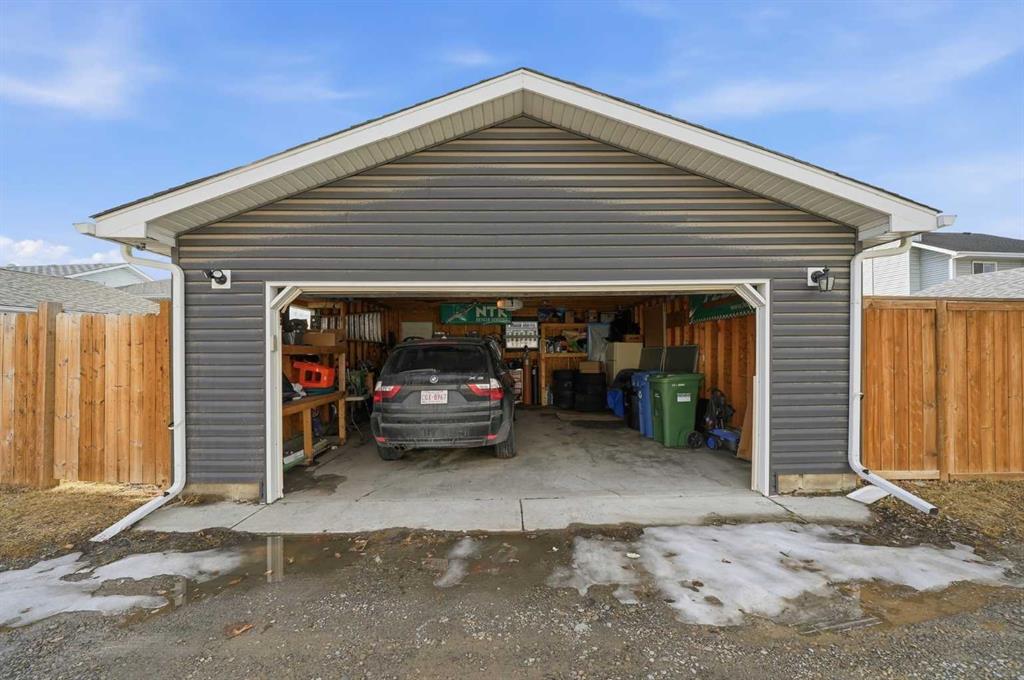 Outside, the home showcases new dark-coloured siding that enhances the curb appeal, along with a double detached garage and a spacious backyard.