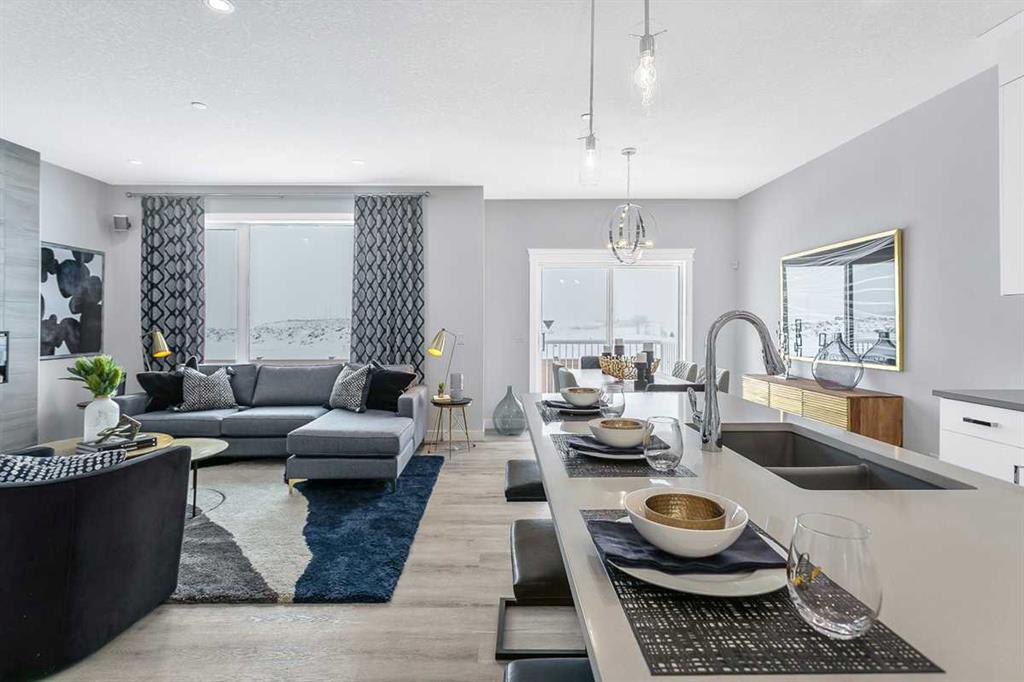 Welcome to your new home in one of Calgary’s newest and most accessible communities – Hotchkiss. This beautifully designed 2040 SF home with a double car front attached garage and rear deck offers the perfect balance of comfort, style, and convenience—a short 5 minute drive to Seton amenities and quick access to Stoney and Deerfoot Trail. Step inside to find an open-concept floor plan filled with natural light, high ceilings, and modern finishes throughout. The spacious main floor features a large flex room suitable for a home office, and flows seamlessly into a gourmet kitchen complete with upgraded Samsung stainless steel appliances, quartz countertops, and a generous island—perfect for entertaining or casual meals. Upstairs, the primary bedroom is your personal retreat with large windows, a WIC and ensuite. Two extra bedrooms and a spacious bonus room provide ample space for entertaining, as well as comfortable accommodations for family and guests.