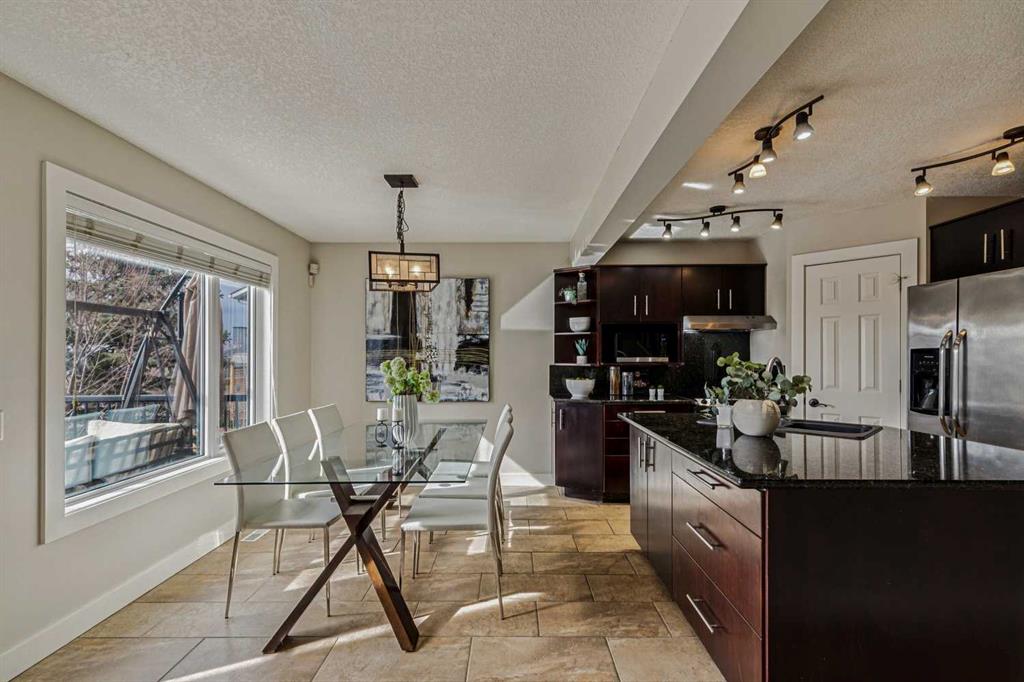 Relax on the 2 level deck, surrounded by nature while still being right in the city (the fireplace table is great for roasting smores). Views from the back of the house like this are rare in Calgary, a straight view to the mountains, framed by all the trees in the backyard.
