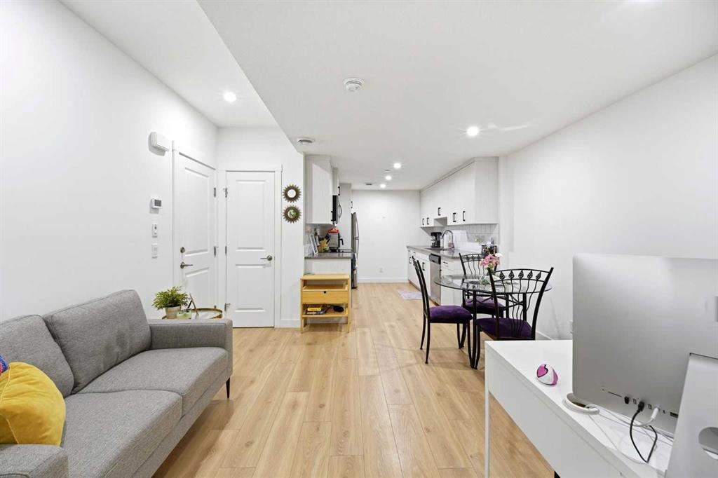 Welcome to this recently built, fully finished semi-detached home with a legal basement suite and double detached garage in front of park in the desirable community of Livingston. Offering over 2,200 sq. ft. of developed living space, this stylish and well-maintained property is ideal for families and investors alike. The main floor features 9-ft ceilings and an open-concept design highlighted by a bright white gourmet kitchen complete with built-in oven and microwave, chimney hood fan, stainless steel appliances, central island, crown-molded cabinetry, tile backsplash, spacious pantry, and a convenient 2-piece bath. Large windows and patio doors flood the living and dining areas with natural light.