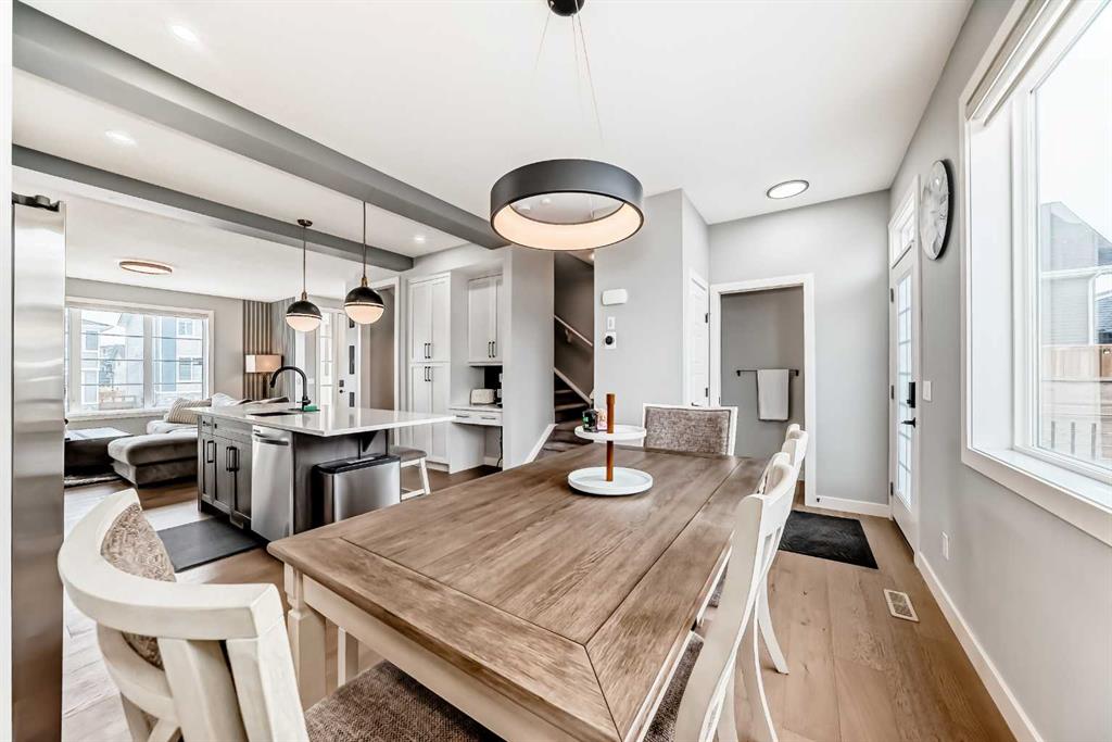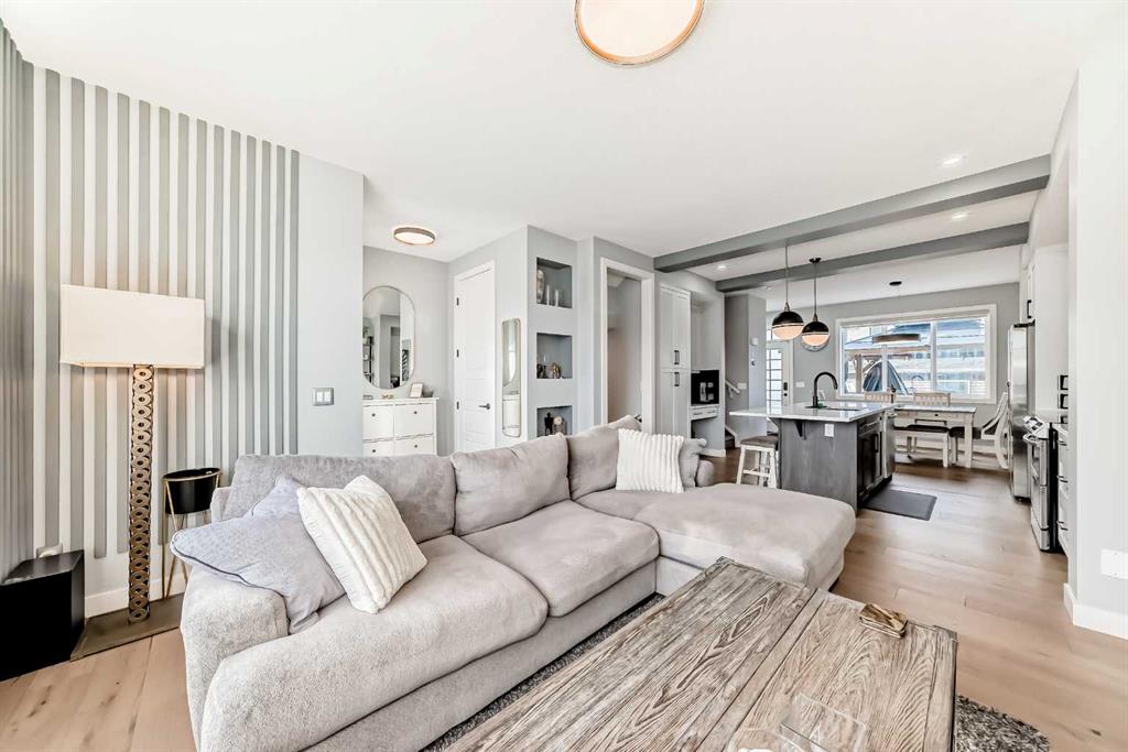Immaculate, fully finished and beautifully landscaped—this exceptional family home in Precedence shows like a showhome and is move-in ready from top to bottom. Offering 1,338 sq ft above grade and 1,753 sq ft of professionally developed living space, this outstanding property features 4 bedrooms, 3.5 bathrooms, and an oversized double detached garage. The bright open main floor showcases engineered hardwood flooring, an oversized quartz island with seating, upgraded lighting, and a stylish tray ceiling that adds architectural character to the kitchen and dining area. The kitchen also features upgraded appliances including a premium smart refrigerator with touchscreen display and upgraded stove. Upstairs you’ll find three spacious bedrooms including a primary suite with a 3-piece ensuite and large walk-in closet, plus the convenience of top-floor laundry. The professionally finished basement adds a fourth bedroom, full bathroom, and additional living space. The beautifully professionally landscaped yard (approx. $25,000) includes hard-wired 12V landscape lighting and a stunning deck and gazebo (approx. $11,000) creating a perfect outdoor retreat. Located just 1.5 blocks from Precedence Park with spectacular views of the Bow River valley, and only a 5-minute drive to the Spray Lake Sawmills Family Sports Centre, nearby schools, and the new Greystone Calgary Co-op grocery store, this home offers an exceptional lifestyle in one of Cochrane’s most desirable communities.