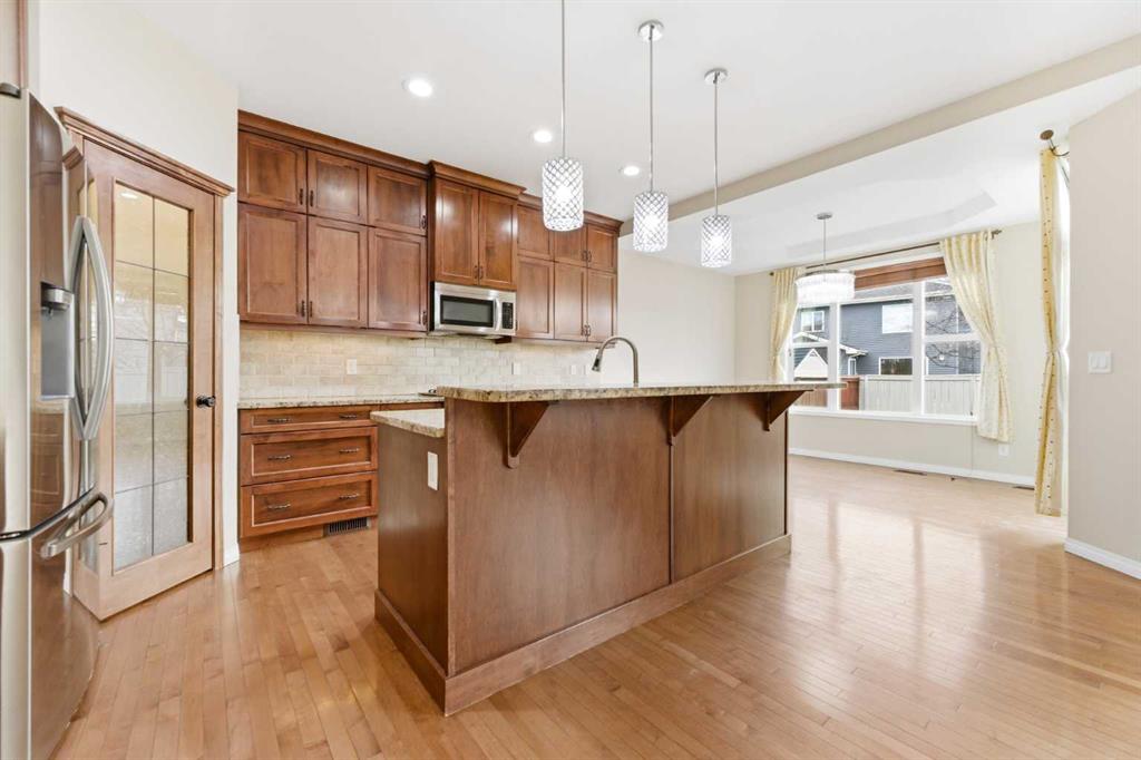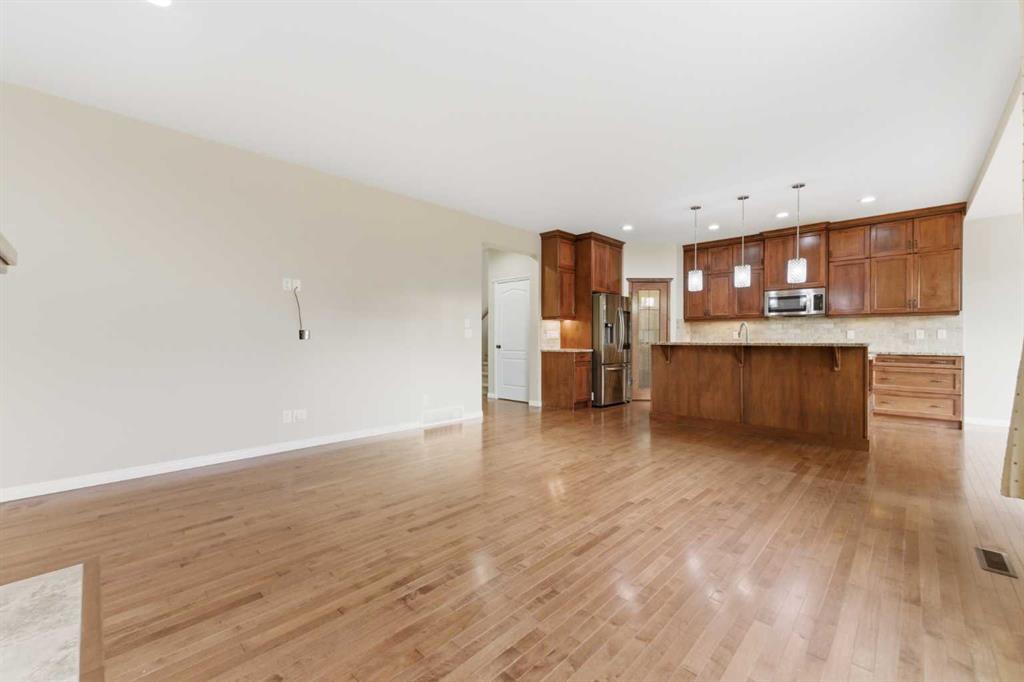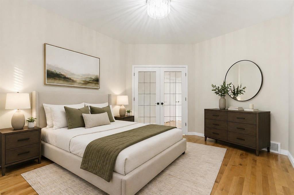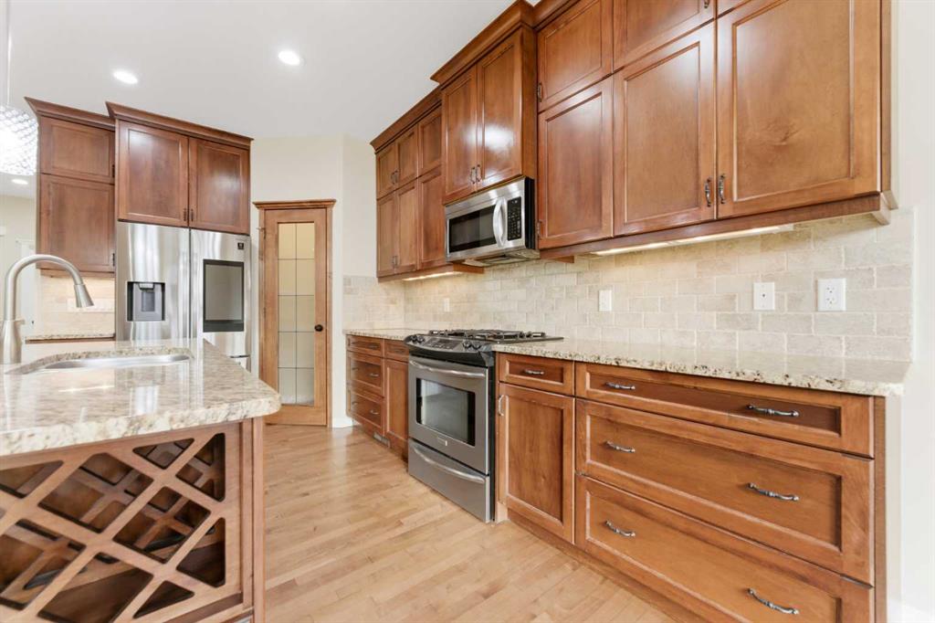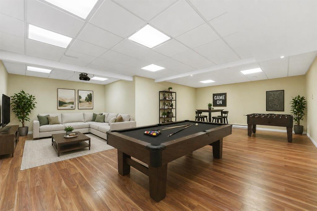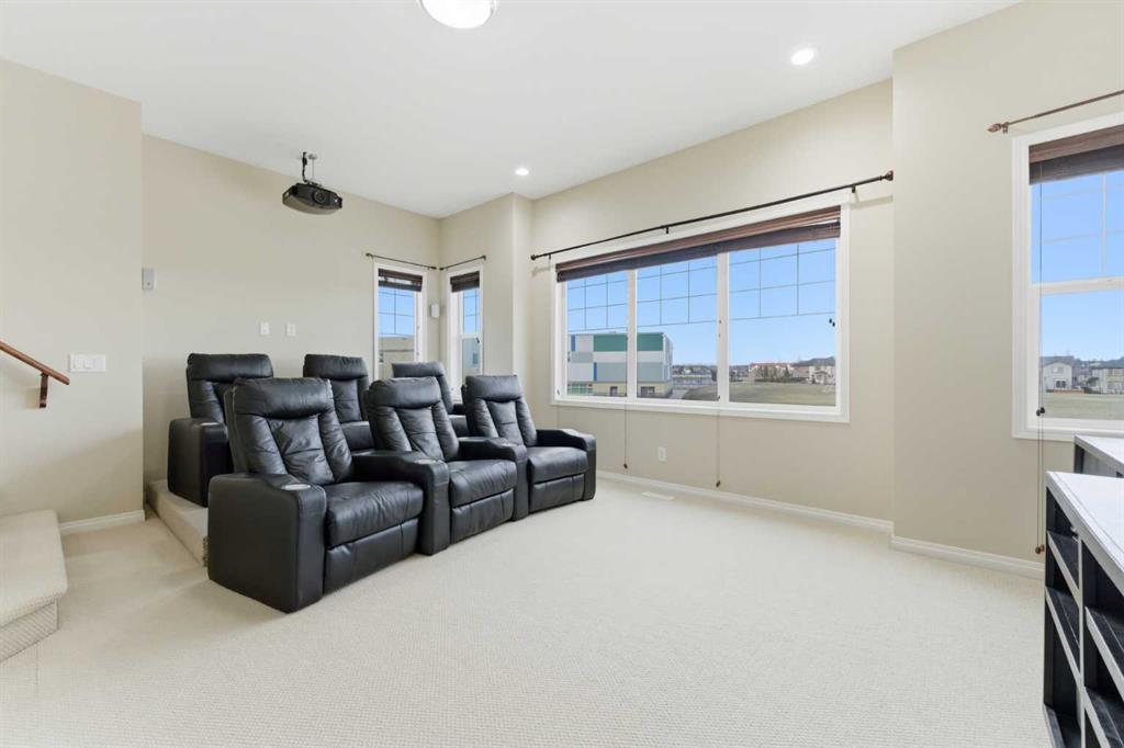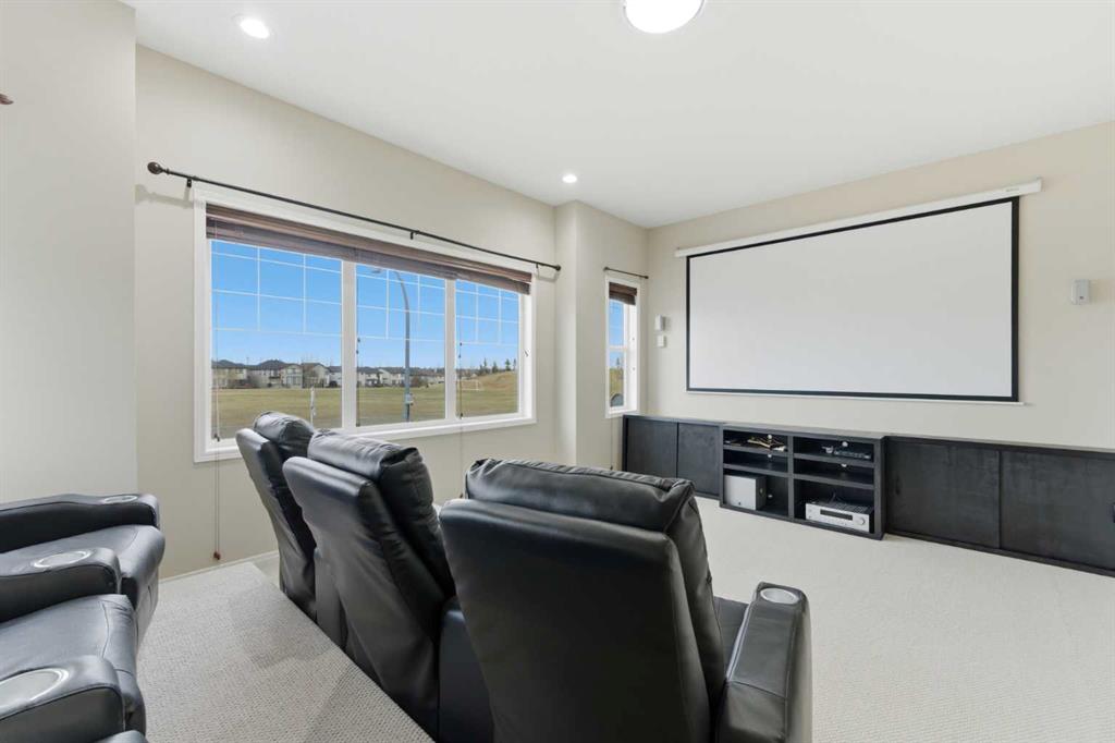 Main floor bedroom, central air conditioning, heated garage with epoxy flooring, and a sunny southwest-facing backyard that fills the living room and kitchen with natural light—this meticulously maintained home offers exceptional family living with five bedrooms above grade, a custom theatre room, and a fully finished basement. Ideally located in one of Northwest Calgary’s most sought-after communities, the protected green space directly in front of the home provides lasting views, added privacy, and a peaceful park-like setting. As you step inside, you are welcomed by gleaming hardwood flooring, a main floor full bedroom, and a beautifully designed kitchen featuring ceiling-height cabinetry, a corner pantry, quartz countertops, a smart Samsung refrigerator, stainless steel appliances, and a gas range—perfect for both everyday living and entertaining. The main floor showcases impressive 9-foot ceilings with premium Level 5 ceiling finish, offering a smooth, high-end look throughout. The bright dining area is filled with natural light and opens to the rear deck through sliding patio doors. Upstairs, you’ll find four spacious bedrooms along with a stunning custom theatre room—perfect for movie nights and family gatherings. The primary retreat features a luxurious 5-piece spa-inspired ensuite with dual sinks, a deep soaker tub, and a separate shower. The convenient upper-floor laundry room completes this level, which also features premium Level 5 ceiling finish throughout. The fully finished basement adds incredible versatility with a large open recreation area ideal for a children’s play zone, games area, home gym, or a relaxed family lounge. A fifth bedroom, full 3-piece bathroom, and ample storage complete the lower level. The double attached heated garage, upgraded with durable epoxy flooring for both style and function, connects directly to the mudroom to keep daily organization simple and efficient. Royal Oak is one of the most sought-after communities in Northwest Calgary, offering close proximity to the CTrain station, top-rated private schools like Renert School, the Shane Homes YMCA at Rocky Ridge, easy access to Stoney Trail, and countless shopping, dining, and lifestyle amenities.