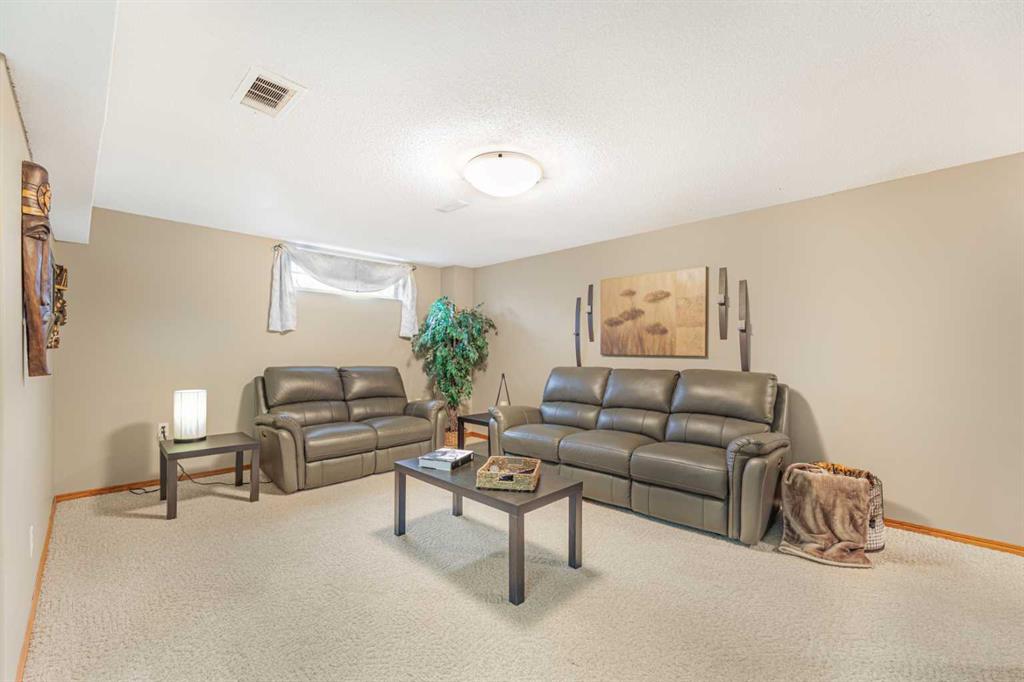 Open House, Sat Jan 17th from 2-4 and Sun Jan 18 from 1-330! Welcome to this beautifully upgraded home with extra side yard, located just a short walk from the private lake, two schools, parks, river pathways and shopping. From the moment you step inside, you’ll be impressed by the grand vaulted entrance, showcasing inlaid tile flooring and a sense of timeless sophistication. The home has been extensively refreshed, the main floor features an updated half bath, a front flex room, a formal dining room, and a bright dinette that flows seamlessly into the living room, complete with a cozy gas fireplace for cooler nights. The completely renovated kitchen is a showstopper, boasting quartz countertops, new white slow-close cabinetry, custom backsplash, stainless steel appliances, undermount lighting, and thoughtful design throughout, perfect for both everyday living and entertaining. Upstairs, you’ll find four spacious bedrooms, a laundry room, and an open den area ideal for a home office or study nook. Both bathrooms have been fully renovated, including a four-piece main bath and a luxurious four-piece ensuite with high-end finishes. The fully finished basement expands your living space with two large rec rooms that include the 75″ TV, a fifth bedroom, and another three-piece bathroom—offering flexibility for guests, hobbies, or family movie nights. Outdoors, enjoy the massive deck and patio designed for entertaining with a retractable awning, hot tub ready, and complemented by multiple storage sheds. Additional updates include a newer roof, upgraded vinyl windows, PEX plumbing, updated hot water tanks, water softener, a new furnace with heat pump, and a heated double attached garage with a 220 outlet—ensuring year-round comfort and peace of mind. This meticulously maintained home truly has it all: show home quality, modern upgrades and an unbeatable location in a family-focused community with access to excellent schools, golf courses, and the beauty of nearby Fish Creek Park and the Bow River. Quick access to Deerfoot and Stoney Trail ensures easy connectivity across the city. Call today for your own private showing!