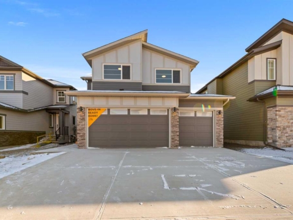 Welcome to the vibrant lake community of Westmere, where lifestyle, space, and convenience come together. This fully finished two-storey home with a large double attached garage is ideally located close to walking paths, schools, playgrounds, shopping, and amenities — with Chestermere Lake just minutes away and quick access to Calgary’s city centre. The main floor features a bright, open-concept layout, with natural light from large windows overlooking the south-facing backyard. The kitchen is thoughtfully designed with a corner pantry, central island with raised eating bar, ample cabinetry and counter space, and a generous adjoining dining area. The spacious living room features a cozy gas fireplace, while a discreetly tucked-away powder room and convenient main-floor laundry complete this level. Upstairs, you’ll find a large bonus room, a full 4-piece bathroom, and three well-sized bedrooms, including a spacious primary retreat with a walk-in closet and a gorgeous 4-piece ensuite featuring a separate shower and corner jetted tub. The fully finished basement adds incredible flexibility with a fourth bedroom complete with a walk-in closet, a 4-piece bathroom, a comfortable living area, and a second kitchen, ideal for hosting extended family or guests. One of the standout features of this home is the oversized backyard, beautifully set up for outdoor enjoyment with a tiered deck and pergola. Backing onto a paved alley, the yard offers excellent access and space for RV or boat parking, or the opportunity to add a second garage if desired. This is an outstanding opportunity to own a spacious family home in a sought-after lake community that offers both small-town charm and easy access to the city.