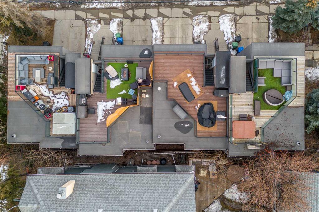 An iconic view from an unforgettable rooftop patio in the heart of Marda Loop. This 3 bedroom, 2.5 bathroom unit is walking distance to endless green spaces, local retail, and the weekly farmer’s market hosted at C-Space Art Collective half a block away. With tons of versatile space across 3 levels, this east facing home includes gleaming hardwood flooring, 2 gas fireplaces, and expansive windows that illuminate the entire main floor living area with natural light. The fully stocked chef’s kitchen features granite countertops, stainless steel appliances, a large island prep station, and dedicated food pantry, seamlessly integrating into the open concept living room that was specially crafted for entertaining. Wake up to the most beautiful sunrises with a full panoramic view from the primary bedroom upstairs, a spacious walk-in closet with built-in organizers, and a breathtaking ensuite that includes a jetted tub and rain shower with bench. The second level also boasts an additional large bedroom with its own independent ensuite for extra comfort and privacy. Indulge in plenty of storage space throughout the home, along with a third bedroom below that can be easily converted into a flex space to fit your unique lifestyle needs. The convenient double attached insulated garage is perfect for avoiding cold Calgary winters, while the ice cold A/C is ideal for beating the summer heat. Notable recent upgrades include paint throughout, newer flooring and torch-on membrane updating to the rooftop (which is fully fit for a hot tub). Situated in a highly coveted pedestrian-oriented community, walking distance to the South Calgary Outdoor Pool, shops along 33rd Avenue, and with quick access to 17th Ave SW, 14th Street and Crowchild Trail. This is being sold as an investment property and the lovely tenant in place has a lease that expires February 2029. The current rent is $3,100 per month and tenant is responsible for own utilities.