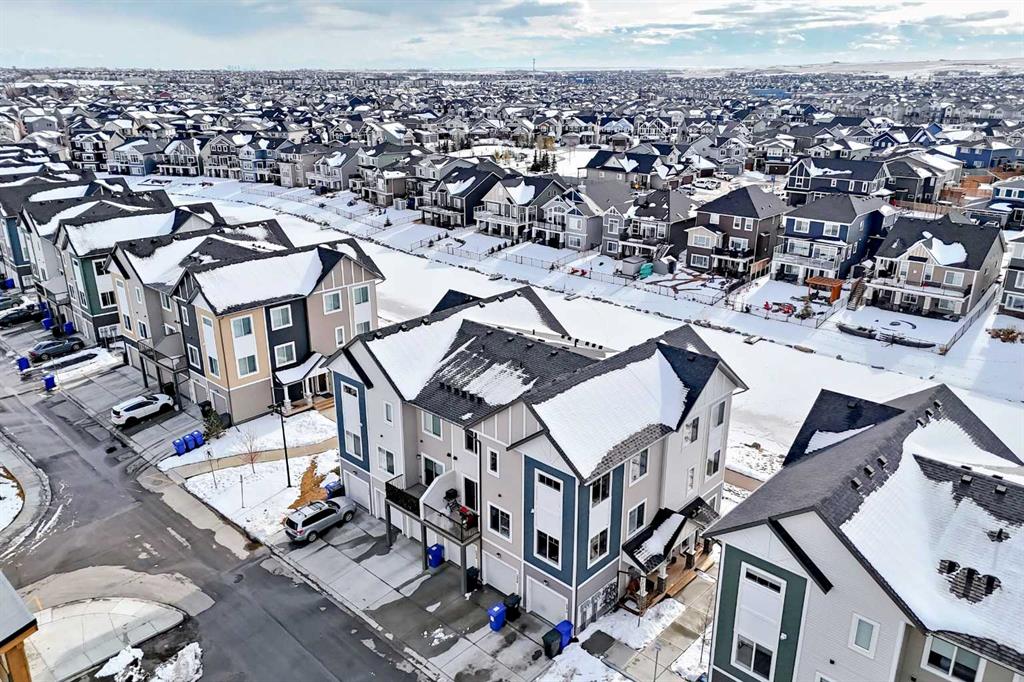 Welcome to this corner-unit townhome in the Canals community of Airdrie. This home offers 3 bedrooms, 2.5 bathrooms, a single attached garage, and a full driveway. The open-concept main floor , large windows, and a modern kitchen with quartz countertops, stainless steel appliances and drawers, and a central island. The dining area opens to a private balcony, and the upper level includes a primary bedroom with walk-in closet and ensuite, two additional bedrooms, a full bathroom, and convenient upper-level laundry. Located near canal pathways, shopping, restaurants, parks, and other amenities, this home offers practical, low-maintenance living in an established community.