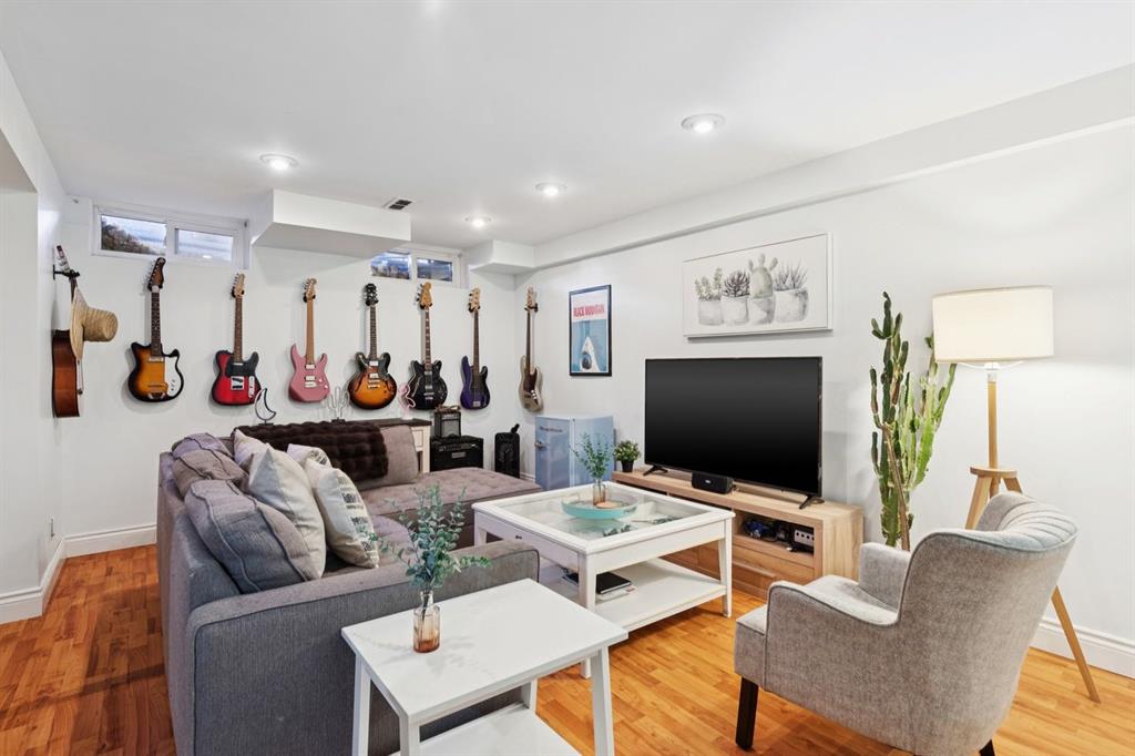 The updated kitchen is both stylish and functional, featuring stainless steel appliances, white cabinetry, warm wood countertops, a deep granite sink, and elegant gold hardware. An ideal dining area offers plenty of space to host family and friends or enjoy quiet meals at home. Durable laminate flooring flows throughout, and a fully renovated two-piece bathroom is conveniently located on the main floor. Outside, you’ll love the private, fully fenced front patio. This outdoor space is ideal for BBQs, morning coffee, or relaxing while watching Calgary’s beautiful sunsets. Upstairs, the home continues to impress with a fully refurbished 4-piece bathroom, complete with a deep soaker tub, shower combo, and stunning vanity with ample storage. The primary bedroom is filled with natural light from large windows and offers a full size closet and plenty of room to unwind. A well sized second bedroom is perfect for guests, a roommate, or a home office. The fully developed basement provides a spacious and cozy family room, along with a versatile flex space currently used as a gym but also ideal for a home office or hobby area. The laundry and utility room also offers additional storage. Many highlights include new vinyl flooring, new appliances, renovated kitchen and bathrooms, new paint, and a dedicated parking stall just steps from the unit. The complex is professionally managed with reasonable condo fees, adding peace of mind and long term value. This is a fantastic opportunity to own a stylish, low maintenance home in one of Calgary’s most established communities. Book your showing today, this home will not disappoint and won’t last long!
