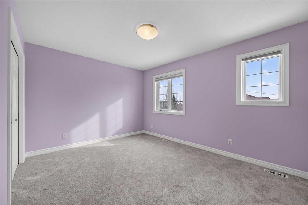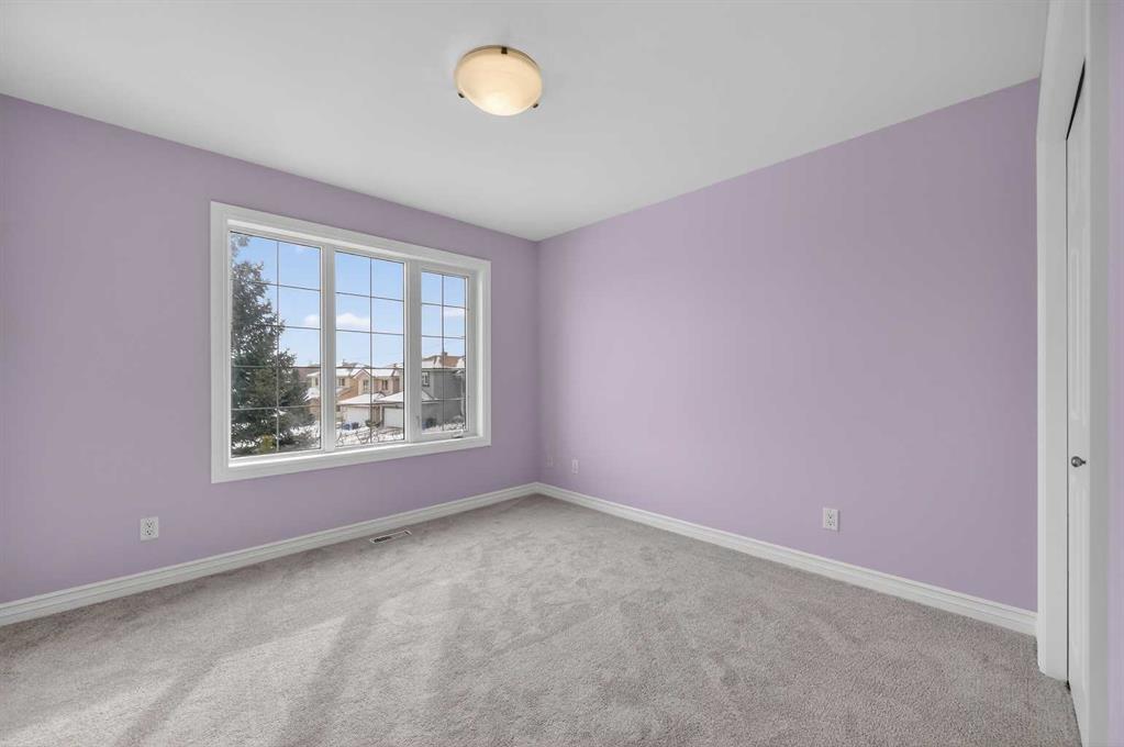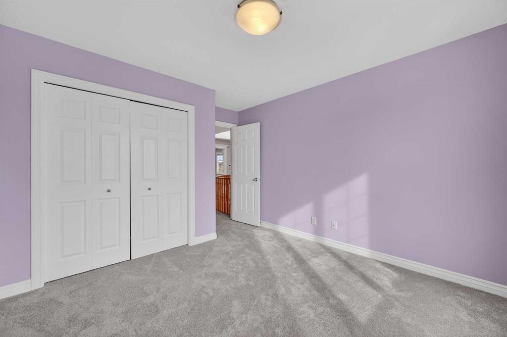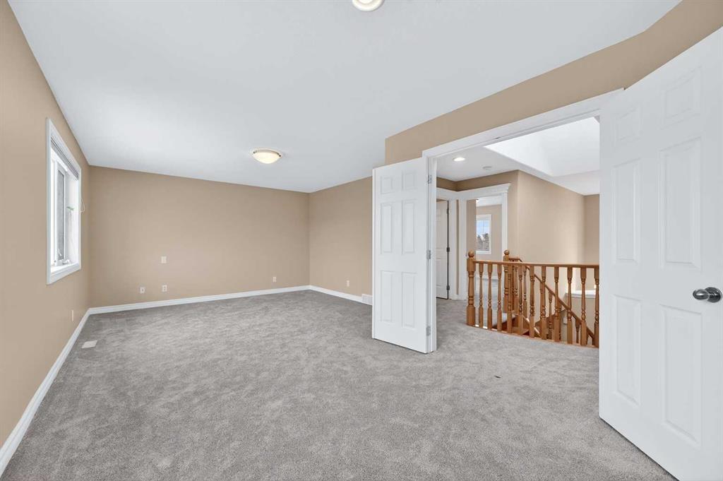 Upstairs feels bright and open, looking down over the living area. The primary bedroom is very large and features a walk-in closet with custom shelving and a private five-piece bathroom. Two more big bedrooms give the kids or guests plenty of their own space.