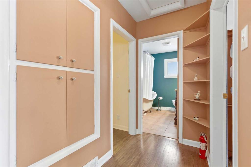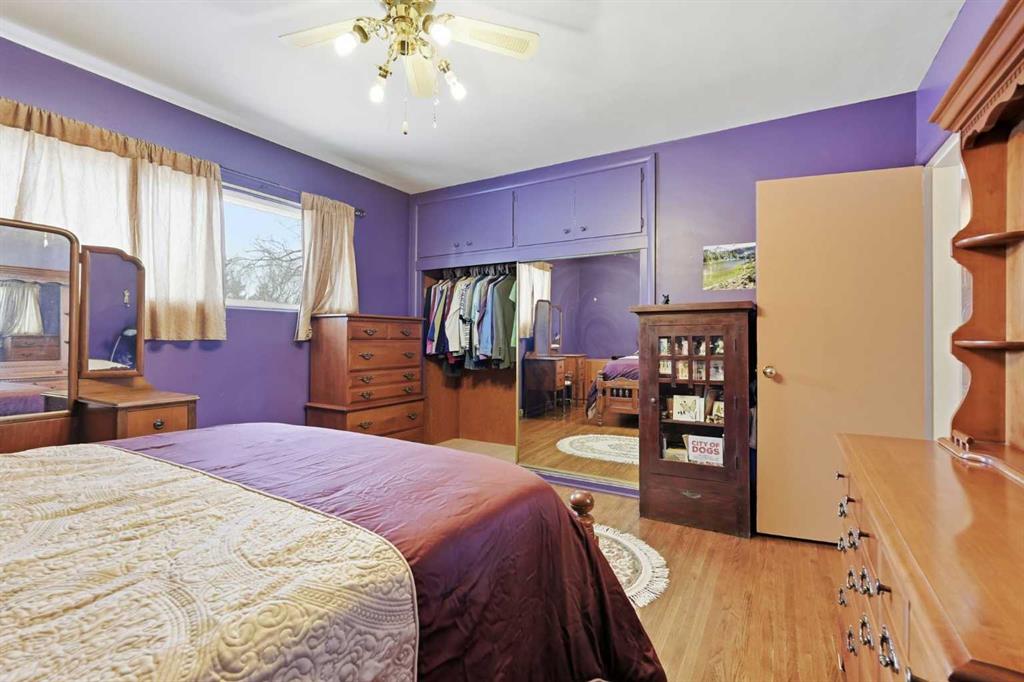 Located in the mature community of Highwood & situated on a huge 0.21 ACRE PIE SHAPED LOT ACROSS FROM A GREENSPACE, this 1950’s bungalow is perfect for renovation or an ideal setting for redevelopment. The current 2 bedroom bungalow retains 1950’s charm with hardwood floors & plaster ceilings in the living & dining rooms. The kitchen has ample counter & storage space & the 2 bedrooms are a generous size. The bathroom features a clawfoot tub/shower combination. The basement is partially developed with a recreation room, laundry & 2 piece powder room. Other notable features include a new furnace & huge back yard with patio that is surrounded by mature trees. The location is incredibly convenient, close to Highwood Community Association, schools, shopping, public transit & easy access to 4th Street & McKnight Blvd. Seize this opportunity to renovate the current home or build your dream home on this park-like lot!