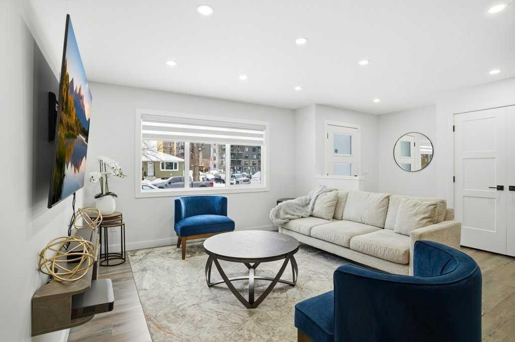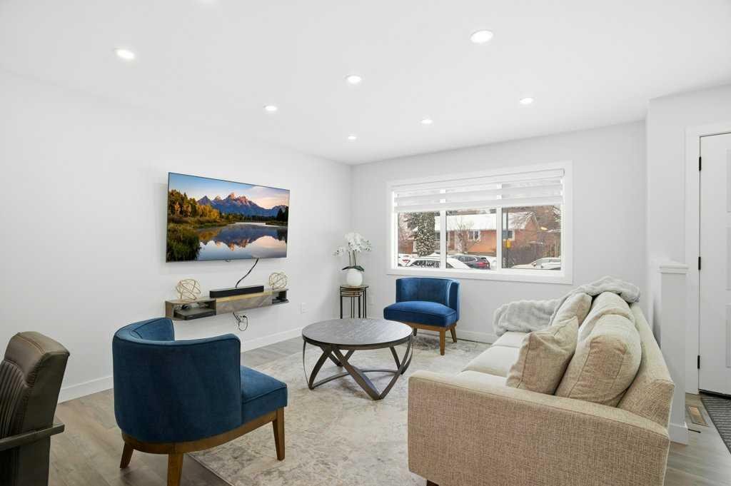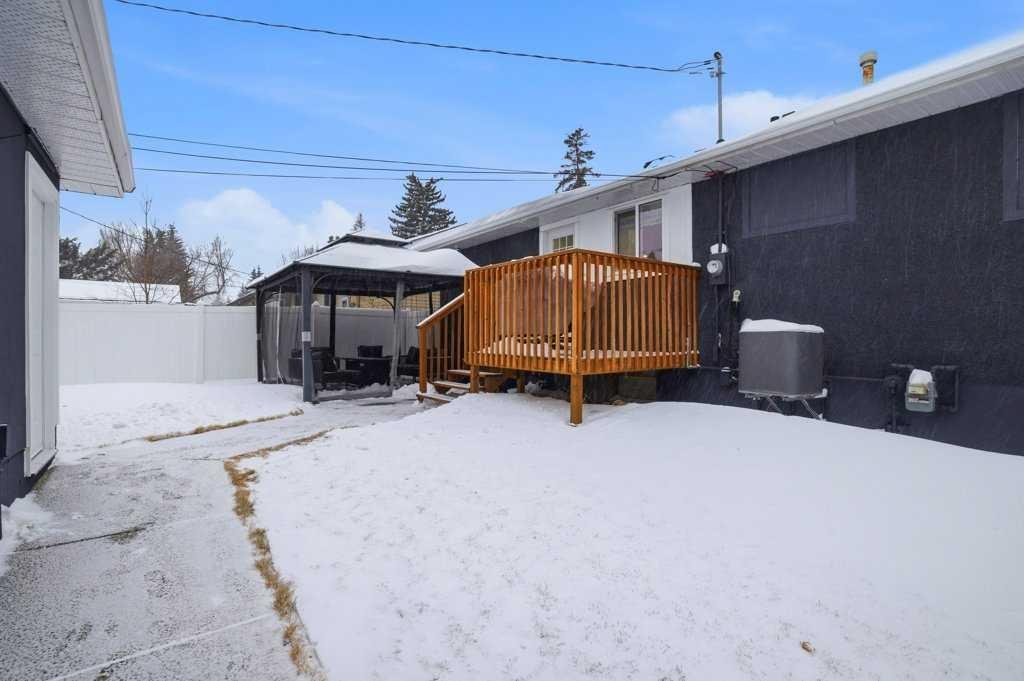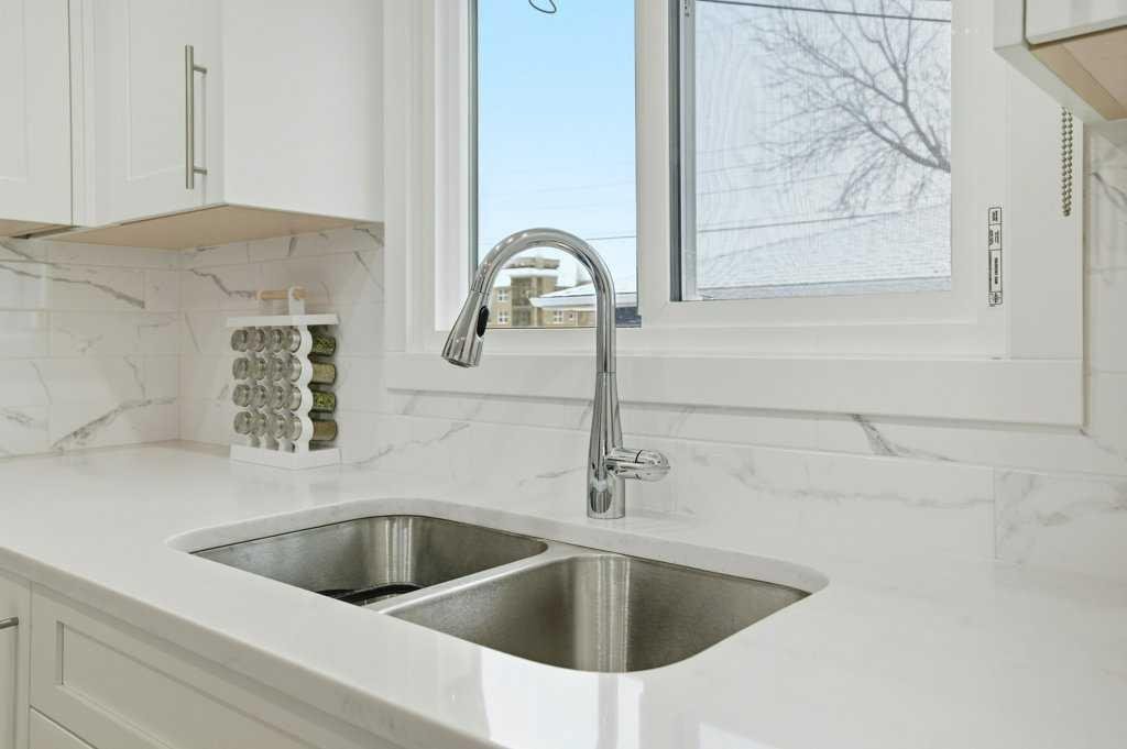 Renovated detached homes in established inner-city southwest Calgary are increasingly difficult to find. Especially beautifully RENOVATED homes on CORNER LOTS this well connected. FINISHED DOUBLE GARAGE | 2 LAUNDRY ROOMS | 2 BEDROOM ILLEGAL BASEMENT SUITE | CENTRAL AC | SOUTH BACKYARD w/ UNDERGROUND SPRINKLER SYSTEM | AGGREGATE BACKYARD PATIO | ACROSS FROM PLAYGROUND & OUTDOOR RINK | This gorgeous bungalow offers an open floor plan creating seamless flow for everyday living. Large windows bathe the living room in natural light while added pot lights ensure warm, even illumination into the evening. Designer lighting defines the large dining space, elevating both casual meals and larger gatherings. At the centre of it all, the chef’s kitchen impresses with quartz countertops, stainless steel appliances, full-height cabinetry and a large island that invites connection over morning coffees or evening conversations. Neutral tones throughout provide a timeless backdrop that complements any style. A stylish 4-piece bathroom serves the main level, while the primary bedroom feels like a true retreat with trendy sliding doors leading to an impressive double wall walk-in closet and your private ensuite. You’ll also find a spacious second bedroom for a little one or an excellent office space for working at home. Downstairs, a separate entrance leads to an illegally suited basement designed for multi-generational living or flexible family space. An open-concept living area offers room to relax, while a neutral white kitchen, 2 additional bedrooms and a 4-piece bathroom provide independence and functionality. SEPARATE LAUNDRY ROOMS add convenience and privacy. CENTRAL AIR CONDITIONING keeps the home comfortable throughout the warmer months. Outside, the south-facing backyard offers sunshine throughout the day, creating an ideal setting for summer barbeques on the deck or evenings spent unwinding beneath the covered gazebo patio resting on a CUSTOM AGGREGATE PATIO. A built-in sprinkler system keeps the lawn lush with minimal effort, while a large grassy area tucked behind the garage provides a safe, privately fenced space for kids and pets to play. An insulated and drywalled double detached garage with dual doors adds secure parking and valuable storage. Everyday amenities are within walking distance including schools, parks and local shops, while nearby Macleod Trail and transit routes provide convenient access throughout the city. Kingsland remains one of southwest Calgary’s most connected and established communities, offering quick access to Chinook Centre, Heritage LRT Station and major roadways for an easy commute. Thoughtfully updated and exceptionally located, this stunning home delivers comfort, flexibility and everyday convenience at a very affordable price. Don’t wait – Call your realtor today!