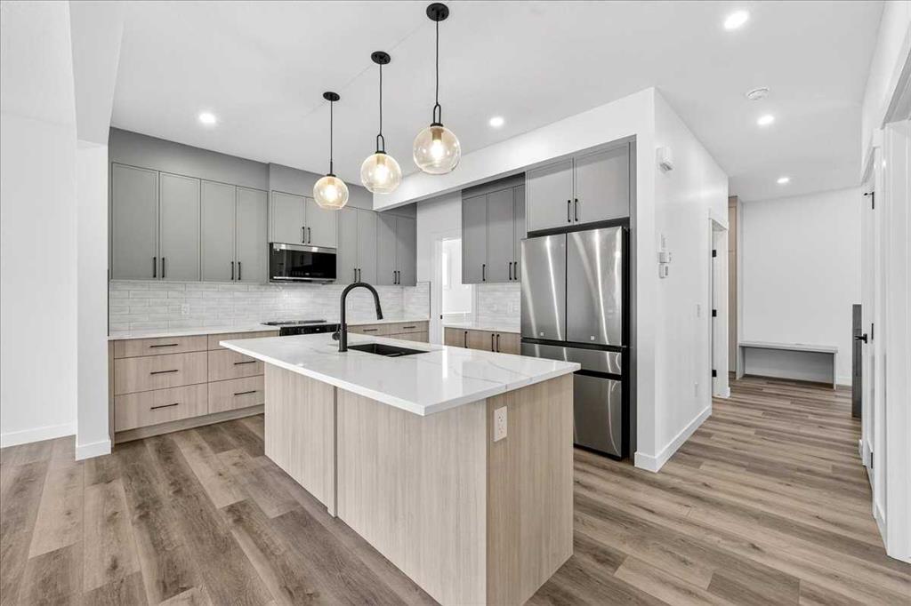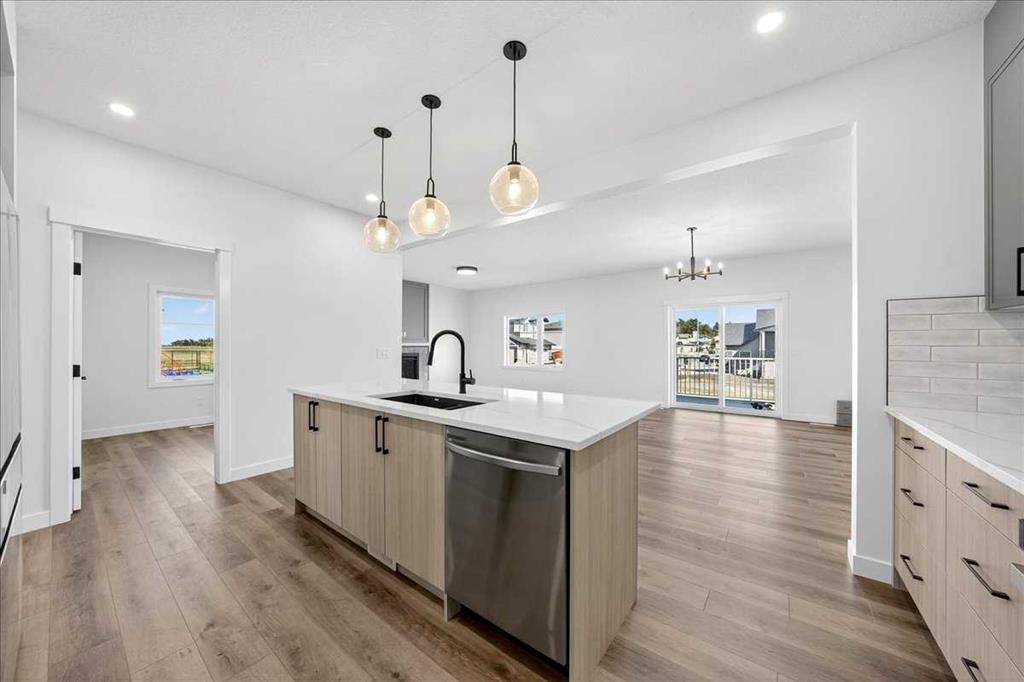Experience refined living in this exceptional walkout two-storey luxury residence by Dhaduk Homes, perfectly positioned on a prestigious corner lot in a quiet, family-oriented enclave backing onto a serene pond and expansive green space. The west-facing exposure fills the home with golden natural light while offering tranquil views and breathtaking sunsets. An oversized triple-car garage provides ample room for luxury vehicles and additional storage. The open-concept main floor is thoughtfully curated for upscale living and entertaining, anchored by a chef-inspired gourmet kitchen with premium appliances, extensive custom cabinetry, and a striking statement island. The space flows effortlessly into the dining area and an elegant living room highlighted by a sleek electric fireplace, creating an inviting yet sophisticated setting. A main-floor bedroom offers exceptional flexibility, ideal for guests, a private office, or refined multigenerational living. Upstairs, the lavish primary retreat serves as a private sanctuary, featuring a spa-like 5-piece ensuite, a generous walk-in closet, and calming views of the pond and green space. Two additional bedrooms share a beautifully appointed full bath, while the upper-level family lounge provides an elevated space for entertaining, movie nights, or relaxed evenings. Additional highlights include a full walkout basement awaiting your bespoke design, a 200-amp upgraded electrical panel, and soaring 9’ ceilings on both the main floor and basement levels. Backing onto nature and meticulously crafted with timeless elegance, this remarkable home delivers a rare blend of luxury, privacy, and lifestyle for the most discerning buyer.
