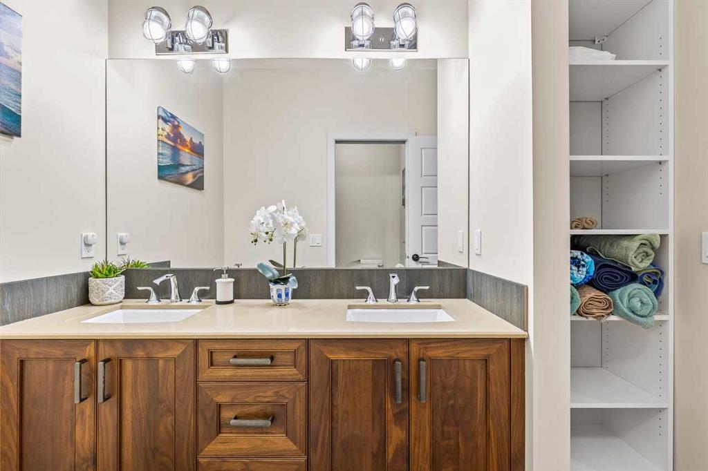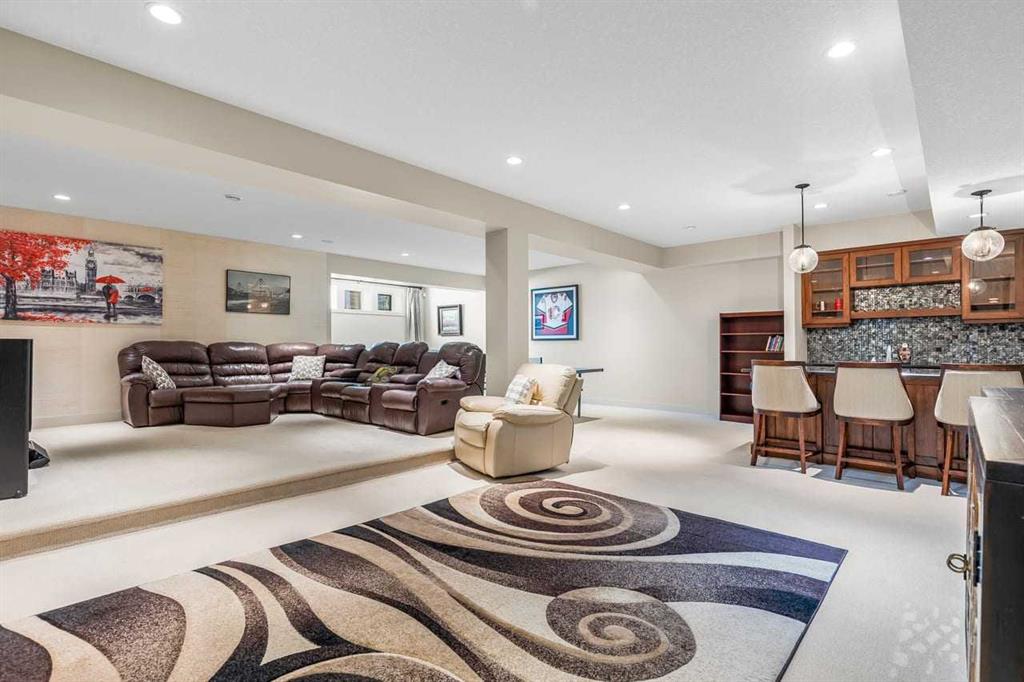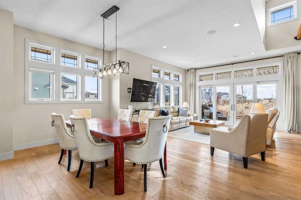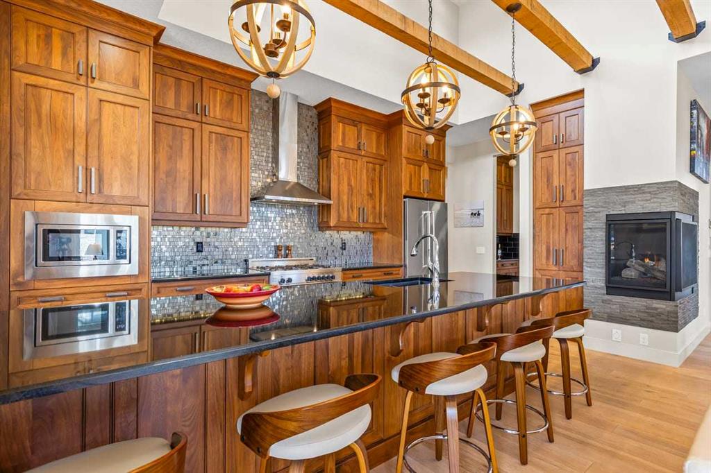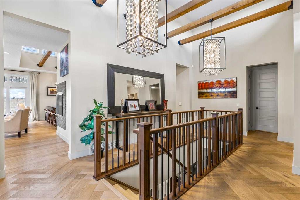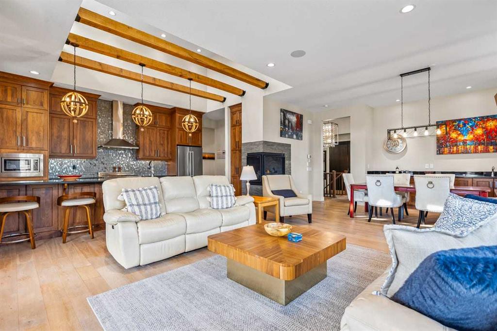This stunning former showhome in the award-winning community of Harmony perfectly blends meticulous craftsmanship with an active and lakeside lifestyle. Spanning over 3,600’ of thoughtfully designed living space, the home impresses with vaulted ceilings, exposed beams, and premium upgrades throughout. The heart of the home is a chef-inspired kitchen featuring upgraded appliances, a butler’s pantry, and extensive cabinetry, flowing seamlessly into a bright dining area and a living room complete with a wet bar. The well-appointed main level is highlighted by a king-sized primary suite that fills with natural light. The spa-like ensuite offers a classic slipper tub, a large walk-in shower, and a walk-in closet. A bright home office, laundry room, and powder room complete this level. The high quality extends into the basement, which is designed for comfort and features two full-sized bedrooms, a large rec room, a wet bar, and a 4-pc bathroom with a double vanity and radiant heating throughout the lower level. Other features and upgrades include triple-pane windows, herringbone-engineered hardwood detailing, central air conditioning, a Kinetico water softener/filter, a central vacuum, built-in speakers, high-quality window coverings, a storage shed, and garage shelving. Situated on a prime corner lot backing onto open field and pathways, the property offers unobstructed mountain views, a south-facing backyard, across from the park/greenspace, and one block away from Harmony South Beach. The outdoor space is fully realized with landscaping, irrigation, a custom deck cover, fencing, and Gemstone lighting. Even the heated triple garage is upgraded with durable polyaspartic flooring and a natural gas heater. Living in the award-winning community of Harmony, you’ll have access to two private lakes, beach access, community pathways, playgrounds, Mickelson National Golf Club, Adventure Park, and local amenities, plus the future Bingham Crossing.