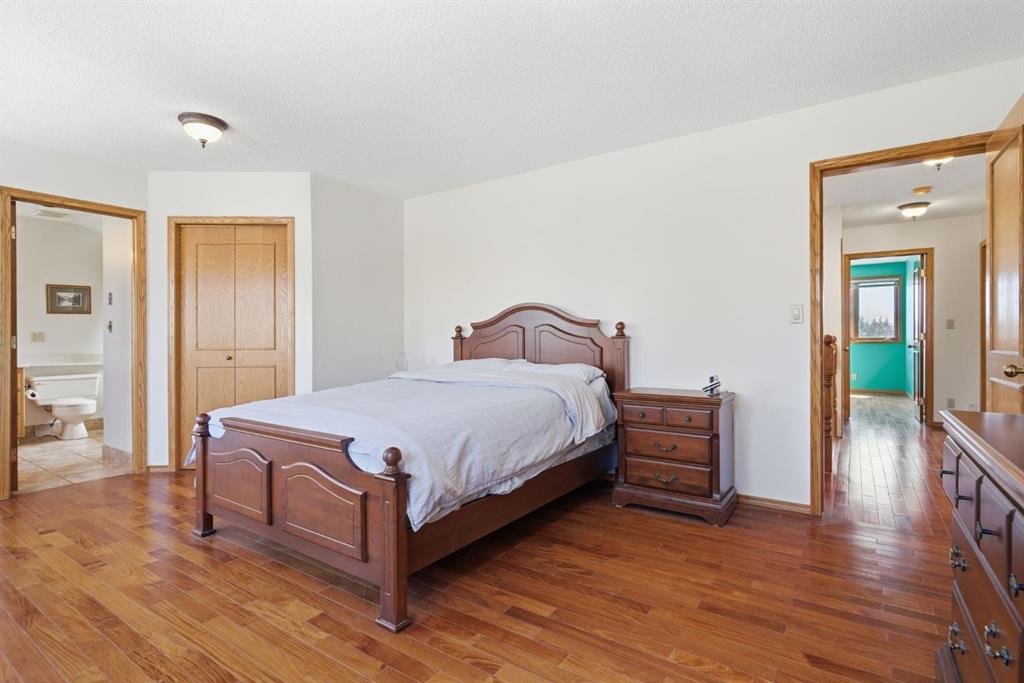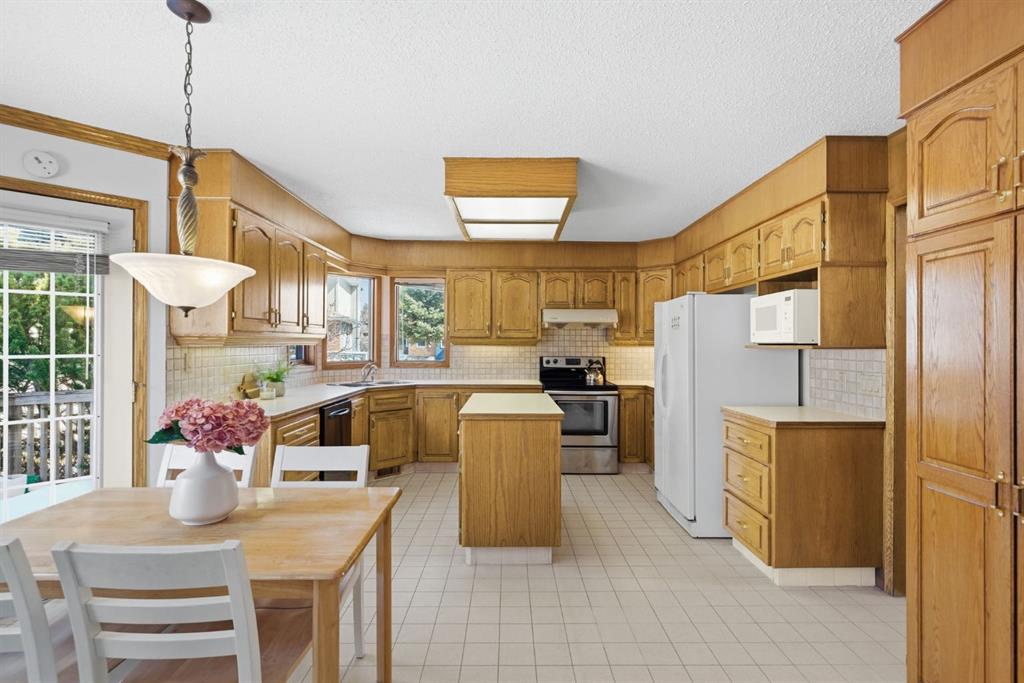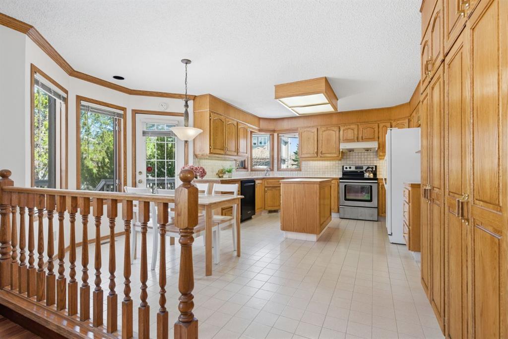 Welcome to this spacious two-storey home that is ideally located on a large corner lot in an exclusive enclave in the desirable community of Edgemont. Offering over 2,400 sq ft, 5 bedrooms, hardwood flooring on both levels and a layout that’s ready for a fresh vision. Step inside and you’ll fall in love with the functional layout, which boasts vaulted ceilings and large windows that bring in plenty of natural light. The front living room is spacious and bright with hardwood floors, and the formal dining room is a great space for hosting family dinners and holidays. The kitchen is centred around an island and connects easily to the breakfast nook and family room. A wood-burning fireplace and built-in shelving make this a comfortable space to unwind at the end of the day. There’s also a main floor bedroom/office along with laundry area and a 2-piece bath. Upstairs, you’ll find four good sized bedrooms, including a primary suite with a walk-in closet and ensuite. The basement is unfinished and ready for your development ideas. Recent updates include hardwood flooring, most of the window glass has replaced, Poly B removal, a radon mitigation system installed, and central air conditioning added for your comfort during those warm summer months. Outside, the spacious corner lot gives you a spacious yard with beautiful, mature trees and a double attached garage. This great home is walking distance to Edgemont school and has great public transportation options including 2 bus stops nearby and the Crowfoot and Dalhousie c-train stations just minutes away. Edgemont is one of northwest Calgary’s most established communities, known for its schools and convenient access to major routes and the stunning Nosehill Park and several great shopping areas!