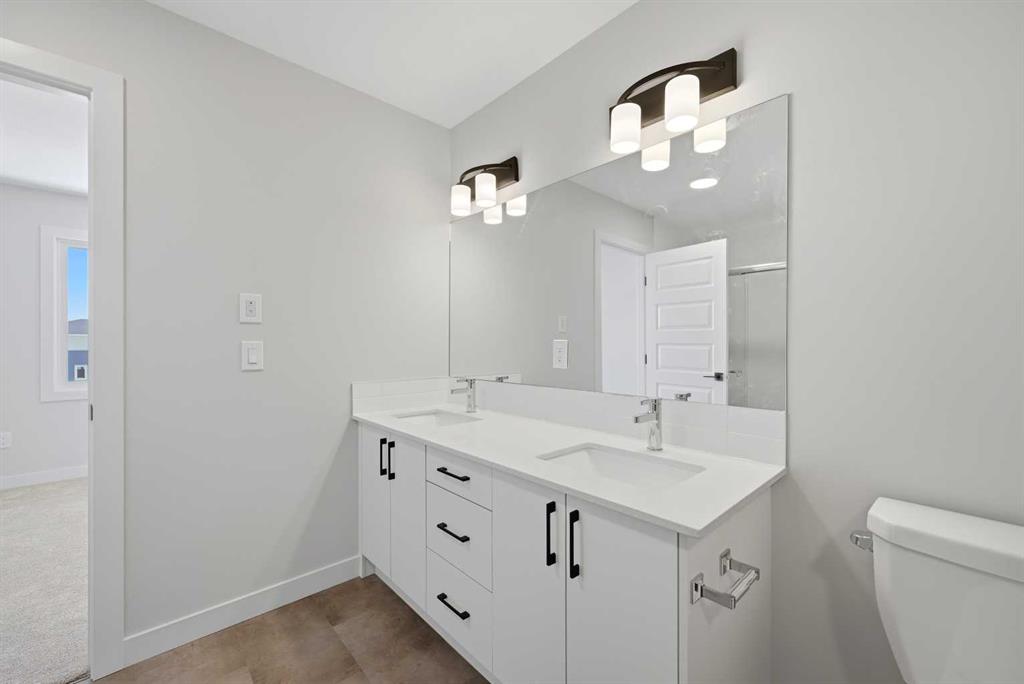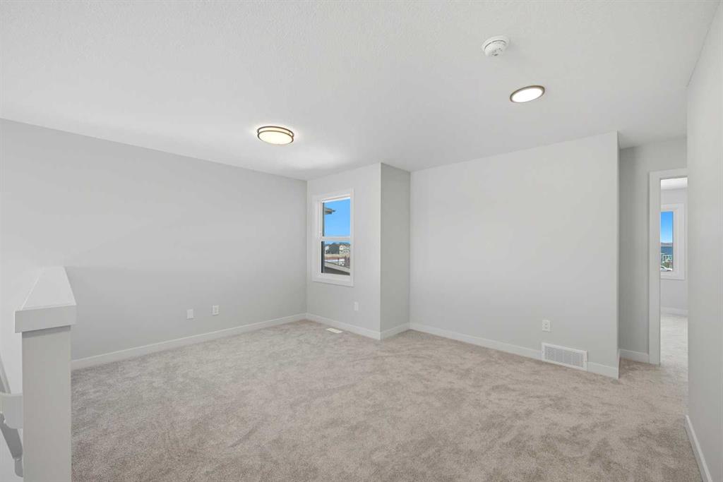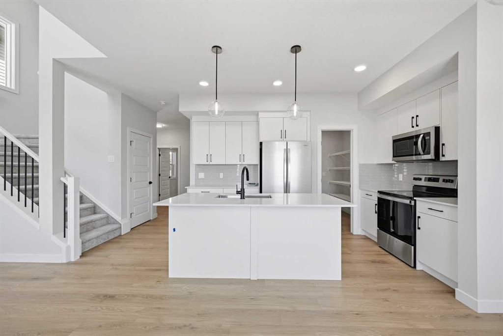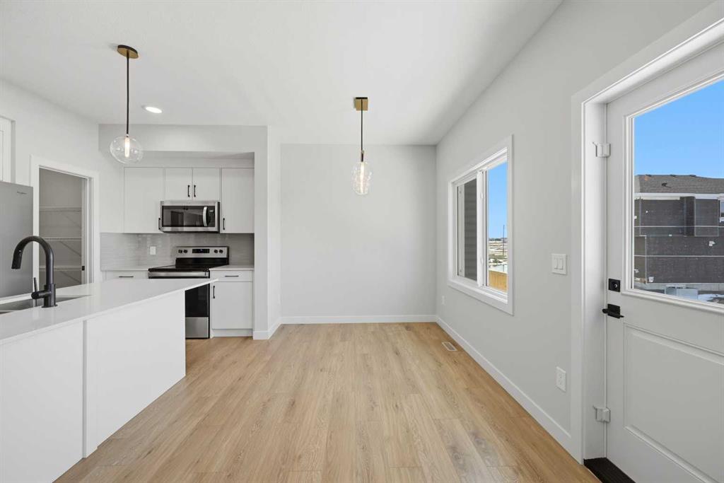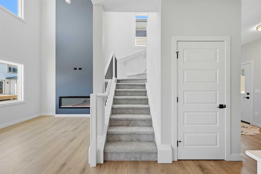 YOUR SEARCH ENDS HERE – HARD TO FIND THIS SIZE OF FRONT GARAGE SEMI-DETACHED IN CHESTERMERE AT THIS PRICE WITH FEATURES LIKE OPEN TO ABOVE, WALKOUT BASEMENT WITH DECK, MAIN FLOOR FULL BED & BATH and much more! Welcome to your new home in Waterford! Experience modern elegance in this sprawling almost 2000 Sq. Ft. home, thoughtfully designed with the modern family in mind. The main floor invites you in with a seamless open layout, highlighted by a STUNNING “OPEN TO ABOVE” LIVING ROOM featuring a custom accent wall and a sleek electric fireplace. Designed for ultimate versatility, the main level includes a RARELY FOUND FULL BEDROOM AND BATHROOM WITH A STANDING SHOWER—perfect for elderly parents, guests, or a quiet home office. The chef-inspired L-SHAPED KITCHEN BOASTS A WALKTHROUGH PANTRY leading to a highly functional mudroom. The decent sized 19X10 Ft. deck comes with a BBQ gas line and provides a perfect space for summer gatherings and a morning coffee. Upstairs, discover a spacious bonus room bathed in natural light from the open-to-above, a convenient laundry room, and three generous sized bedrooms. The primary bedroom features a DOUBLE VANITY ENSUITE, much needed walk-in shower, and a spacious walk-in closet. The unfinished BRIGHT WALKOUT BASEMENT is prepared for future development, FEATURING A SEPARATE REAR ENTRY, EXTENDED 9 FT. HEIGHT, 2 DECENT SIZED REAR WINDOWS, and a mechanical room tucked away to maximize floor space. Situated on the southwest edge of Chestermere, Waterford offers a peaceful “Lake City” lifestyle with a quick commute to Calgary via easy access to Glenmore Trail and 17th Ave. You are a few minutes away from Rainbow Creek Elementary and Chestermere Lake Middle School, as well as local groceries and popular restaurants. Move-in ready and just minutes from the water—your lakeside retreat awaits! View the 3D tour and book your showing today.
